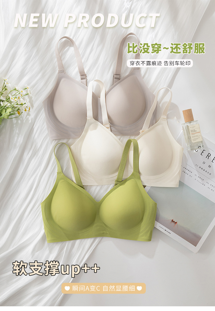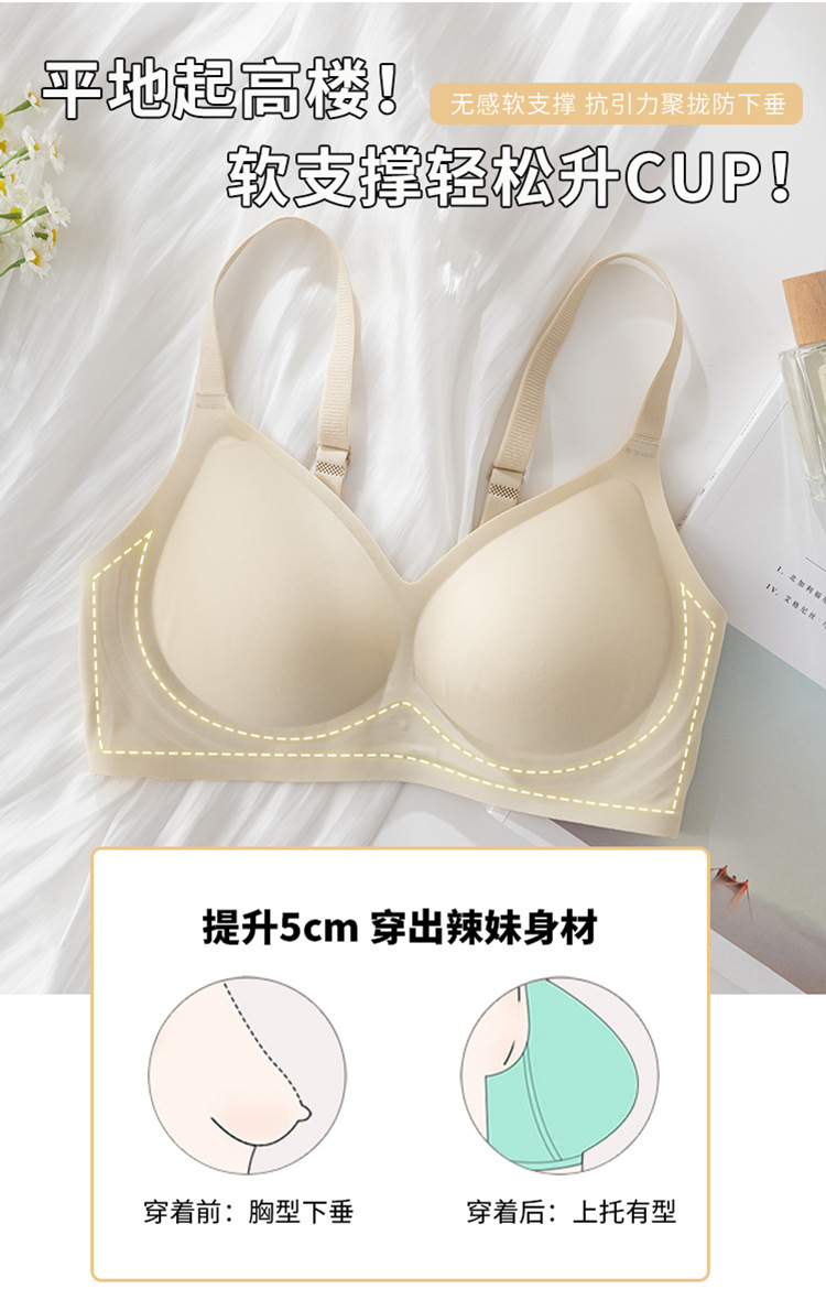 원활한 젤리 소프트 지원 속옷 여성용 작은 가슴 푸시 업 여름 얇은 처짐 방지 고정 컵 브래지어 큰 가슴 작은스토어 가기