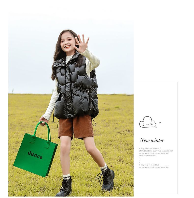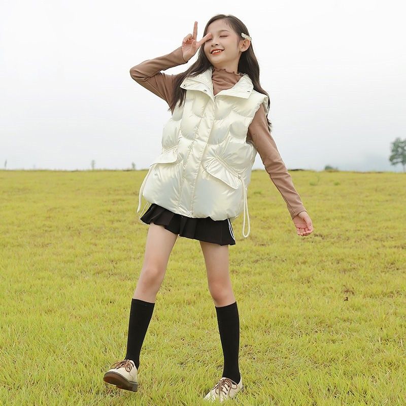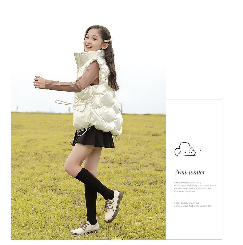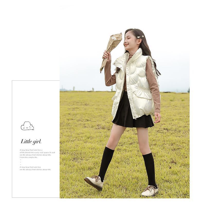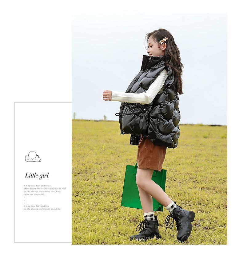 2024년 핫 아이템 아동용 다운 코튼 조끼, 가을 겨울 인기 여아용 아우터, 따뜻하고 스타일리시한 두꺼운 조끼