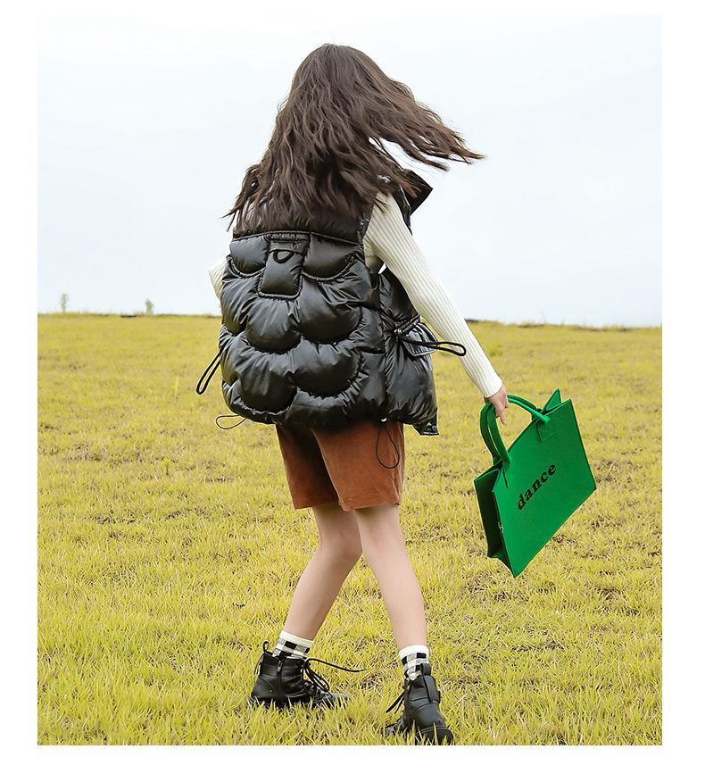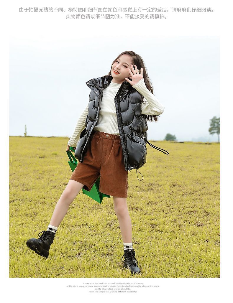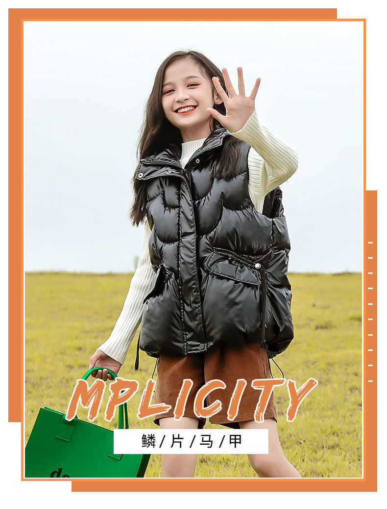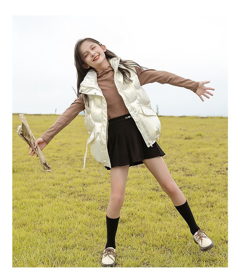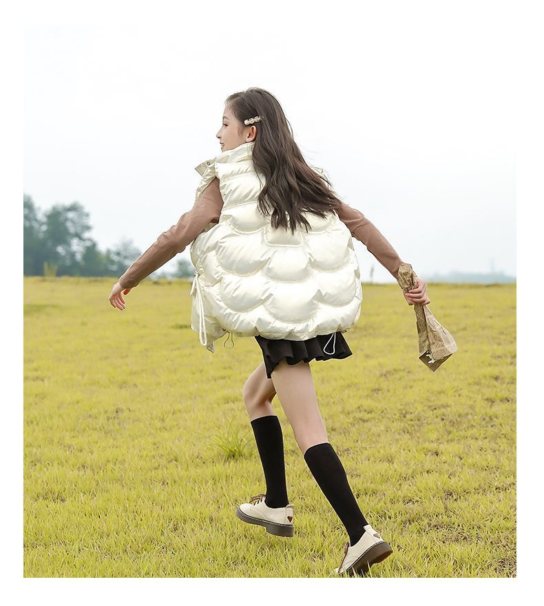 2024년 핫 아이템 아동용 다운 코튼 조끼, 가을 겨울 인기 여아용 아우터, 따뜻하고 스타일리시한 두꺼운 조끼
