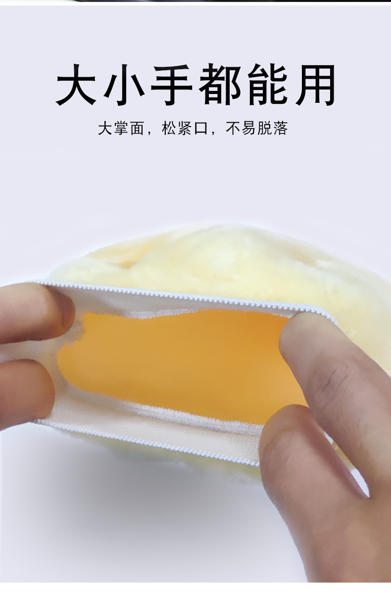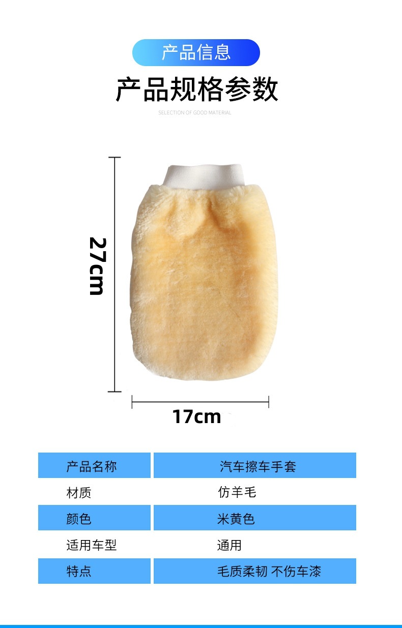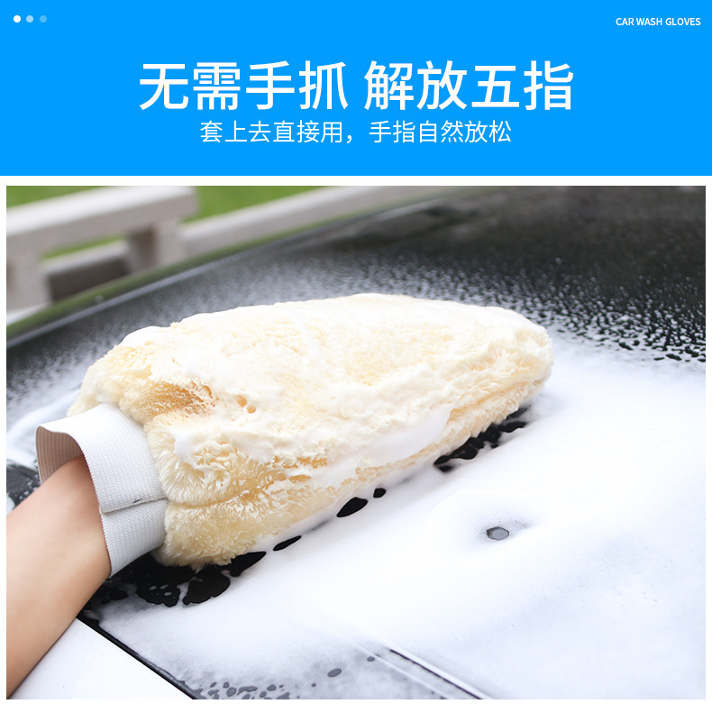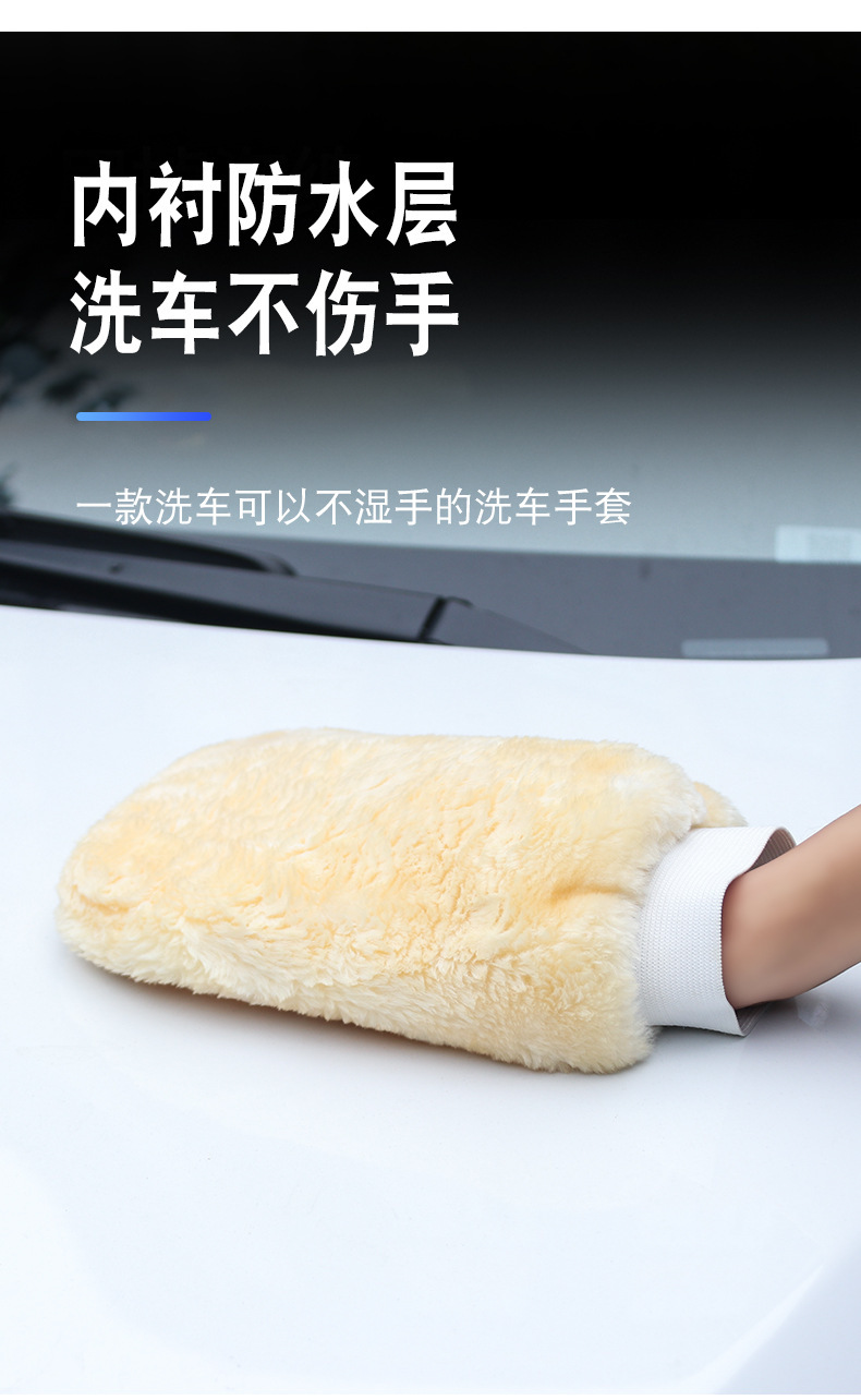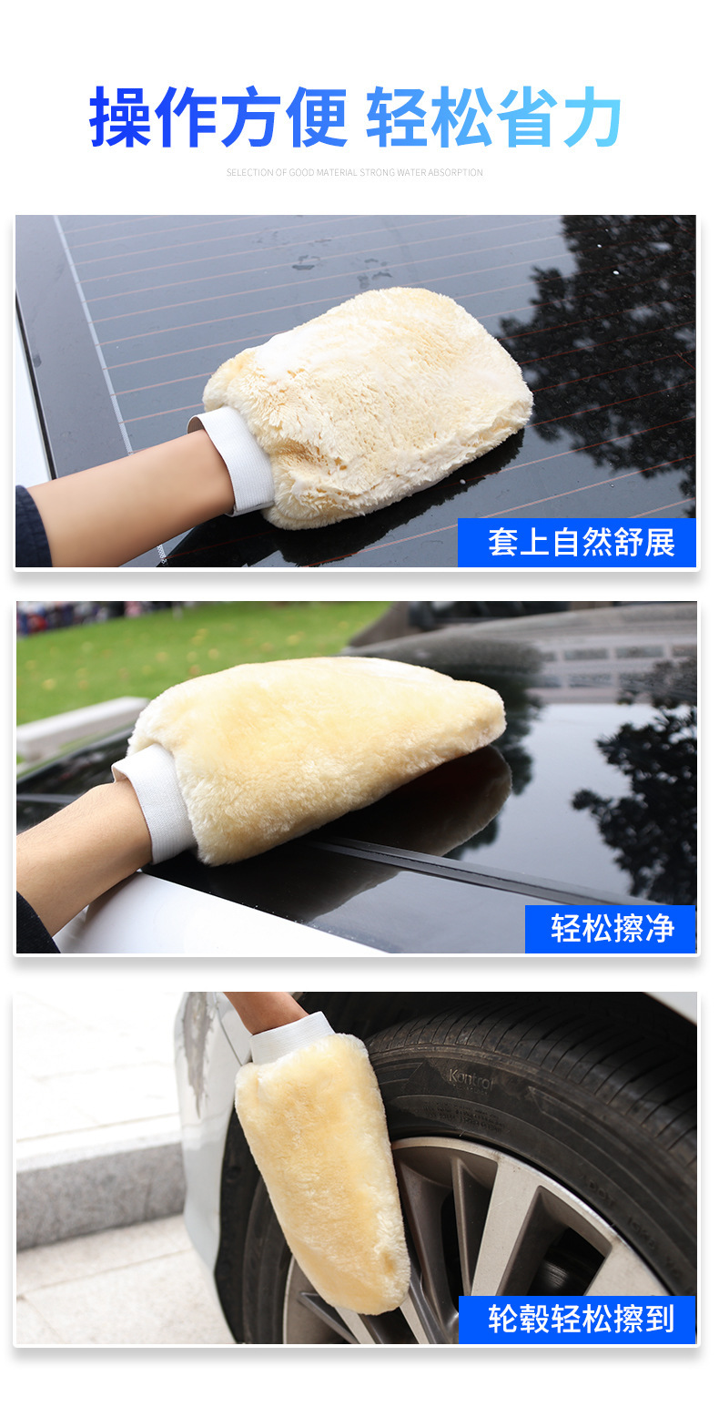 产品特点:毛质桑韧 不伤车漆,省力,可不是说说,无需抓紧,大掌面,干湿两用,柔软材质贴合手型,省力,说到做到!