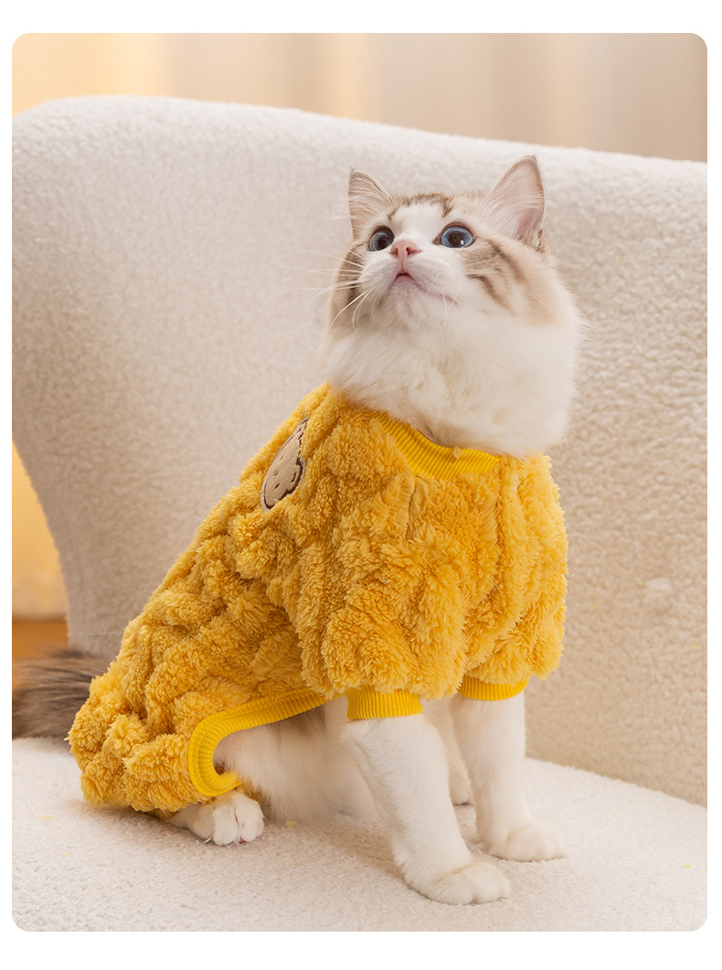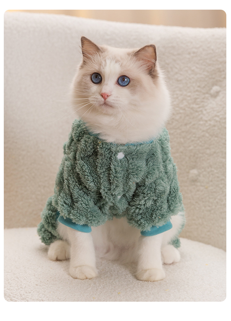 트위스트 텍스처 트랙션 네 발 고양이 벨벳 코트 가을과 겨울 두꺼운 따뜻한 새끼 고양이 털 방지 애완 동물 의류