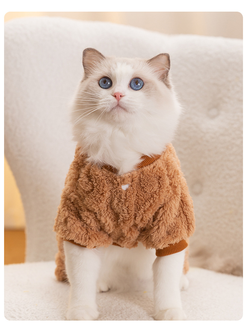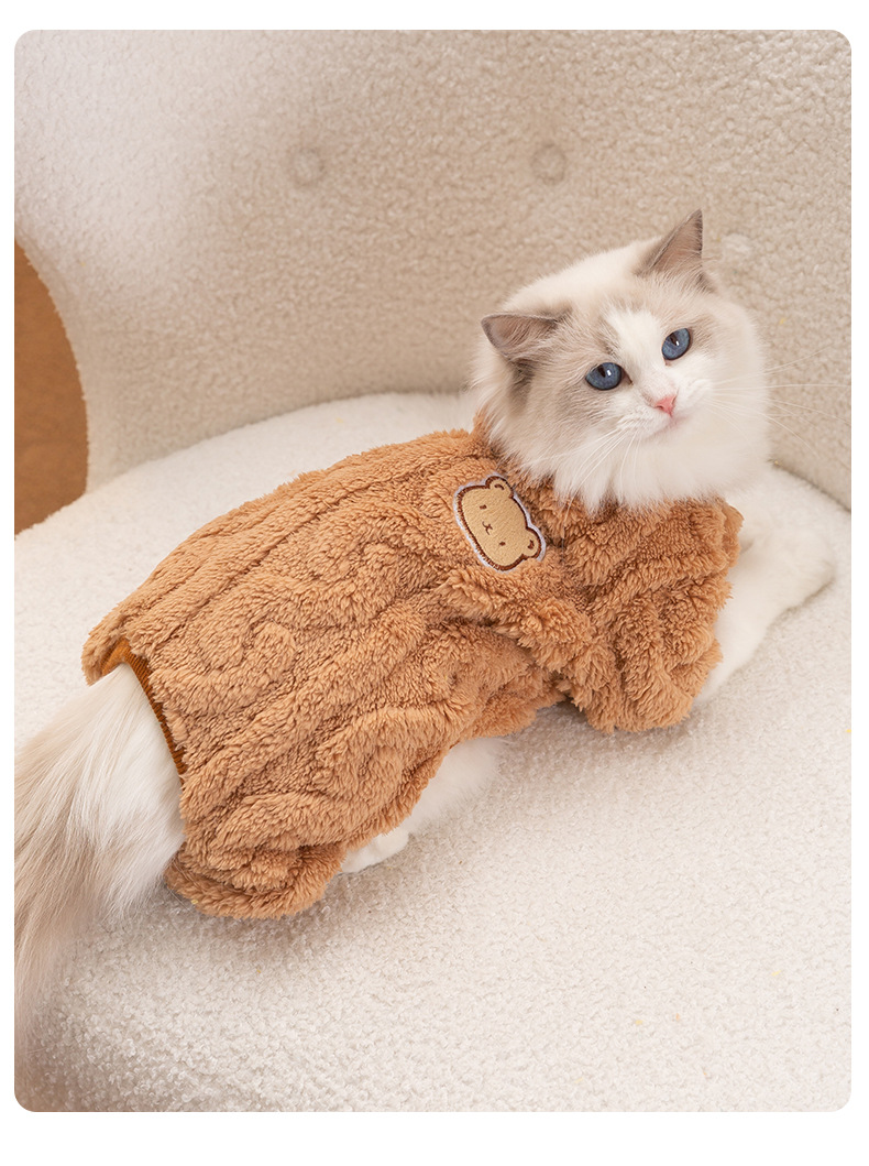 트위스트 텍스처 트랙션 네 발 고양이 벨벳 코트 가을과 겨울 두꺼운 따뜻한 새끼 고양이 털 방지 애완 동물 의류스토어 가기