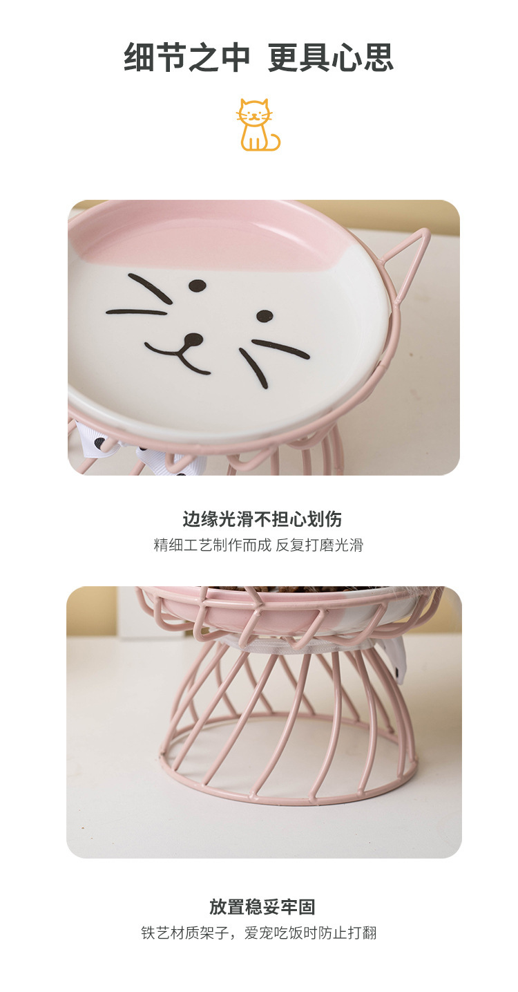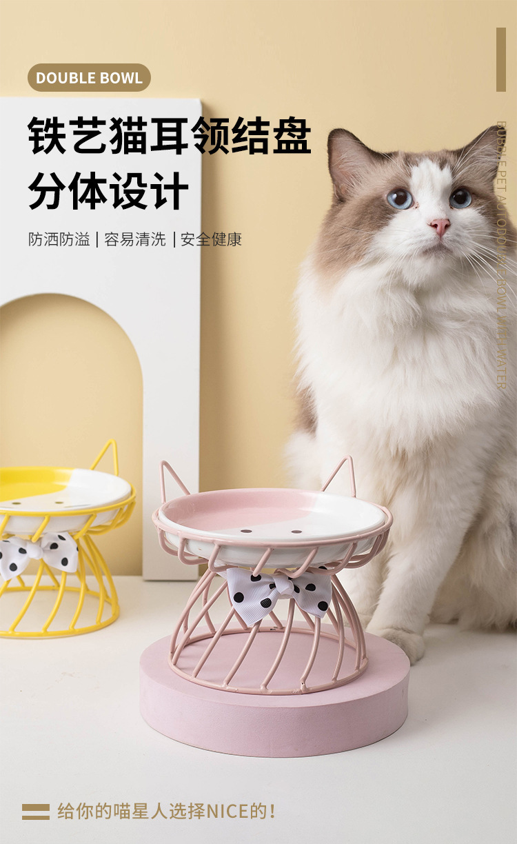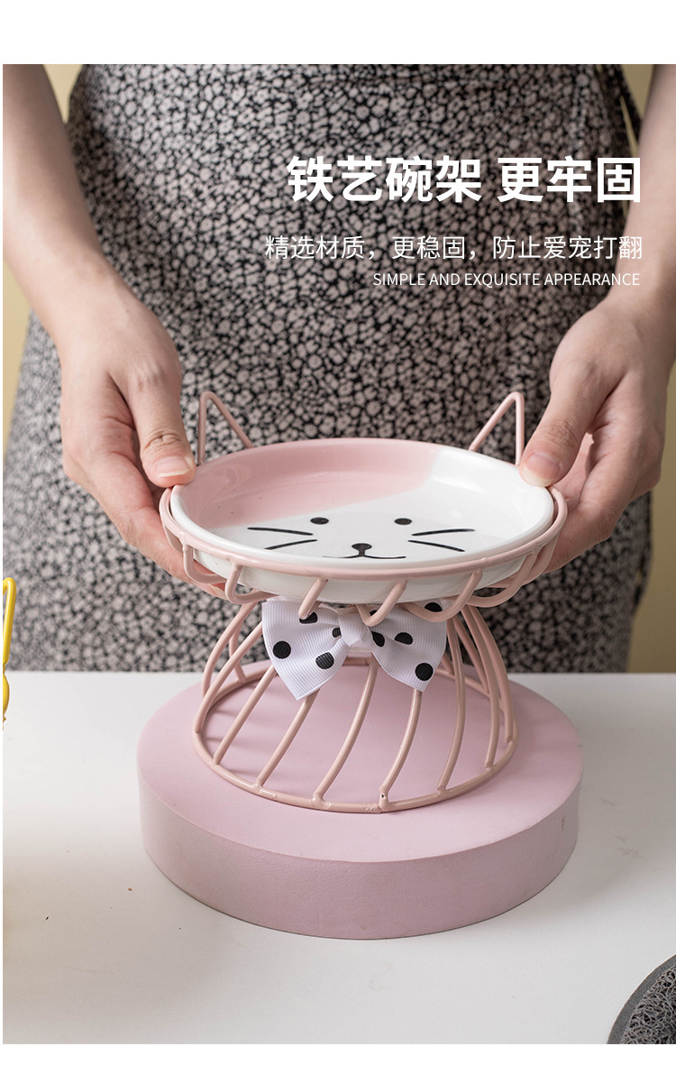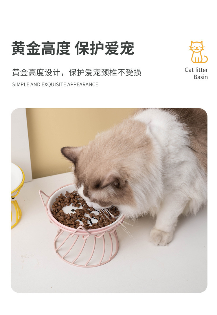 아마존 핫 펫 볼 목 보호 고양이 음식 그릇 통합 랙 전복 방지 키 큰 고양이 그릇 고양이 음식 분지 세라믹스토어 가기