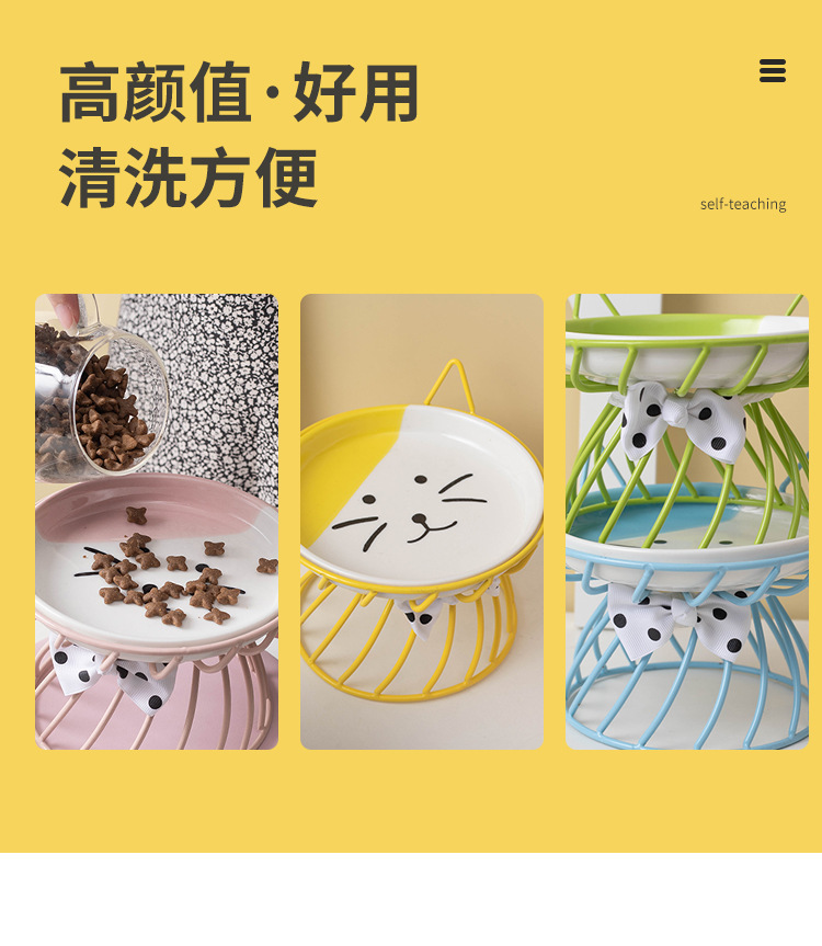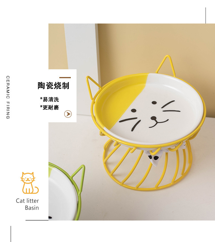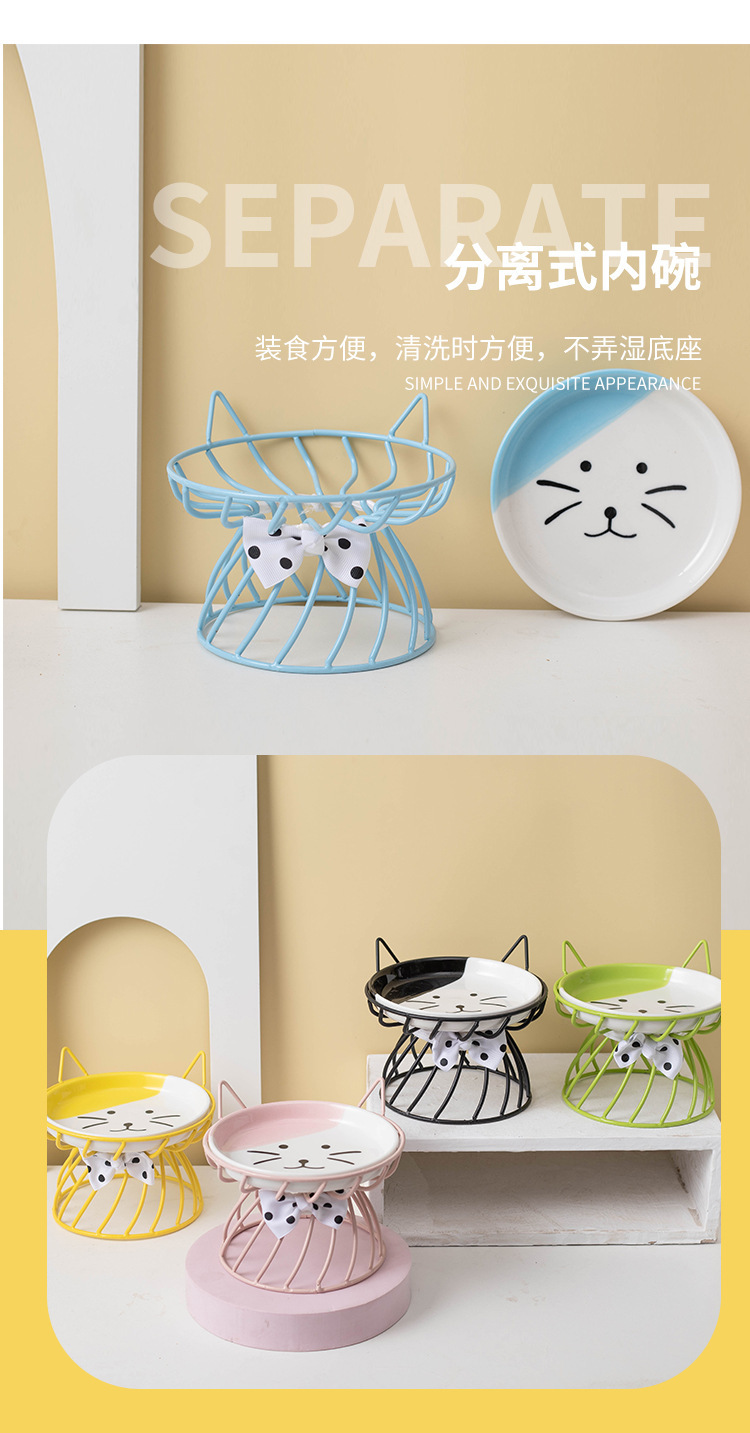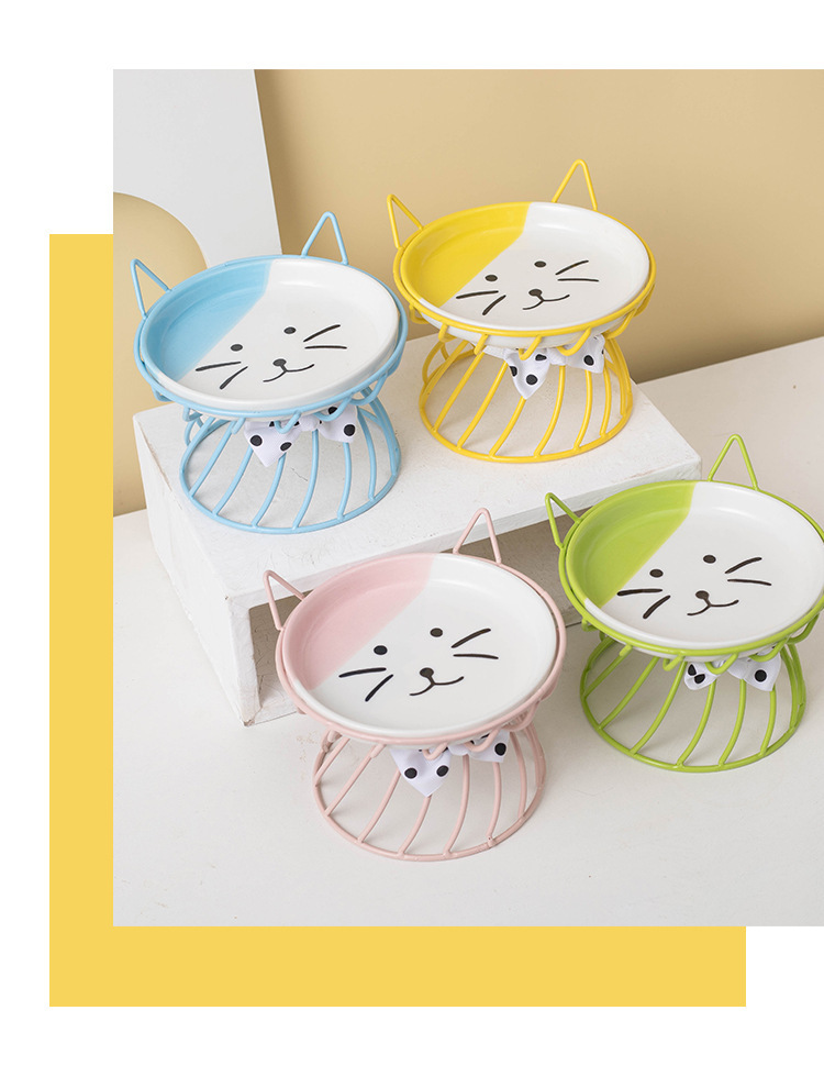 아마존 핫 펫 볼 목 보호 고양이 음식 그릇 통합 랙 전복 방지 키 큰 고양이 그릇 고양이 음식 분지 세라믹스토어 가기
