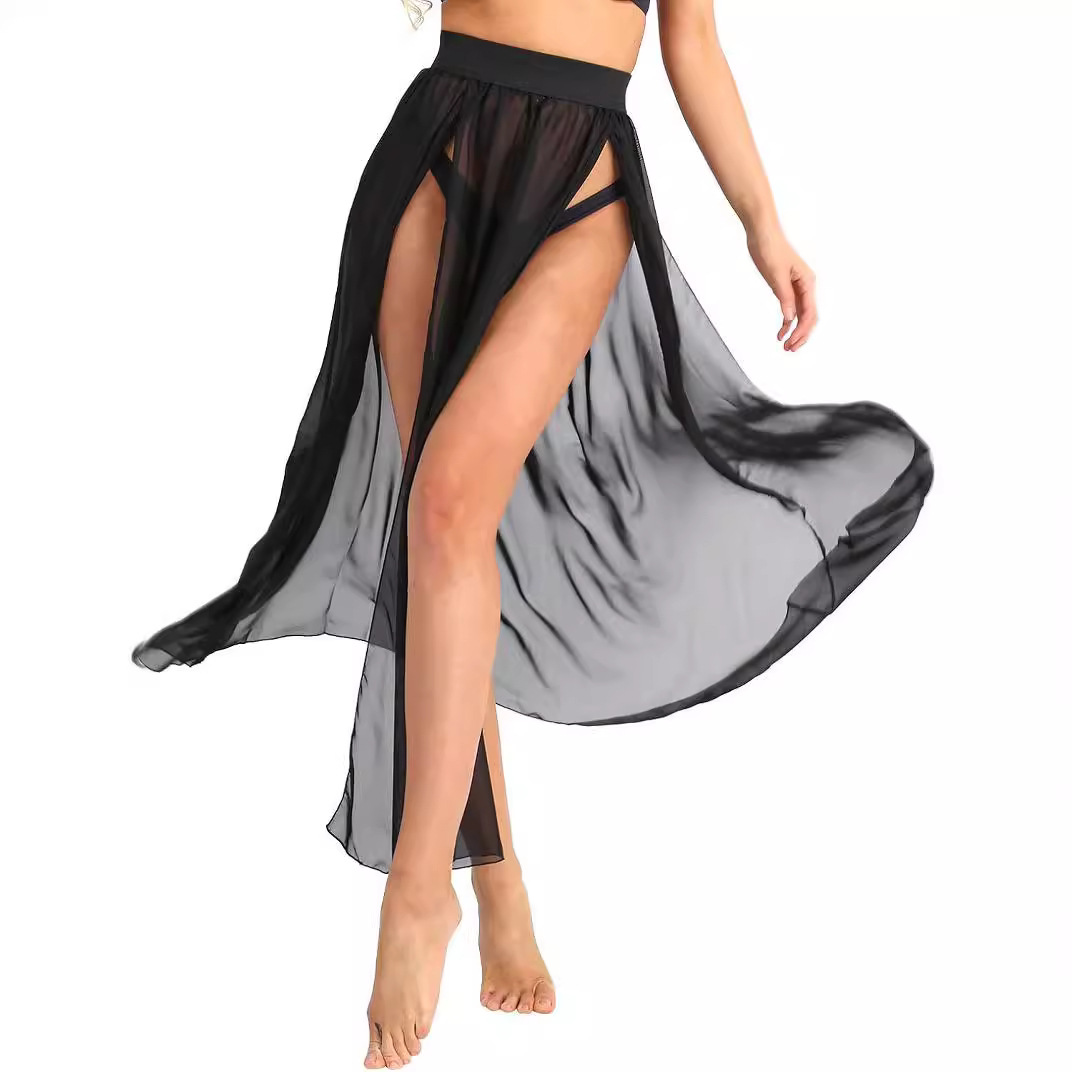 유럽과 미국 숙녀 섹시한 관점 블랙 쉬폰 스커트 비치 수영복 스커트 섹시 하이 웨이스트 수영 스커트 도매