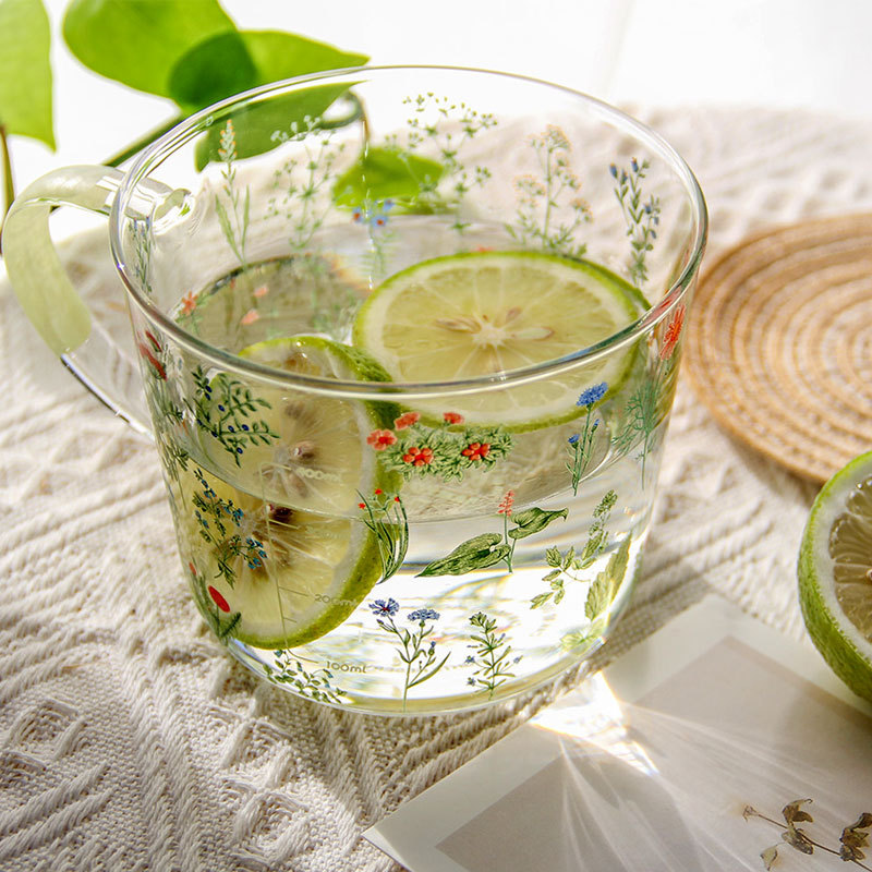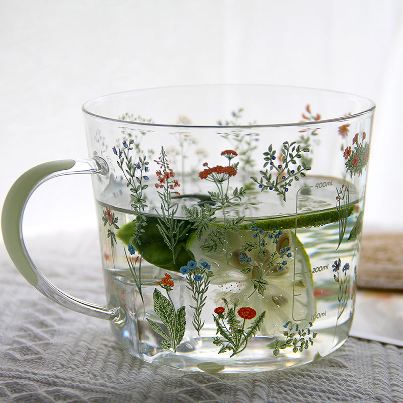 S 스타일 유리 컵 내열 핸들 컵 사무실 대용량 물 컵 우유 음료 컵 하이 컬러 값 아침 식사 컵스토어 가기