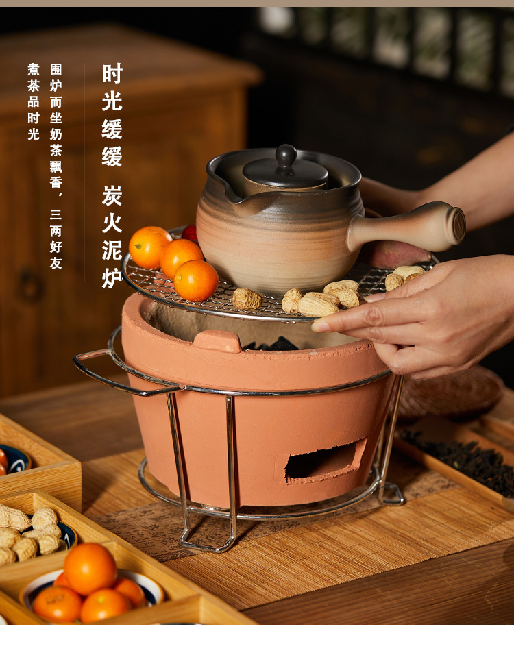 지구 도자기 바베큐 작은 진흙 스토브 인클로저 스토브 차 밥솥 숯 굽기 가정용 야외 구이 차 숯 스토브 숯 스토브 대형 오븐 붉은 진흙스토어 가기