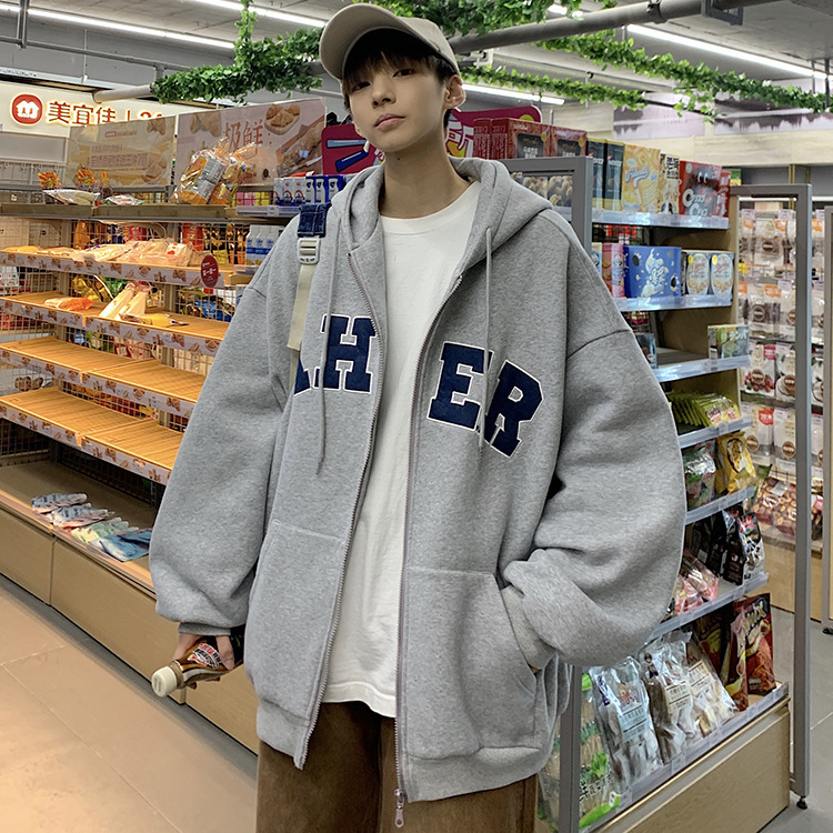 카디건 스웨터 남자의 가을 느슨한 유행 브랜드 후드 오버 사이즈 틈새 하이 스트리트 의류 양털 재킷스토어 가기