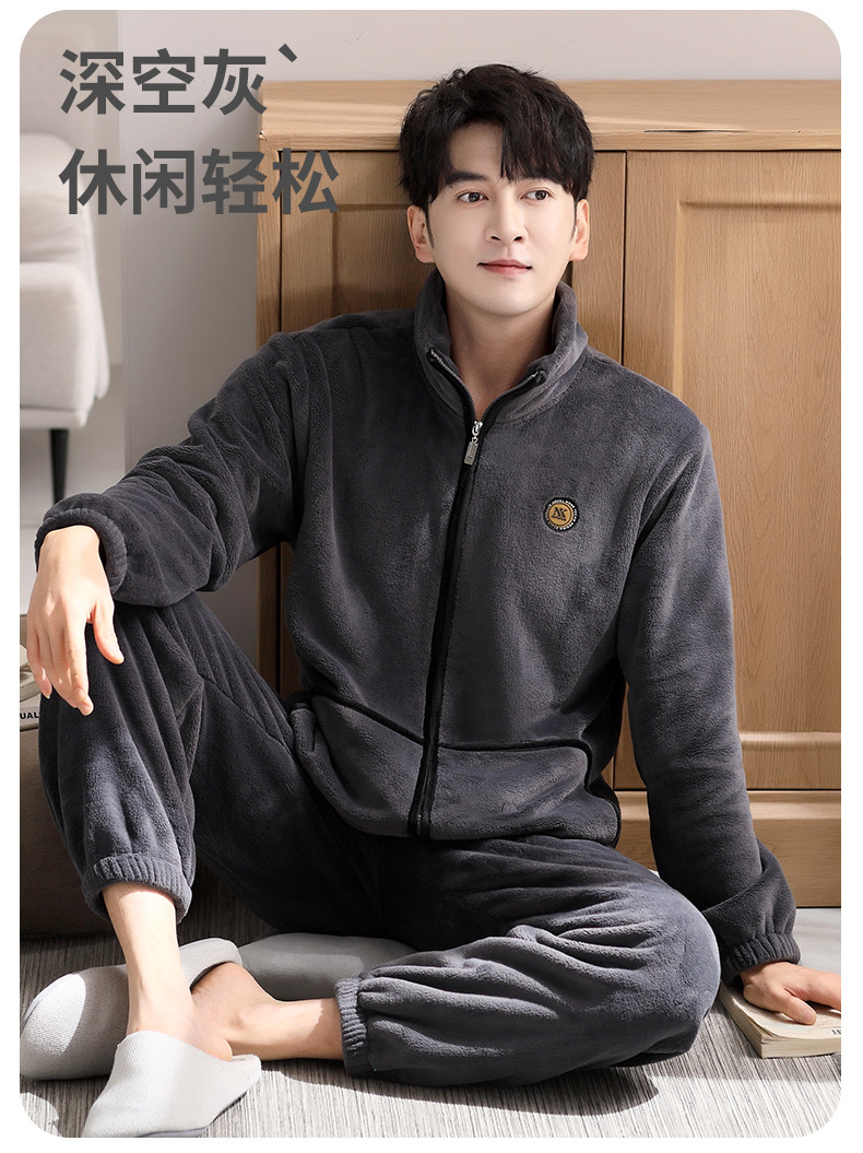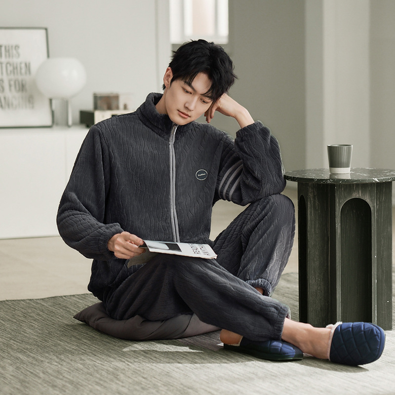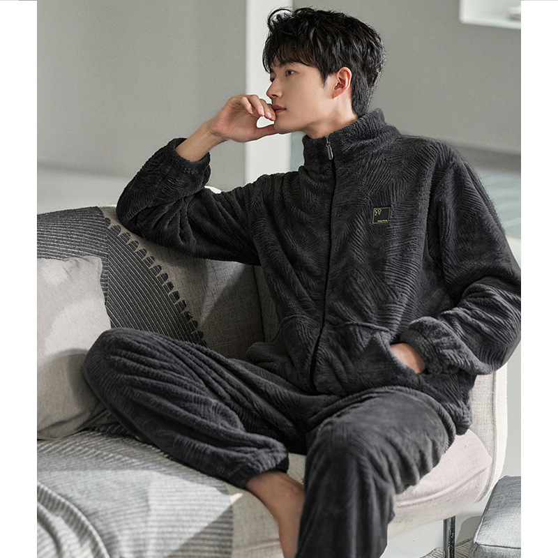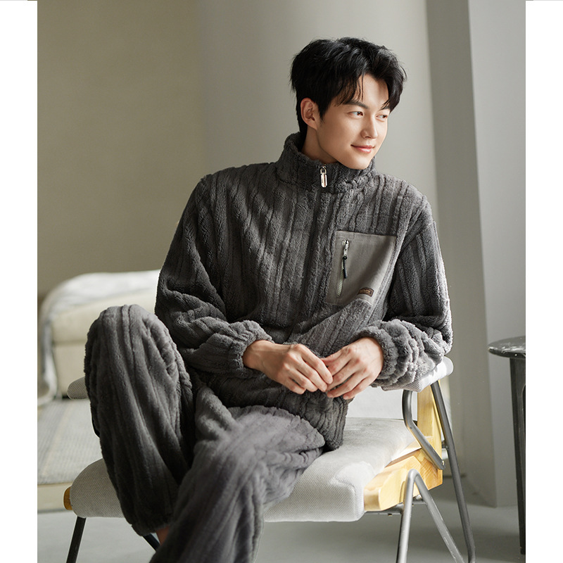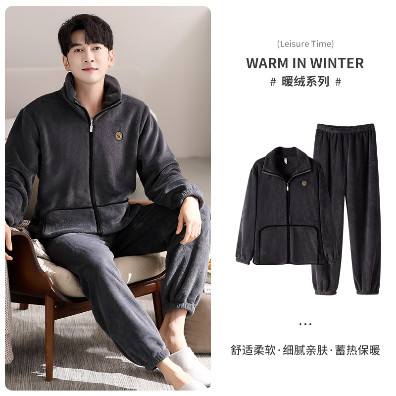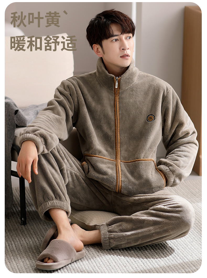 잠옷 남자의 겨울 산호 양털 두꺼운 기모 플란넬 남자의 플러스 사이즈 스포츠 가을과 겨울 가정 의류 세트스토어 가기
