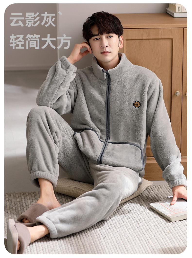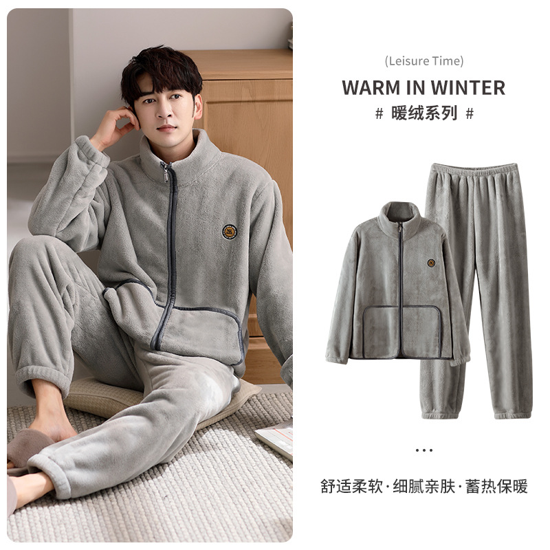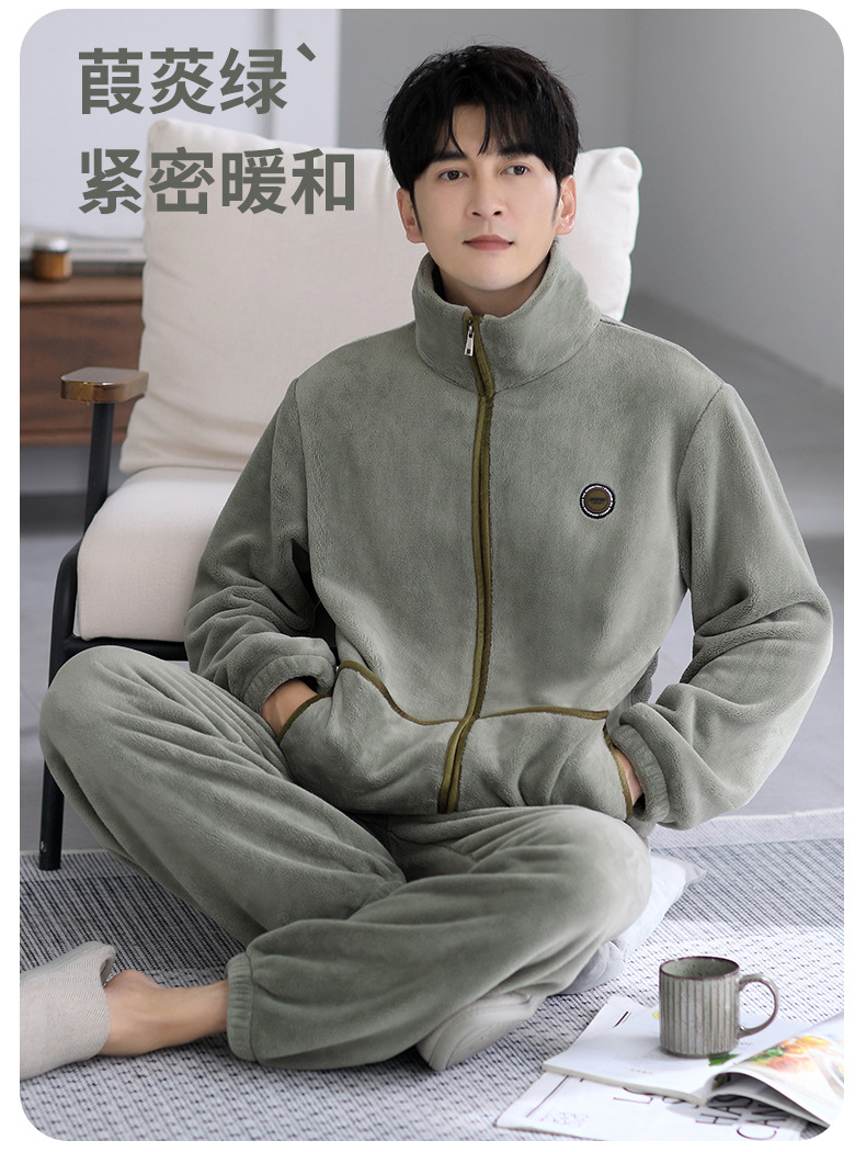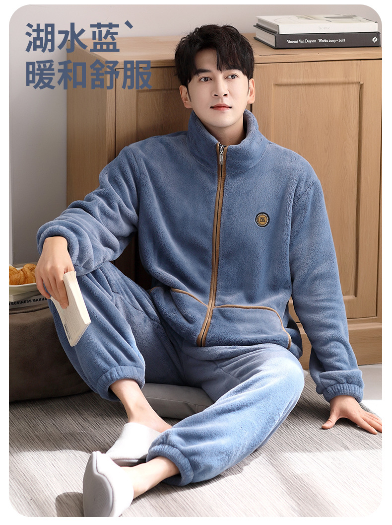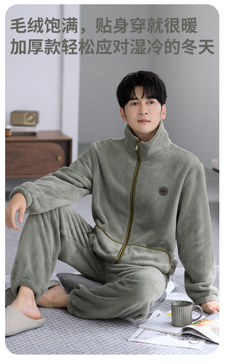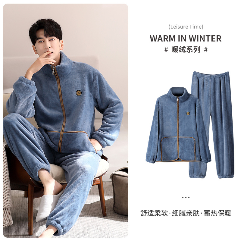 잠옷 남자의 겨울 산호 양털 두꺼운 기모 플란넬 남자의 플러스 사이즈 스포츠 가을과 겨울 가정 의류 세트스토어 가기