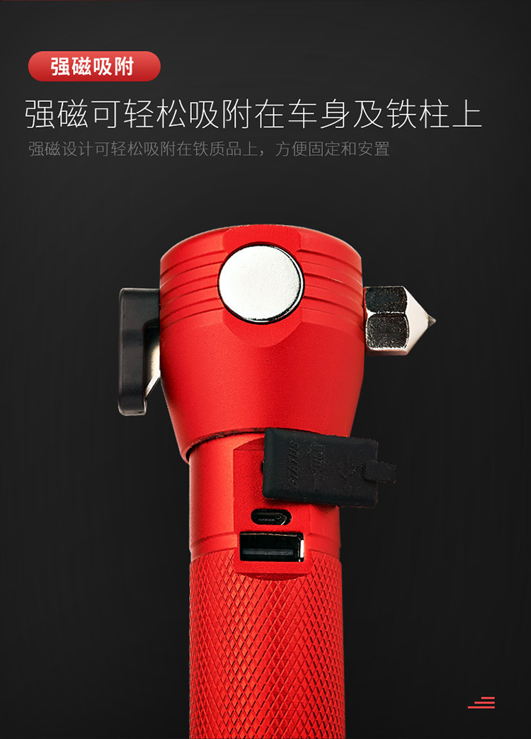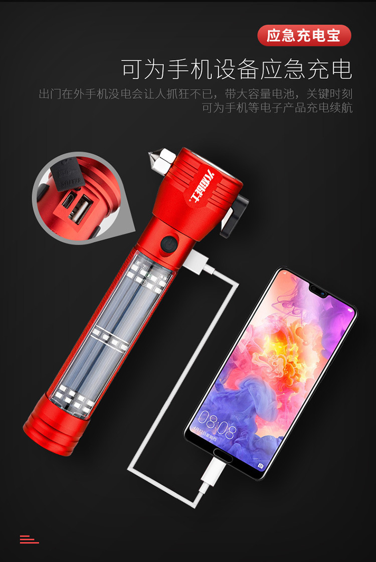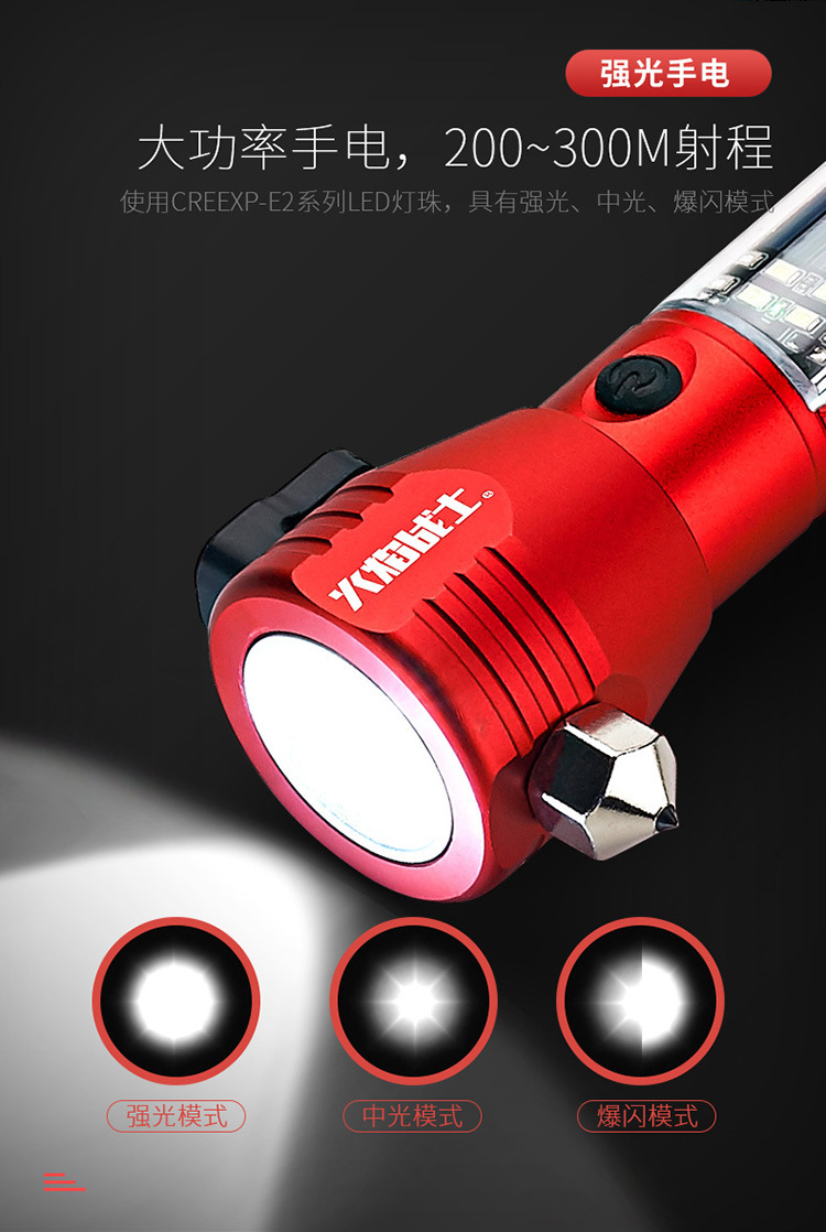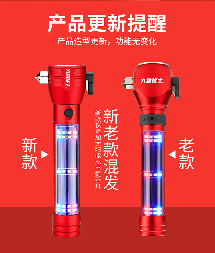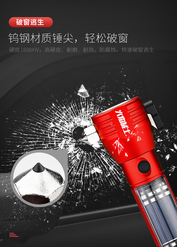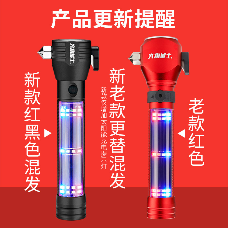 화염 전사 다기능 안전 망치 태양열/강력한 자기/경보/조명/강한 빛 손전등/충전스토어 가기