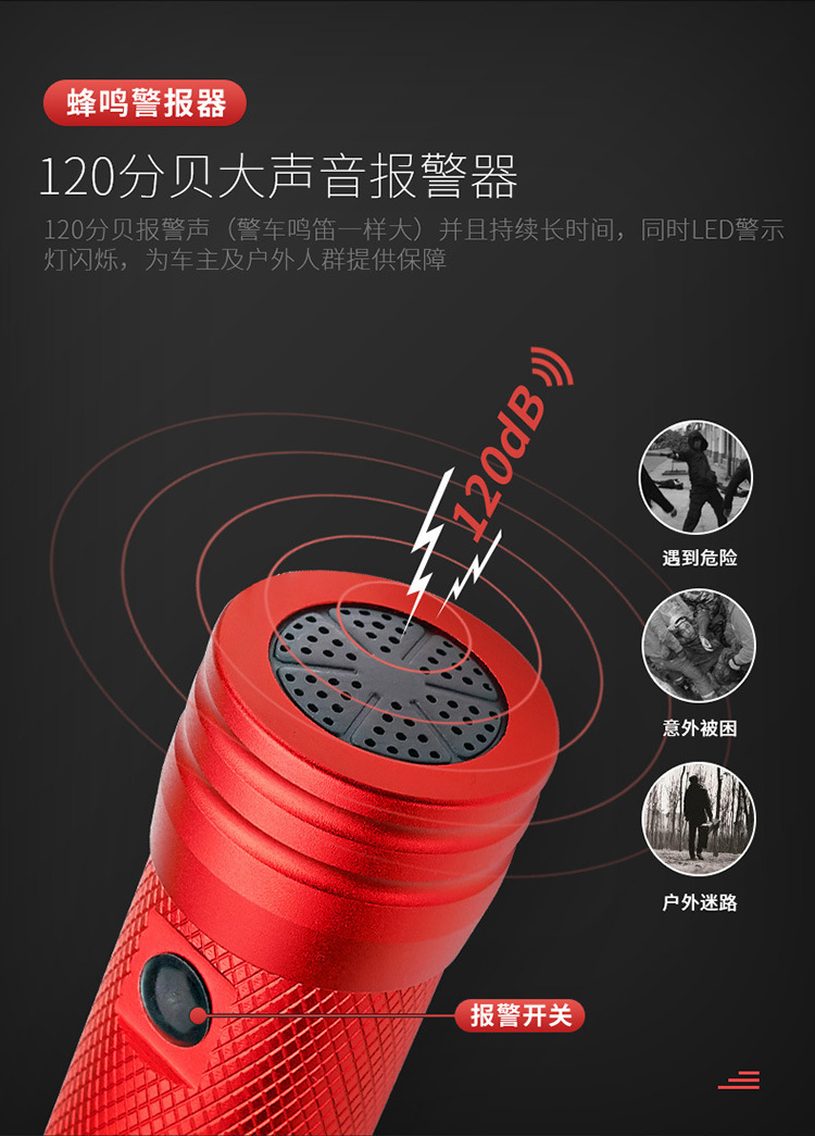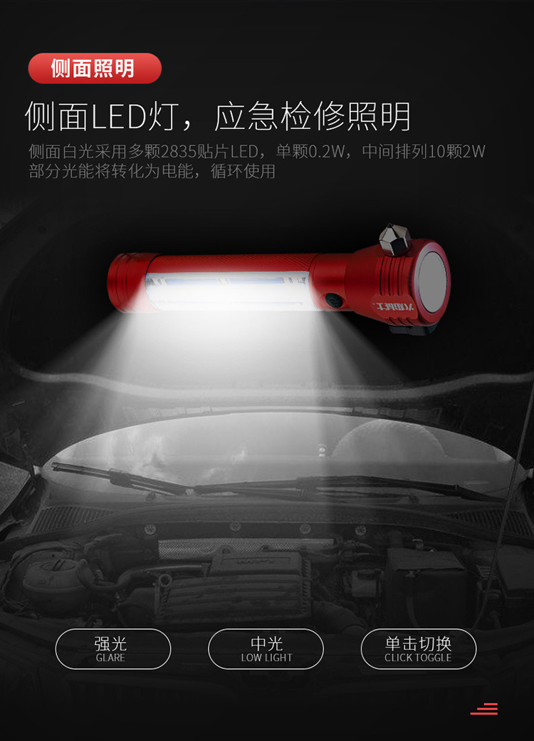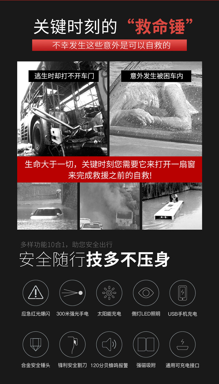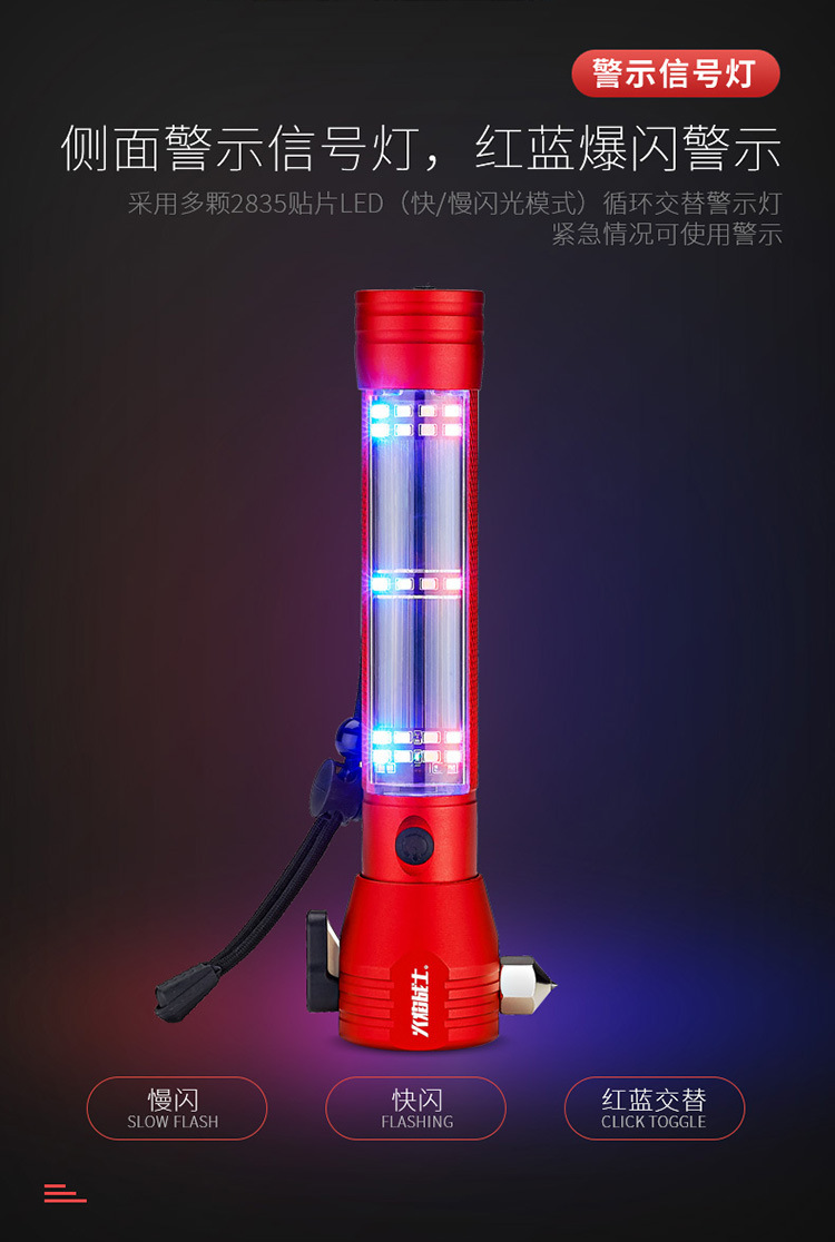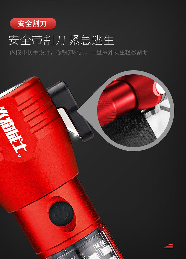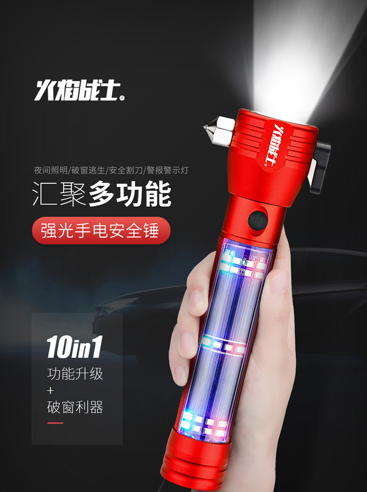 화염 전사 다기능 안전 망치 태양열/강력한 자기/경보/조명/강한 빛 손전등/충전스토어 가기