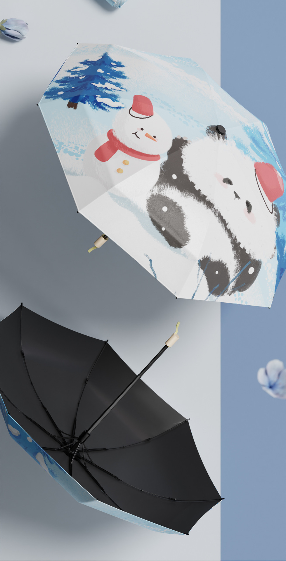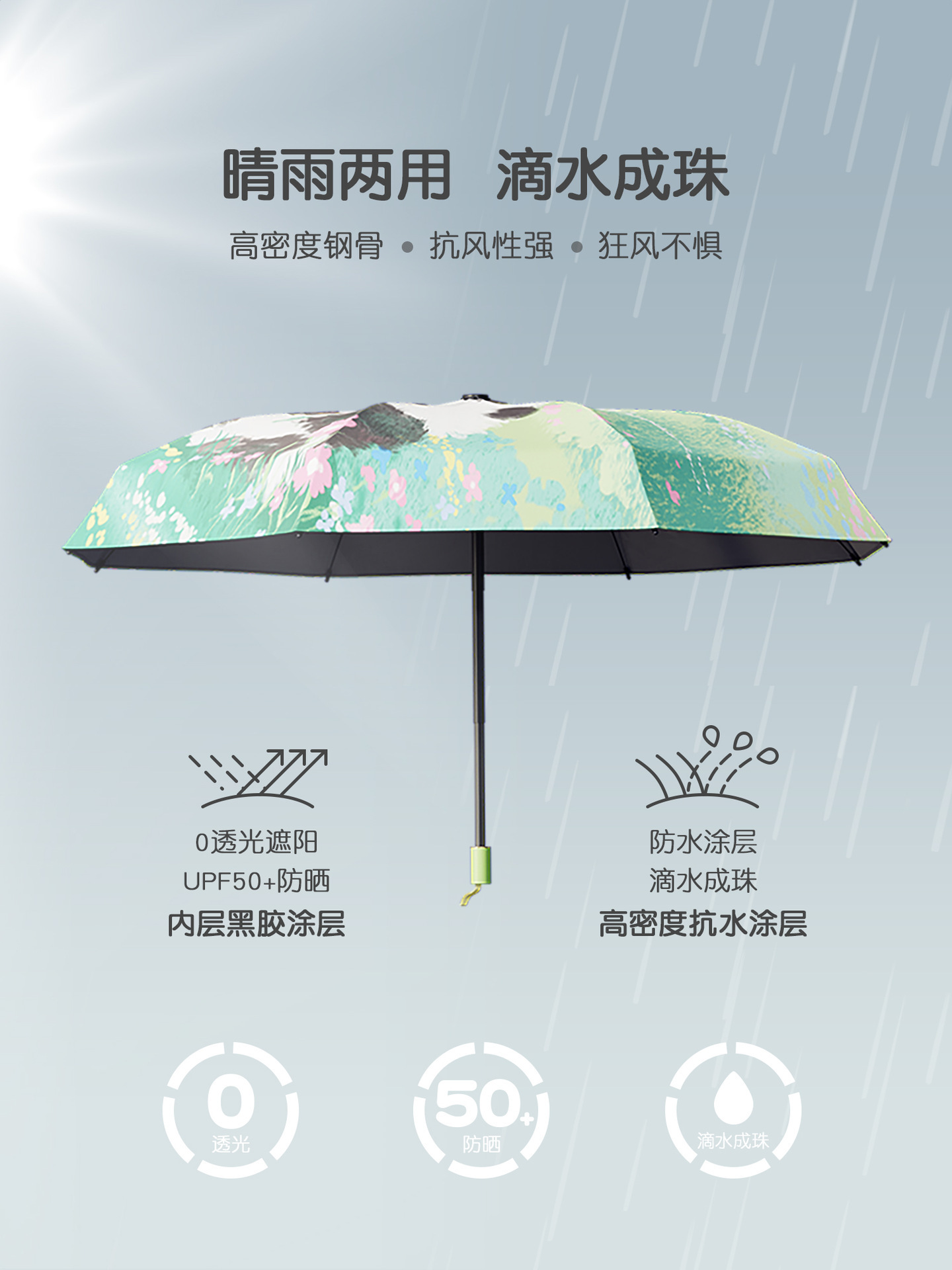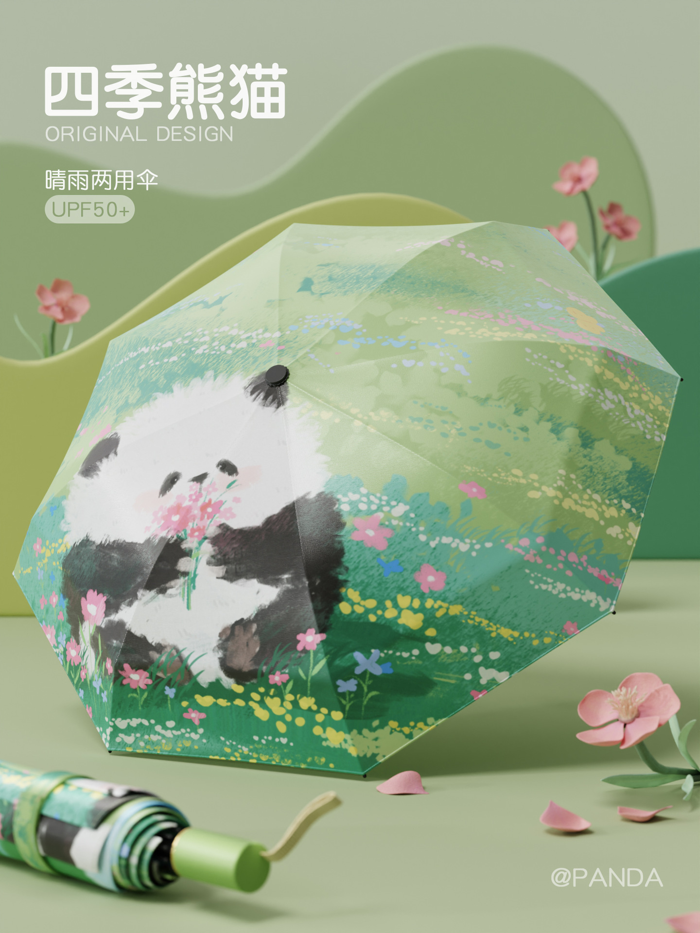 고가 팬더 우산 접는 우산 맑고 비 이중 목적 검은 고무 자외선 차단제 자외선 차단 소형 휴대용 어린이 우산스토어 가기