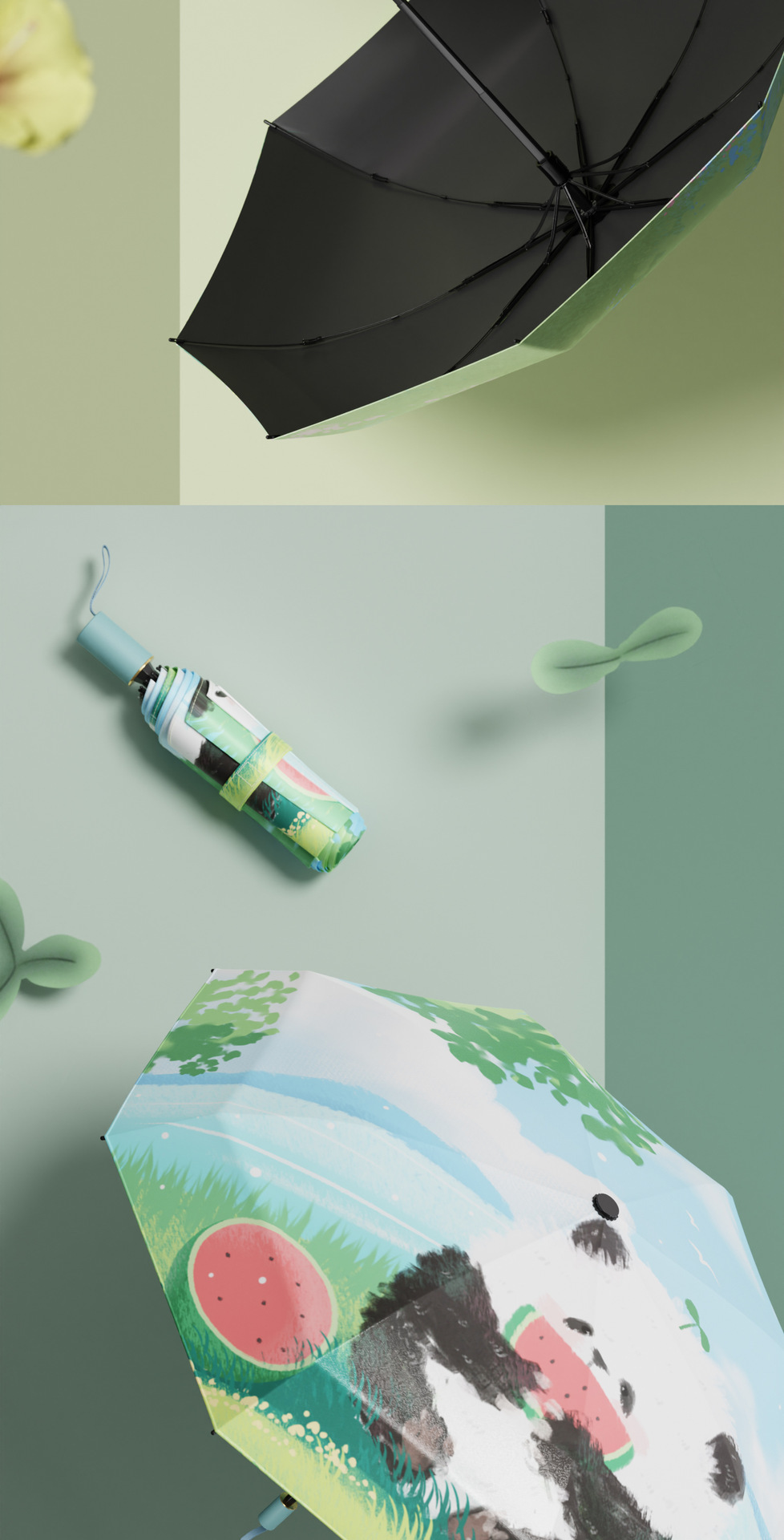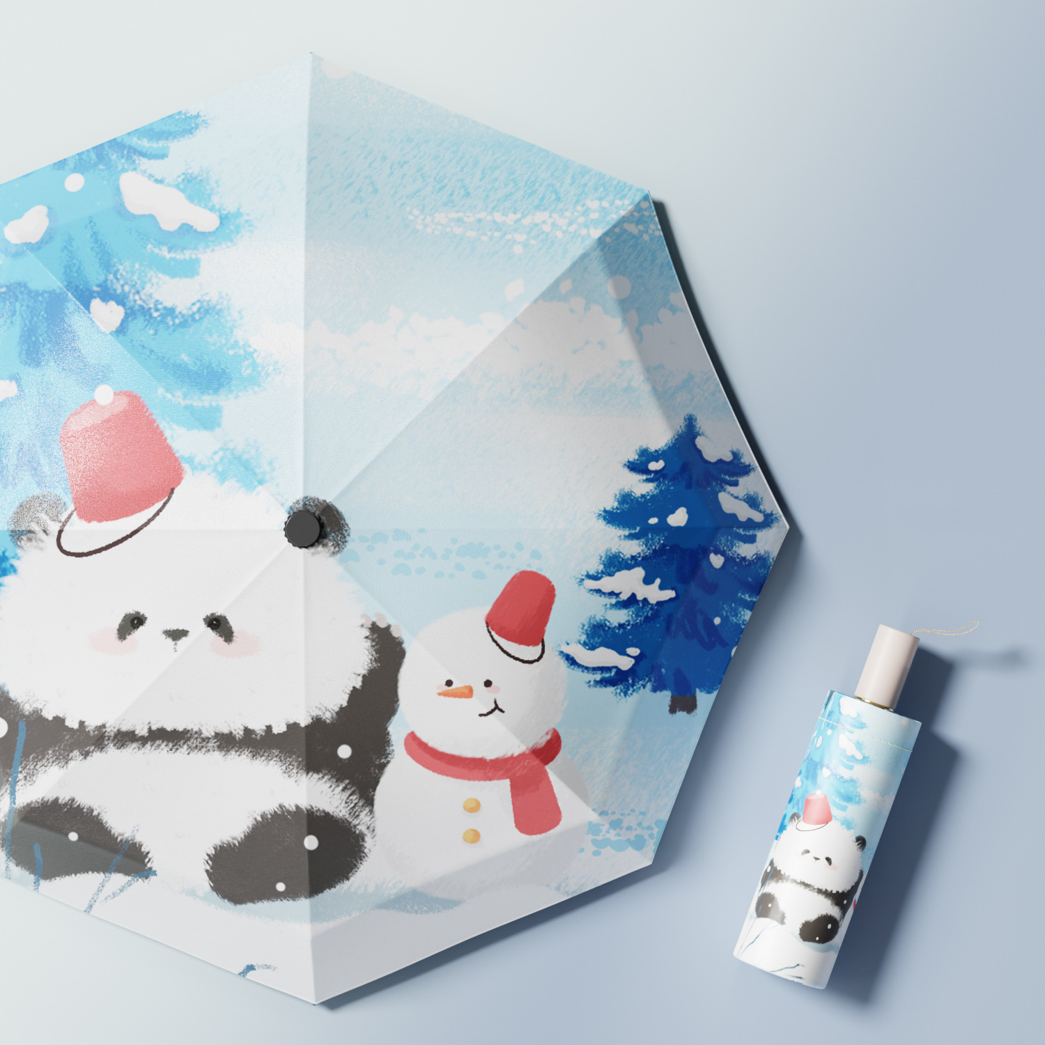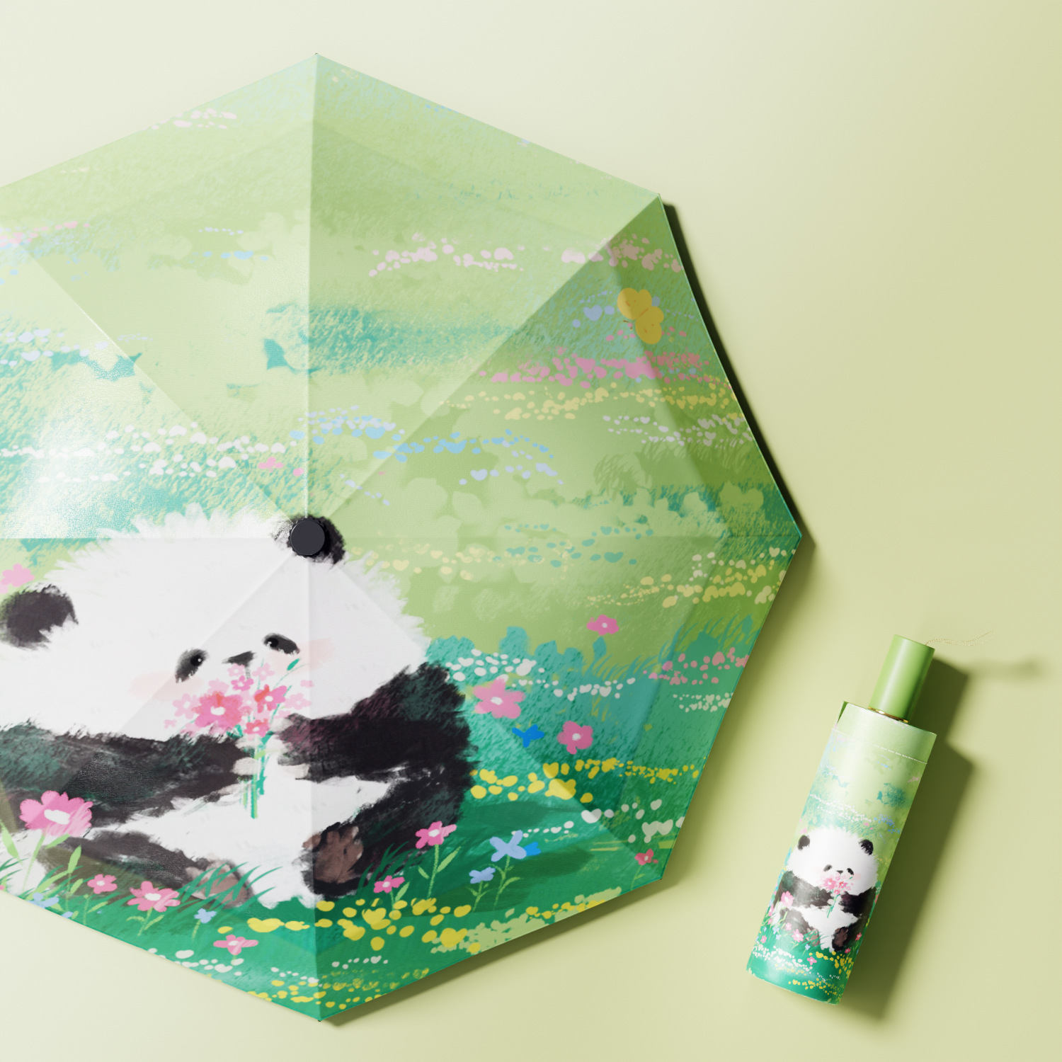 고가 팬더 우산 접는 우산 맑고 비 이중 목적 검은 고무 자외선 차단제 자외선 차단 소형 휴대용 어린이 우산스토어 가기