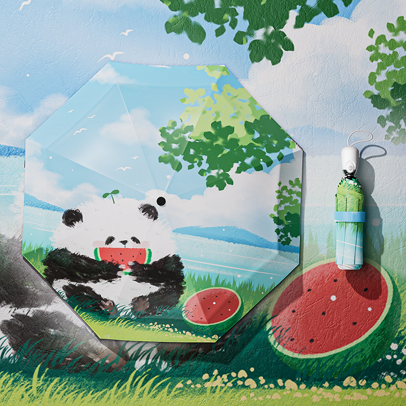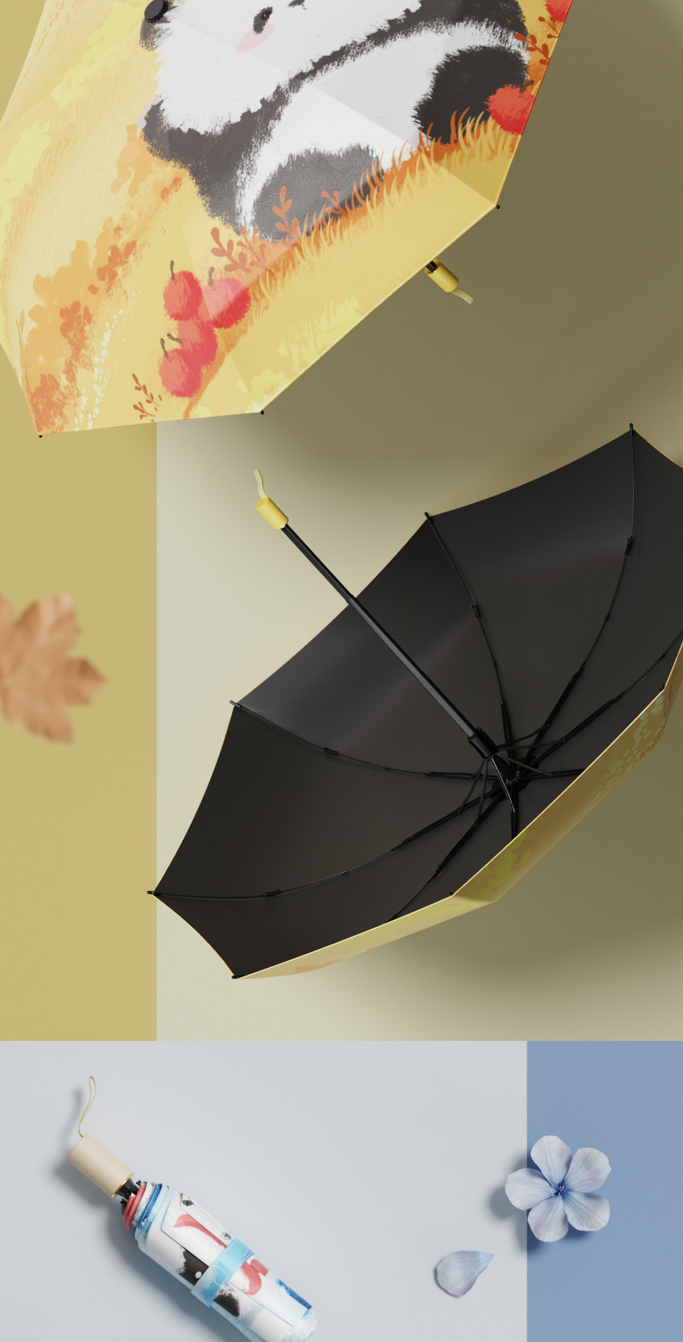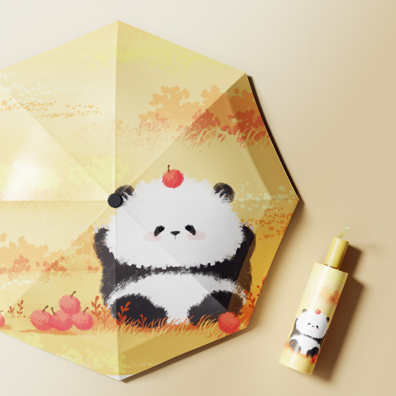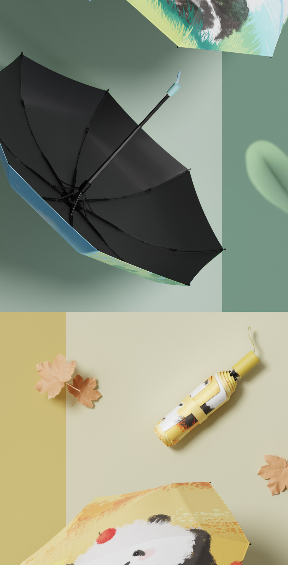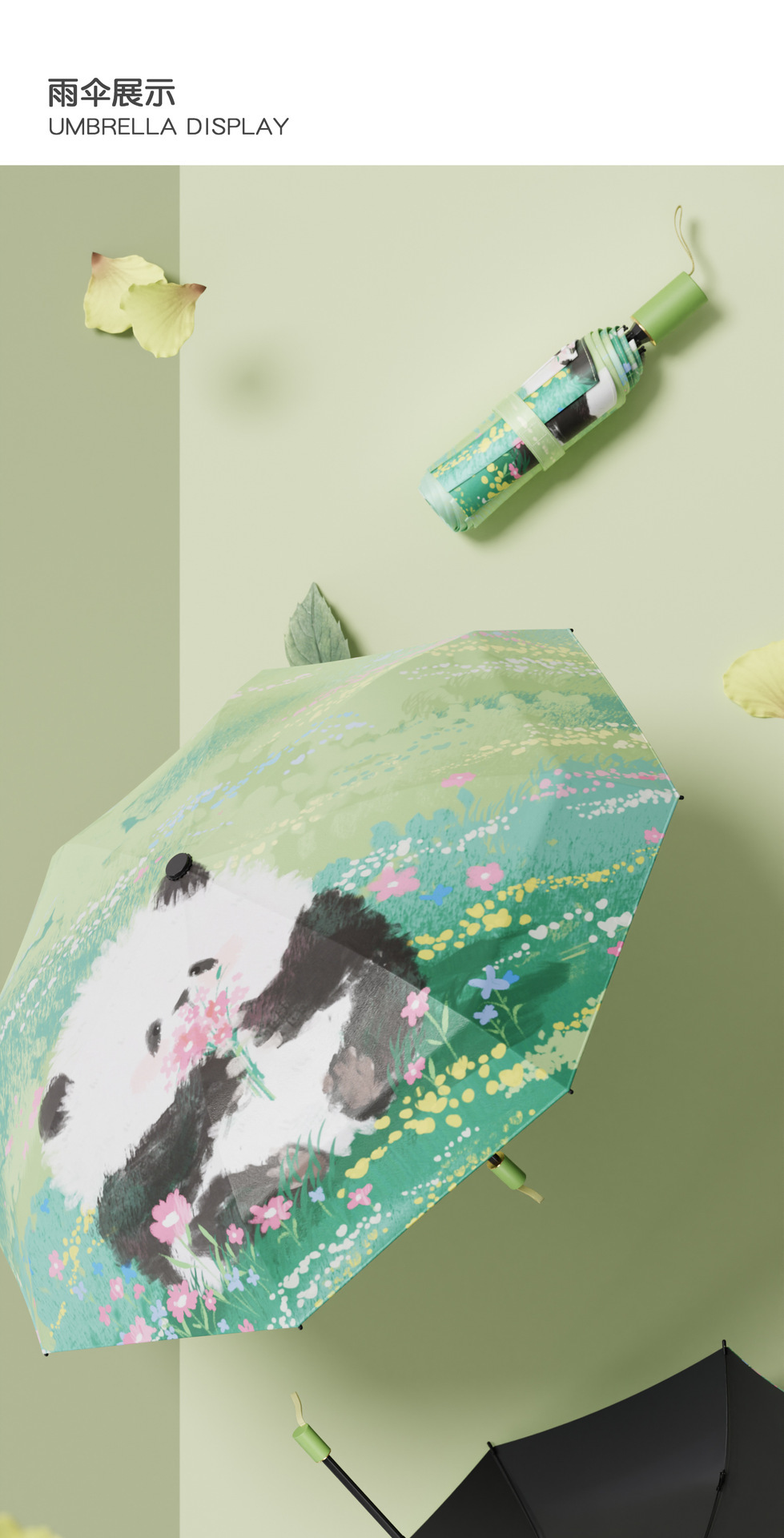 고가 팬더 우산 접는 우산 맑고 비 이중 목적 검은 고무 자외선 차단제 자외선 차단 소형 휴대용 어린이 우산