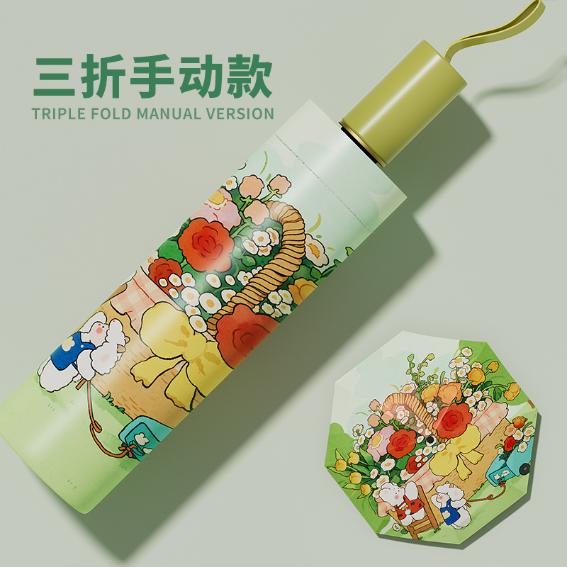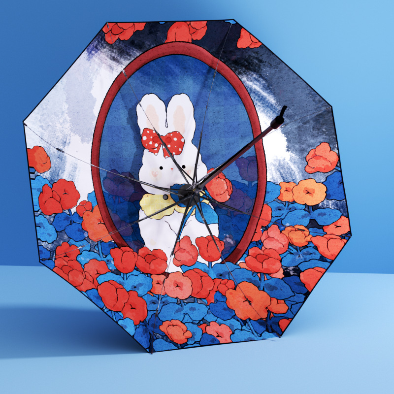• 레트로 로즈 래빗 우산 [고성능 자외선 차단제 + 매뉴얼 8 골내풍]]