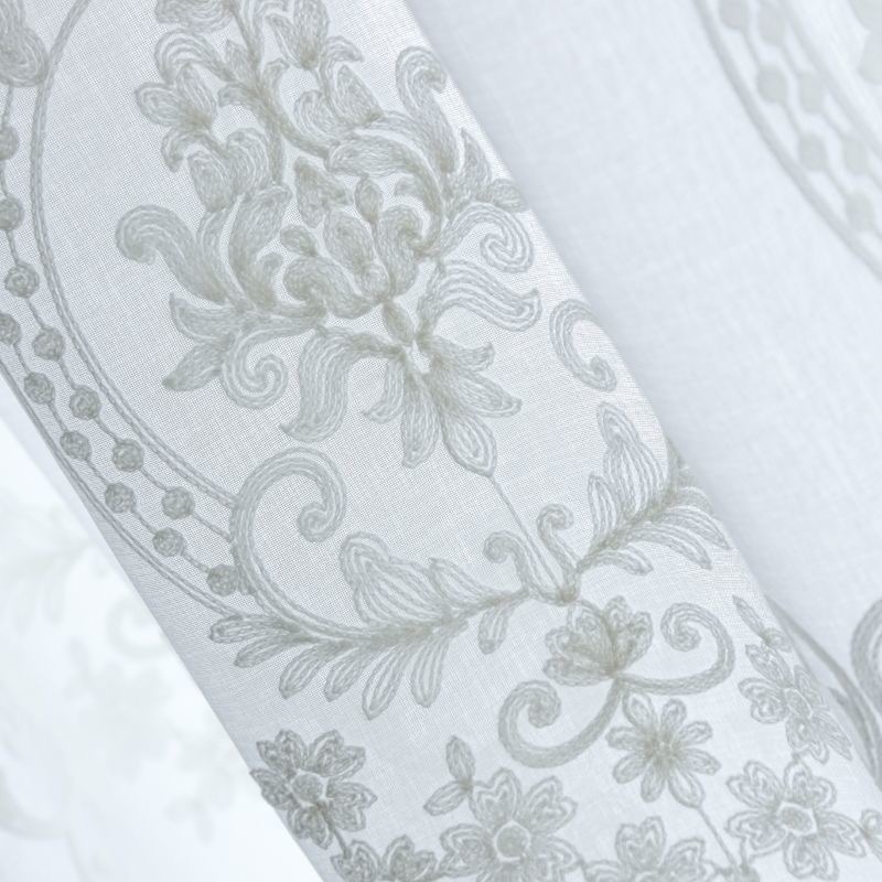 북유럽 스타일 그늘 흰색 창 화면 간단한 자수 거실 커튼 고급 분위기 유럽 자수 완성 침실