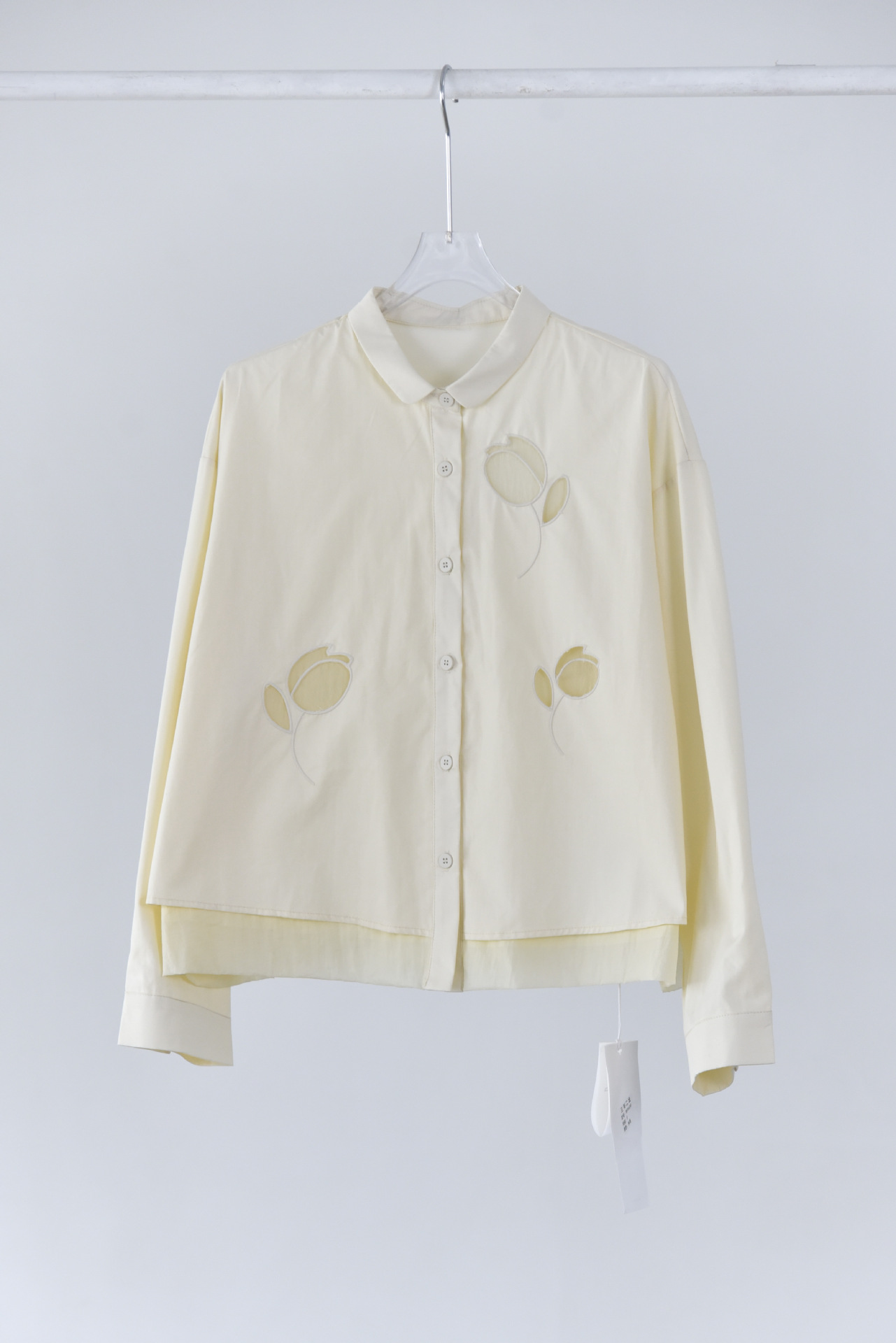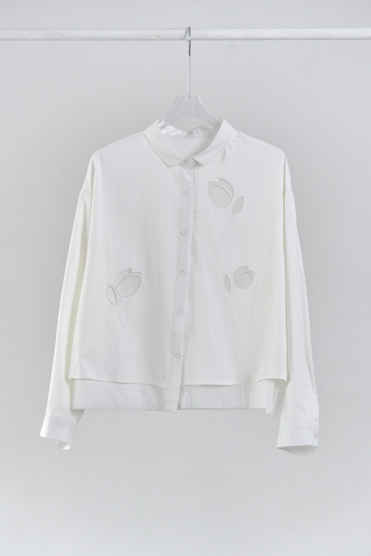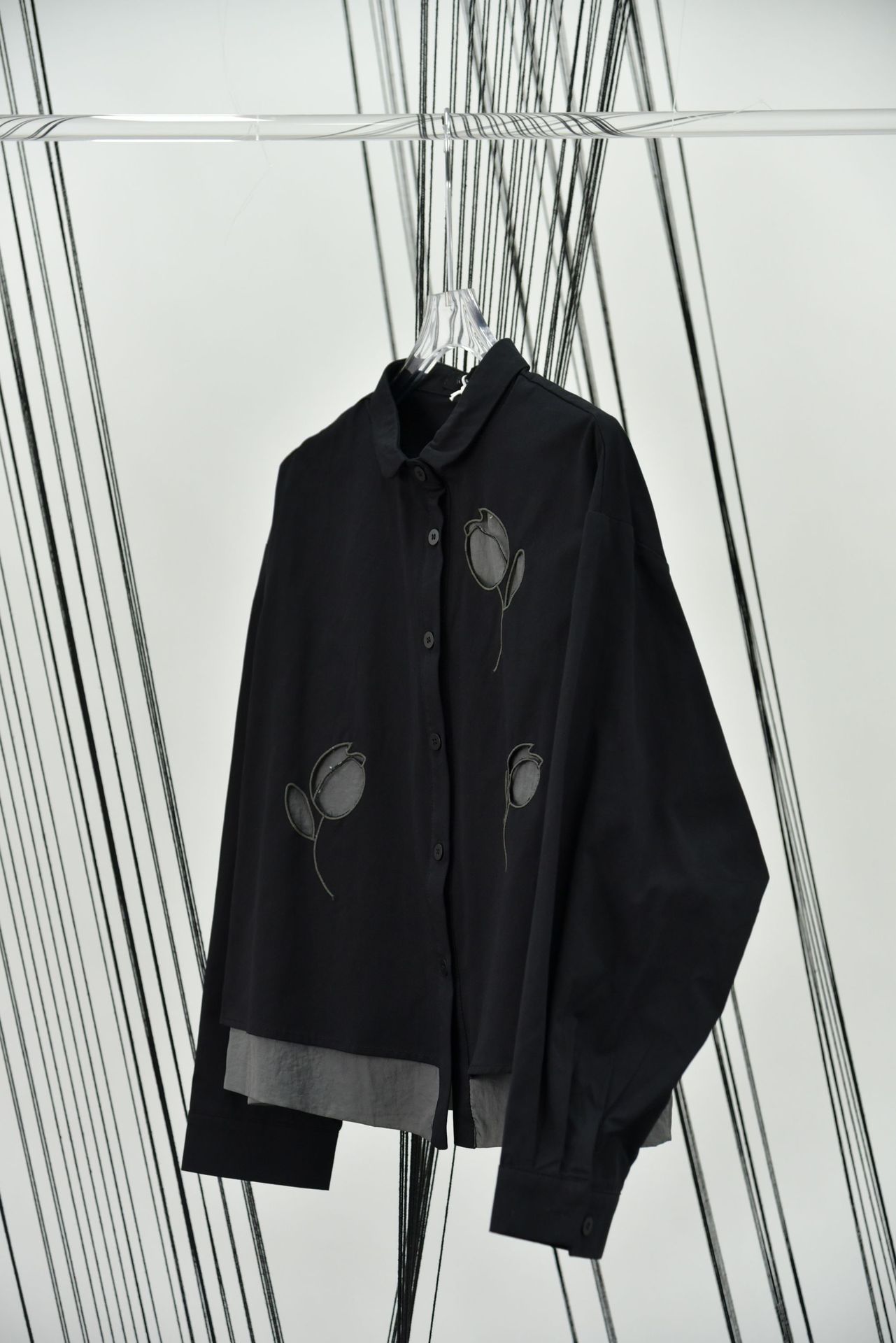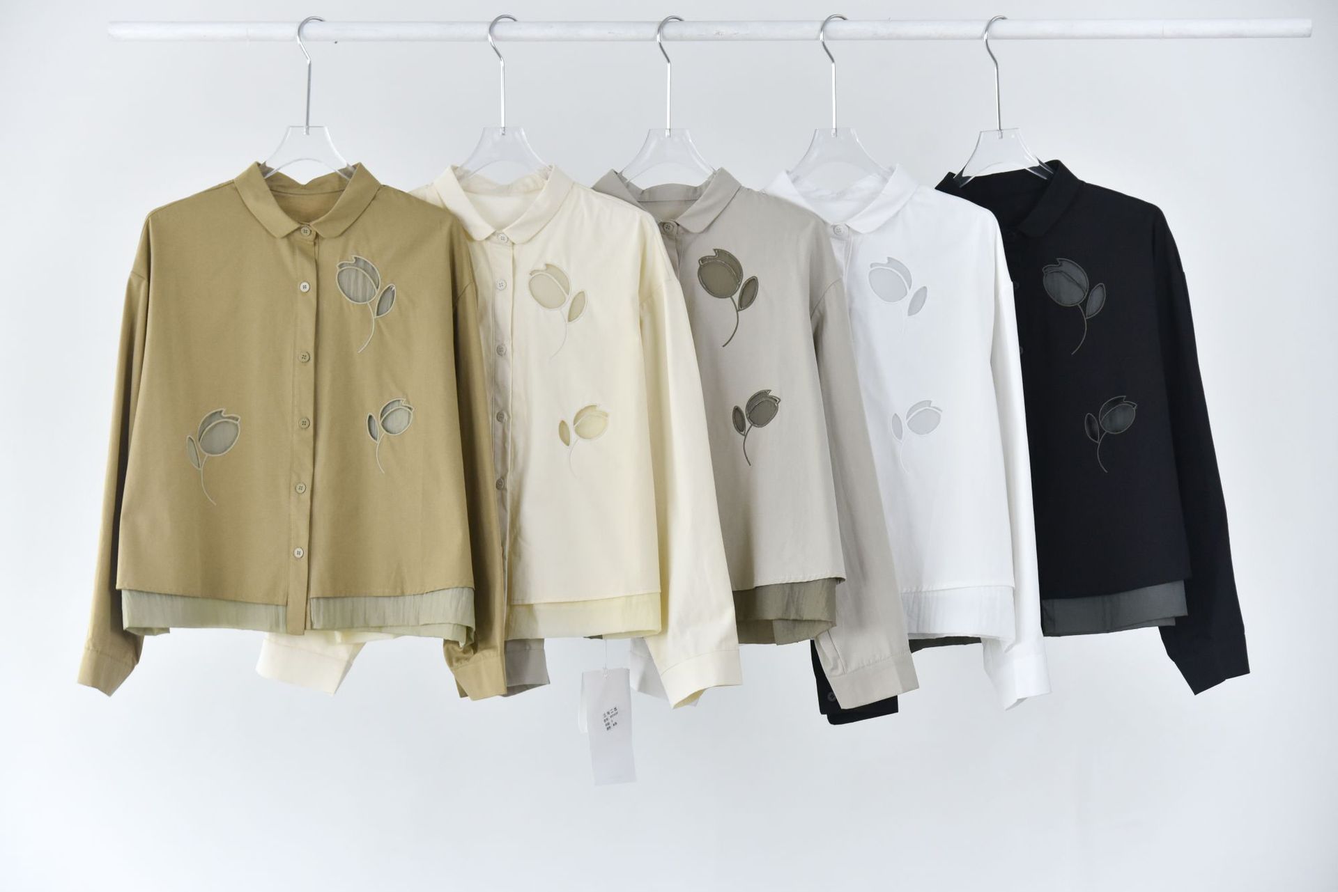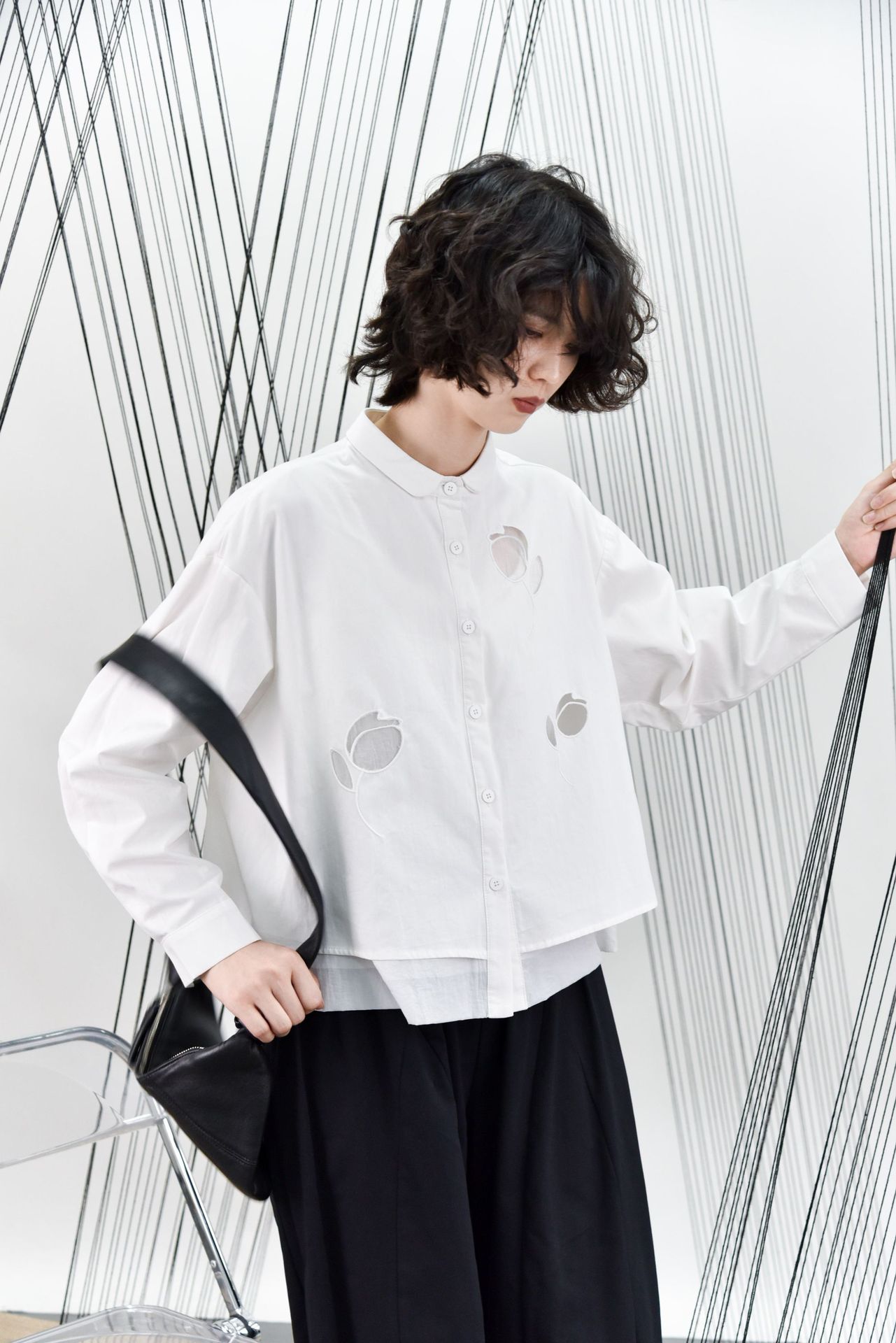 3 과 2 아웃 // 이른 가을 복고풍 더블 중공 튤립 디자인 가을 새로운 옷깃 긴 소매 셔츠