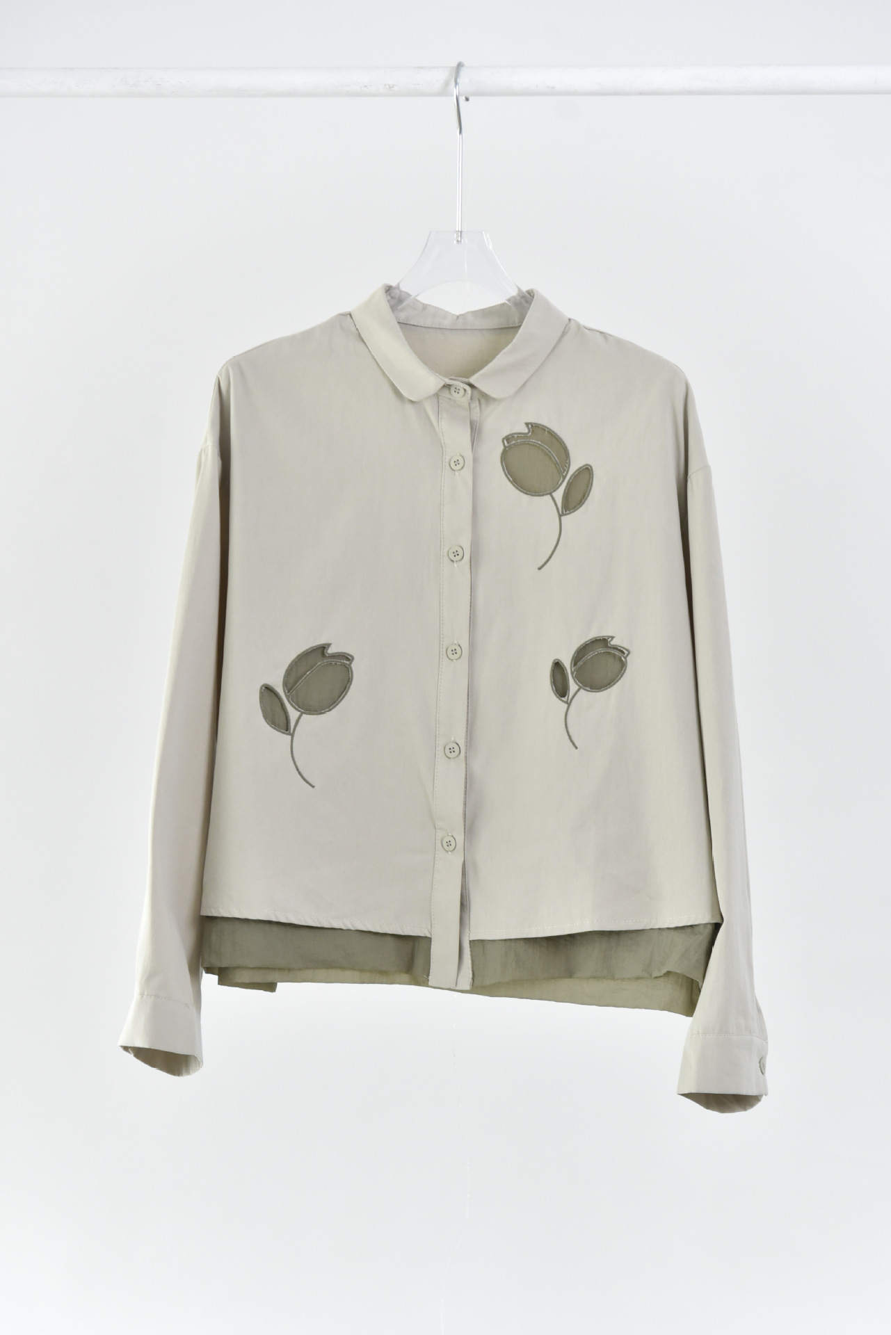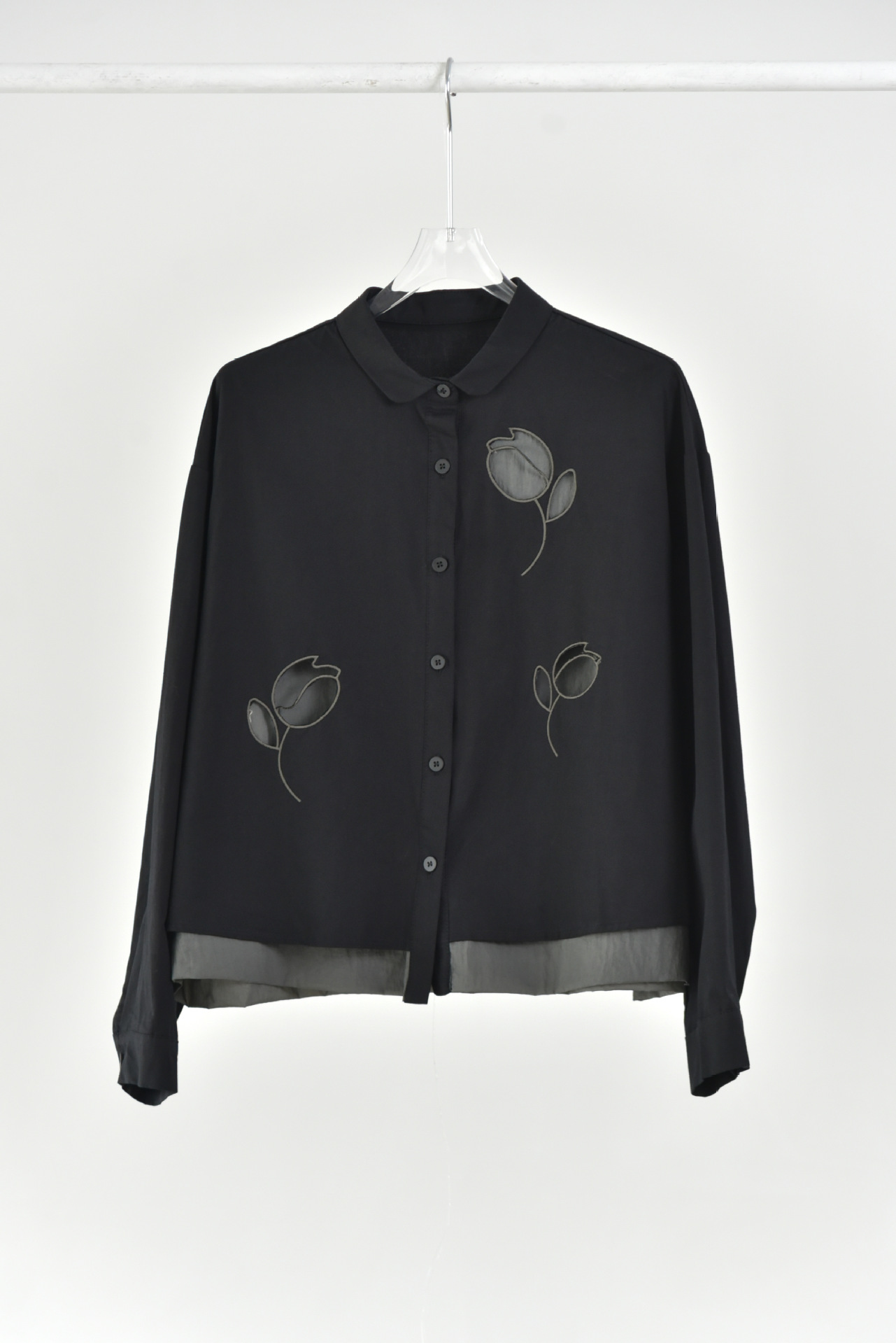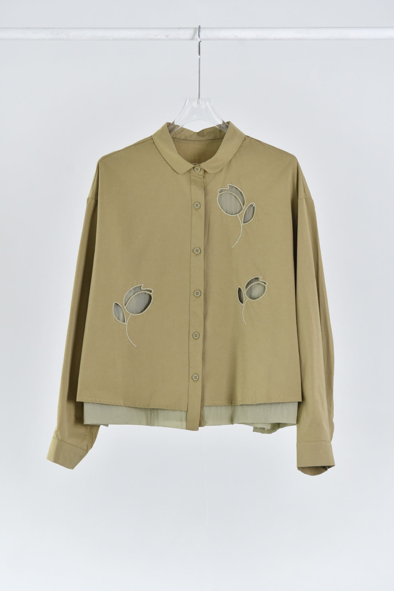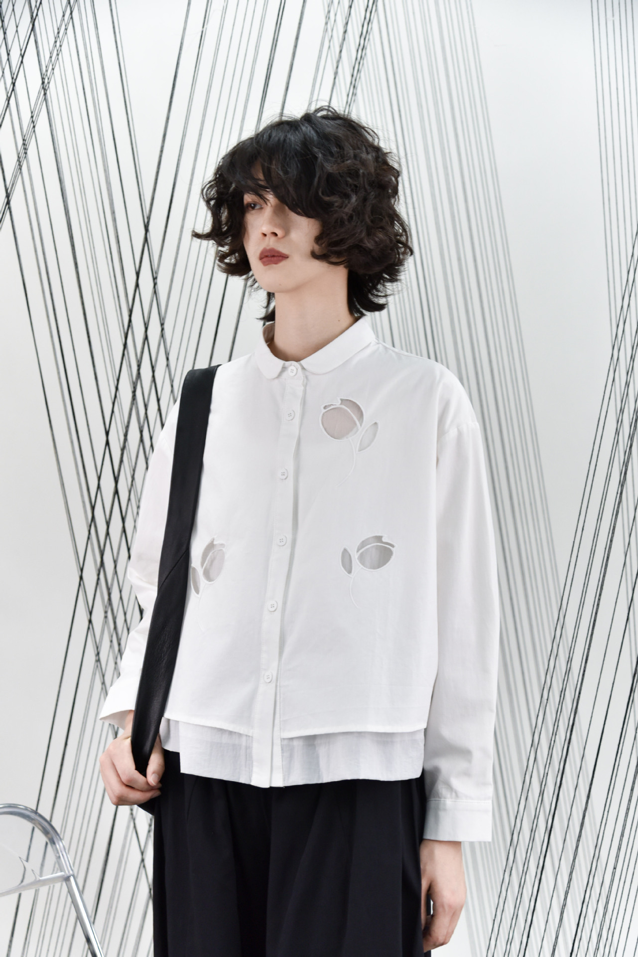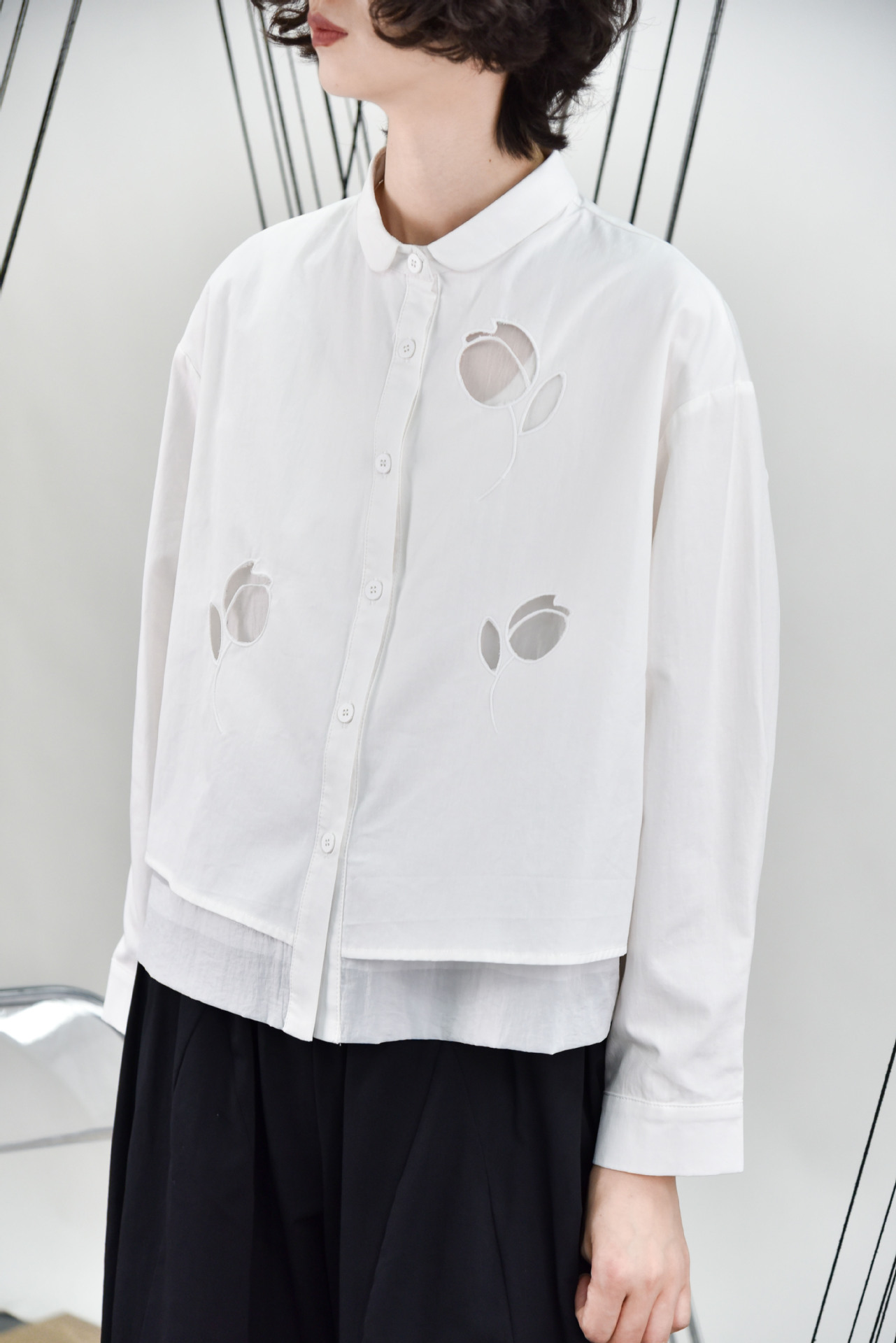 3 과 2 아웃 // 이른 가을 복고풍 더블 중공 튤립 디자인 가을 새로운 옷깃 긴 소매 셔츠
