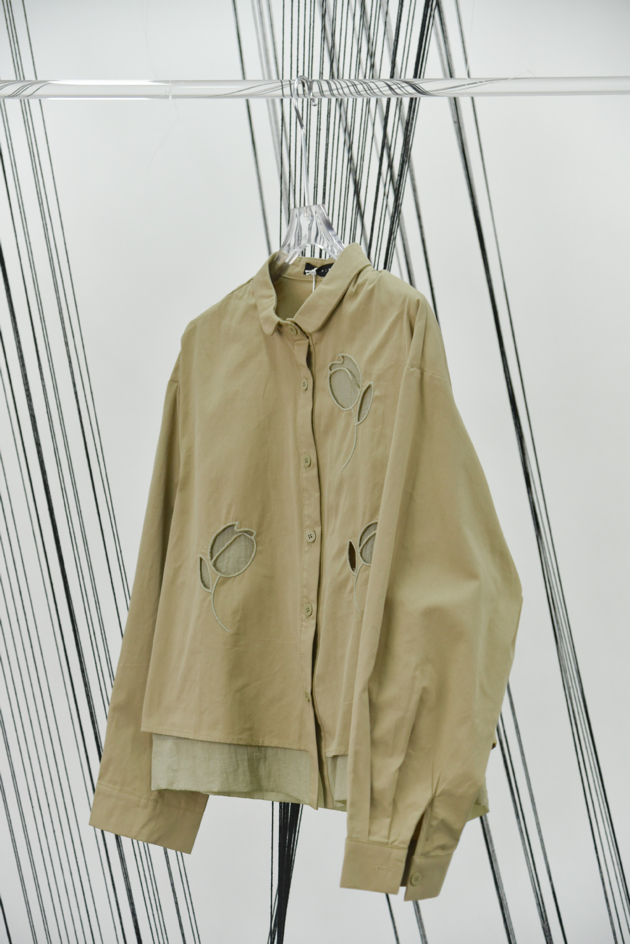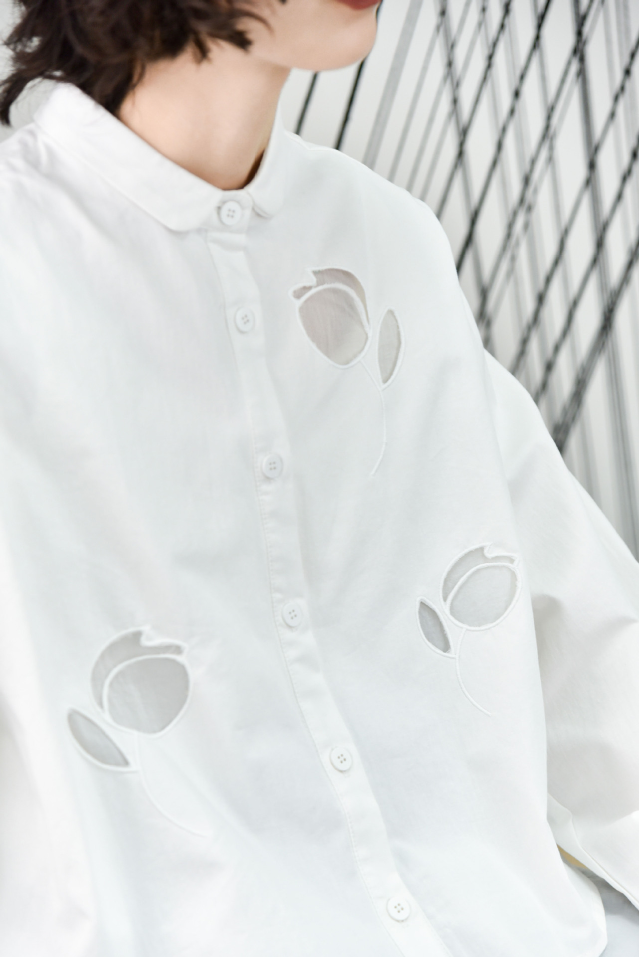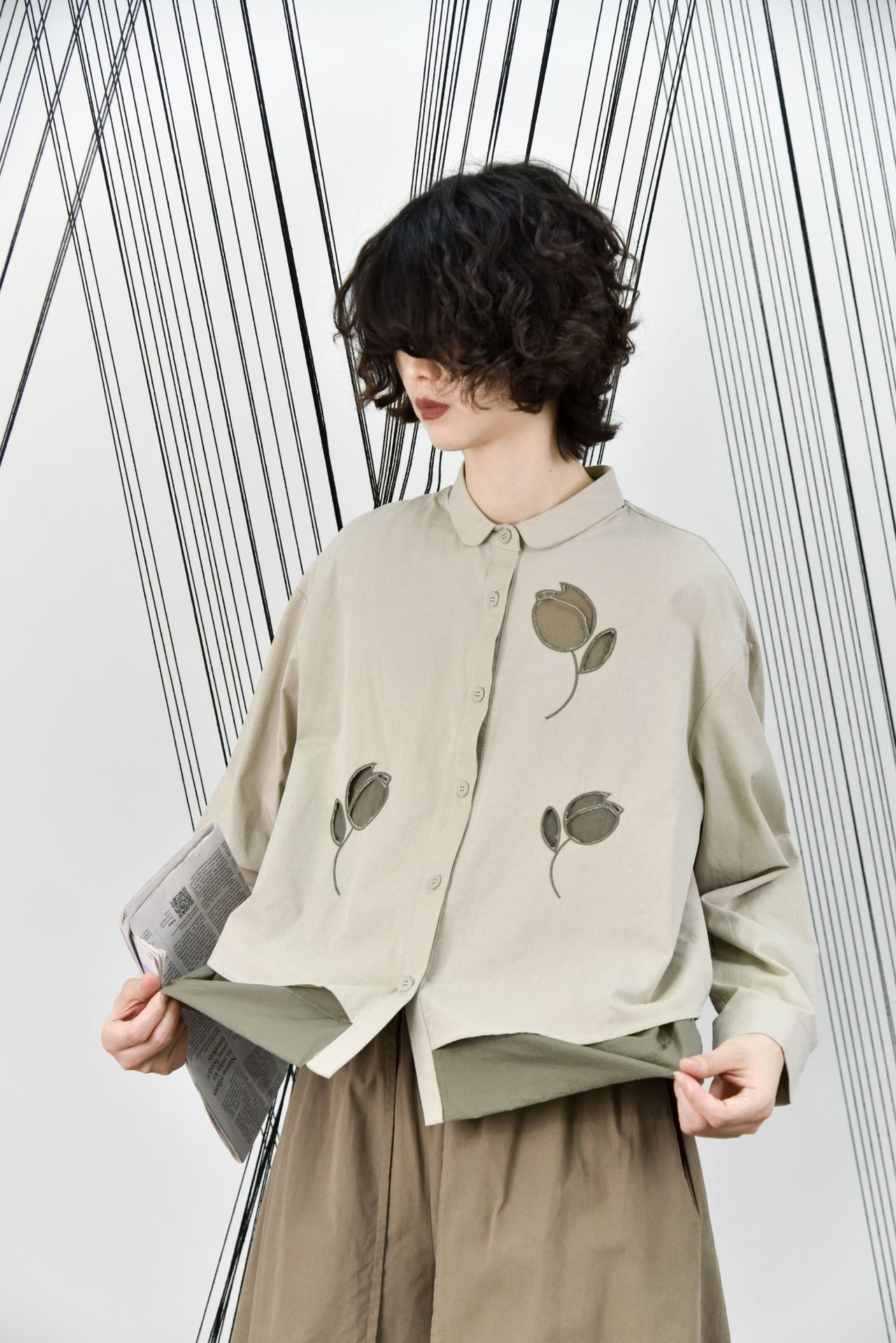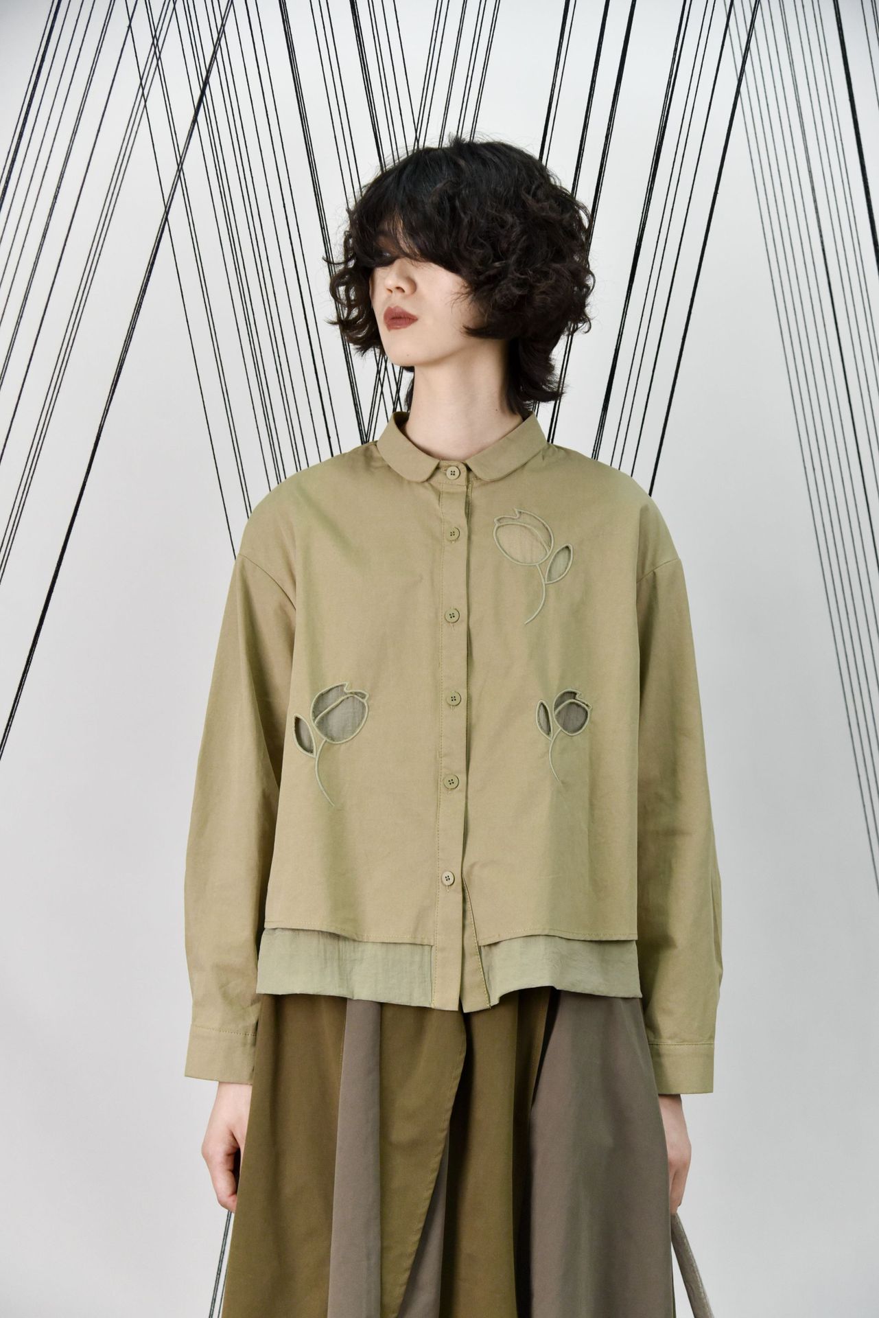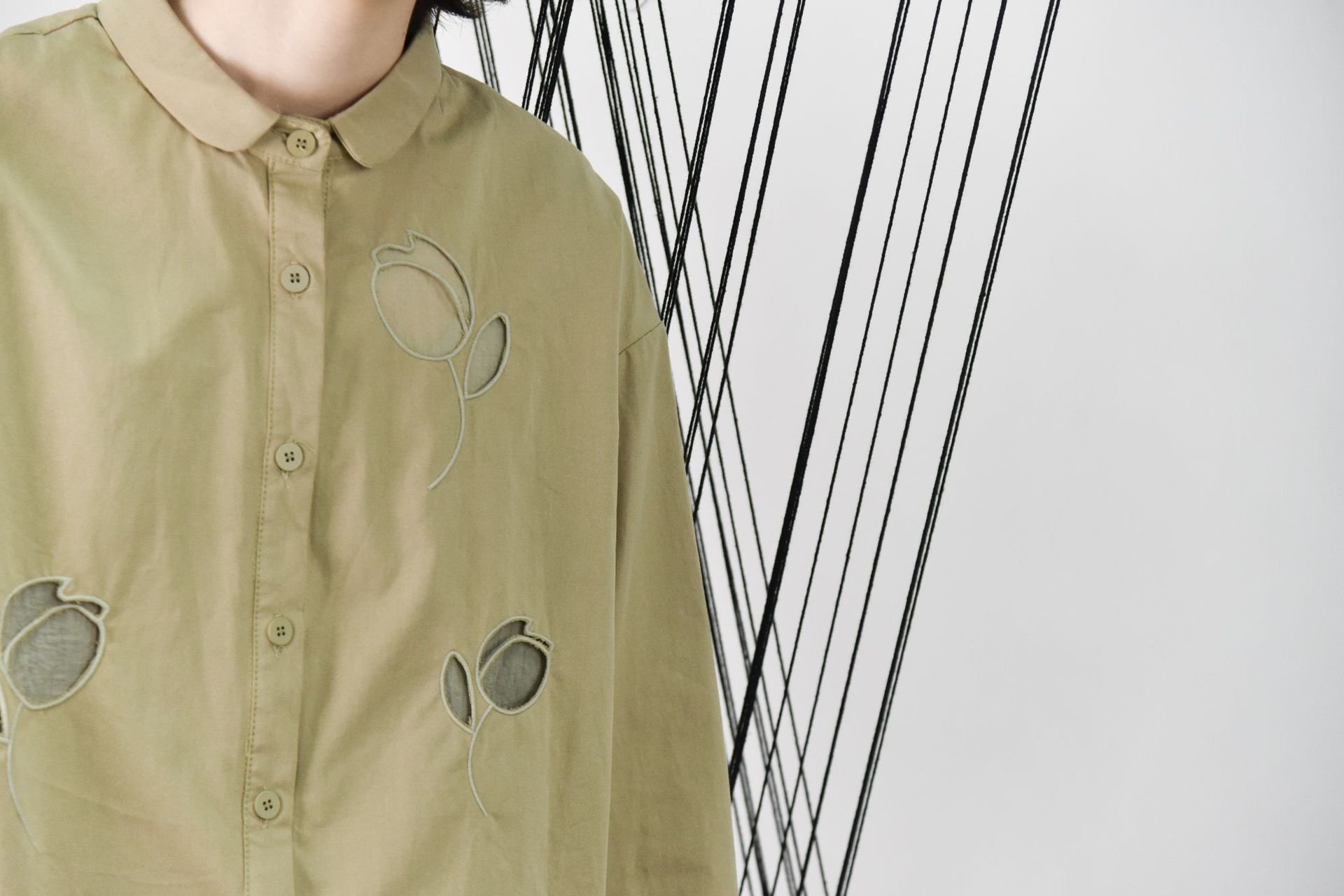 3 과 2 아웃 // 이른 가을 복고풍 더블 중공 튤립 디자인 가을 새로운 옷깃 긴 소매 셔츠