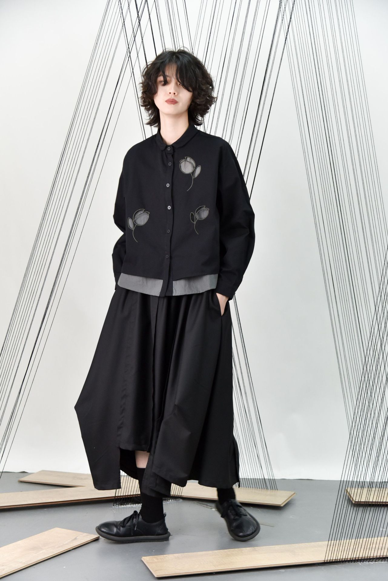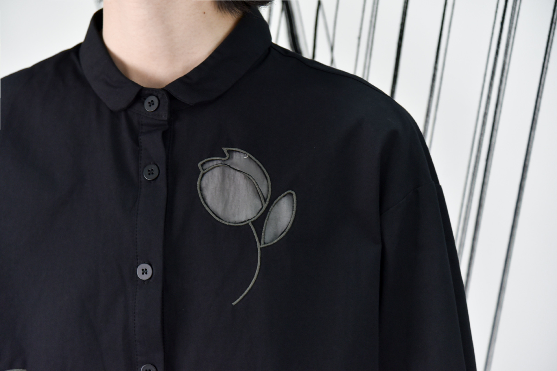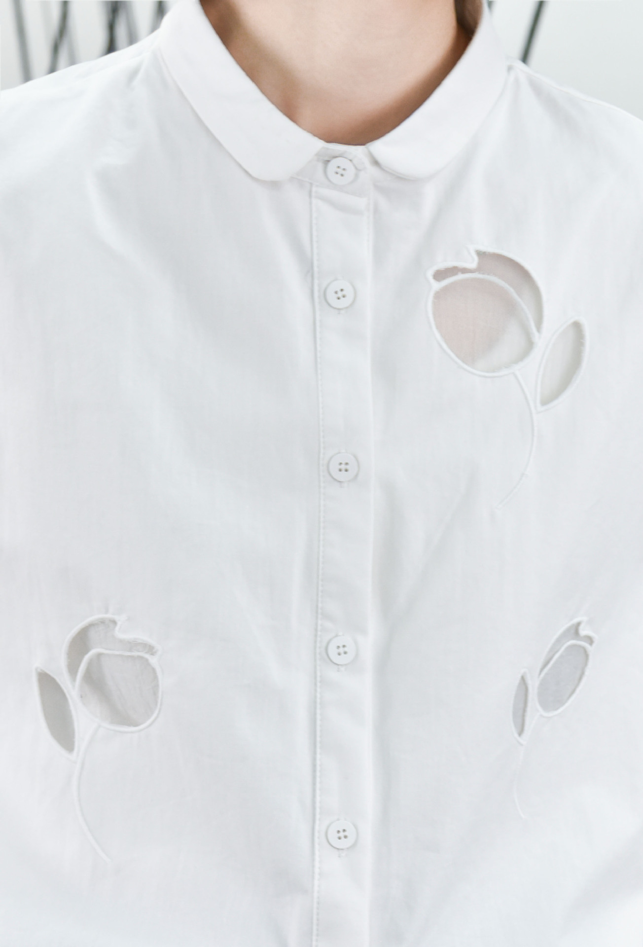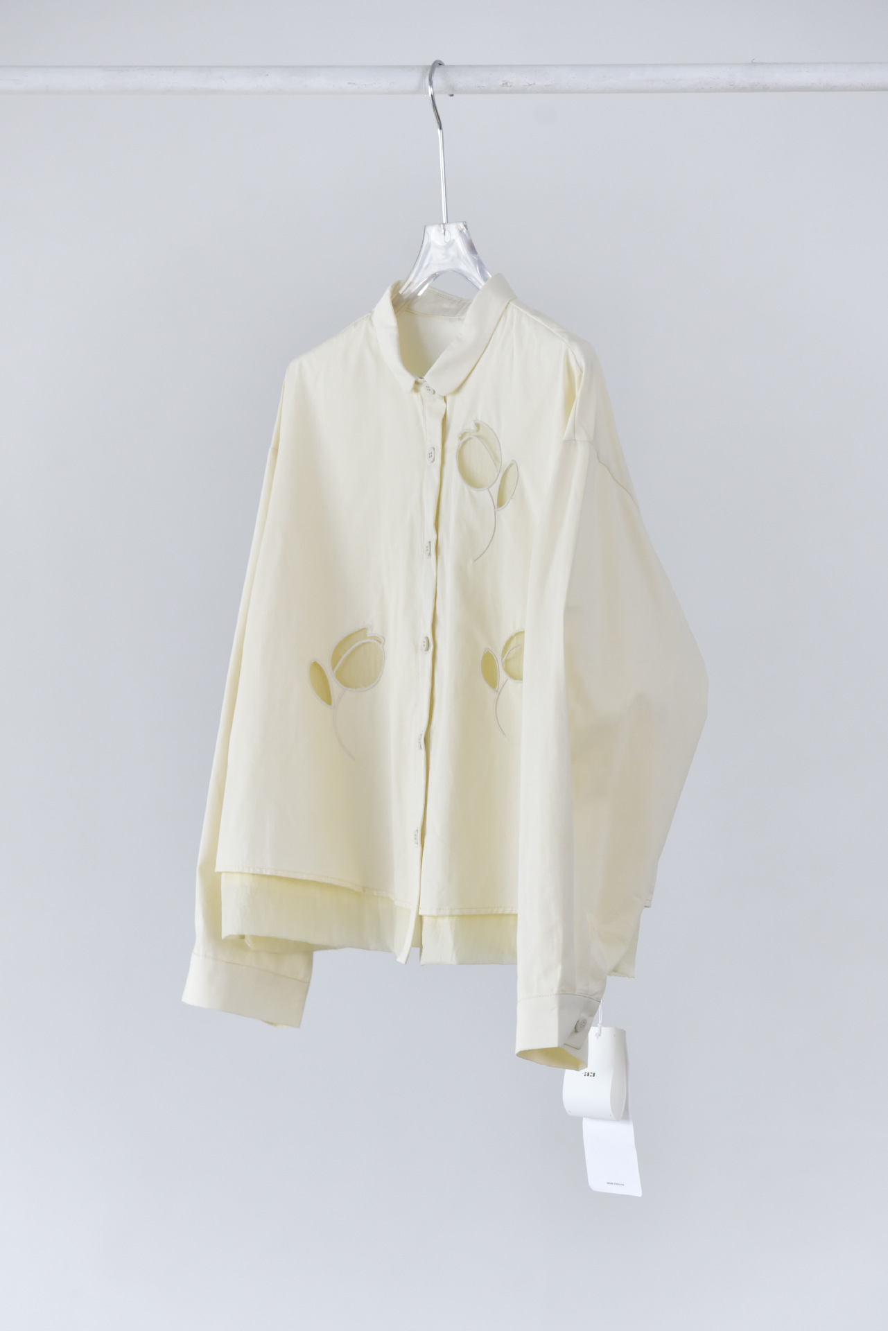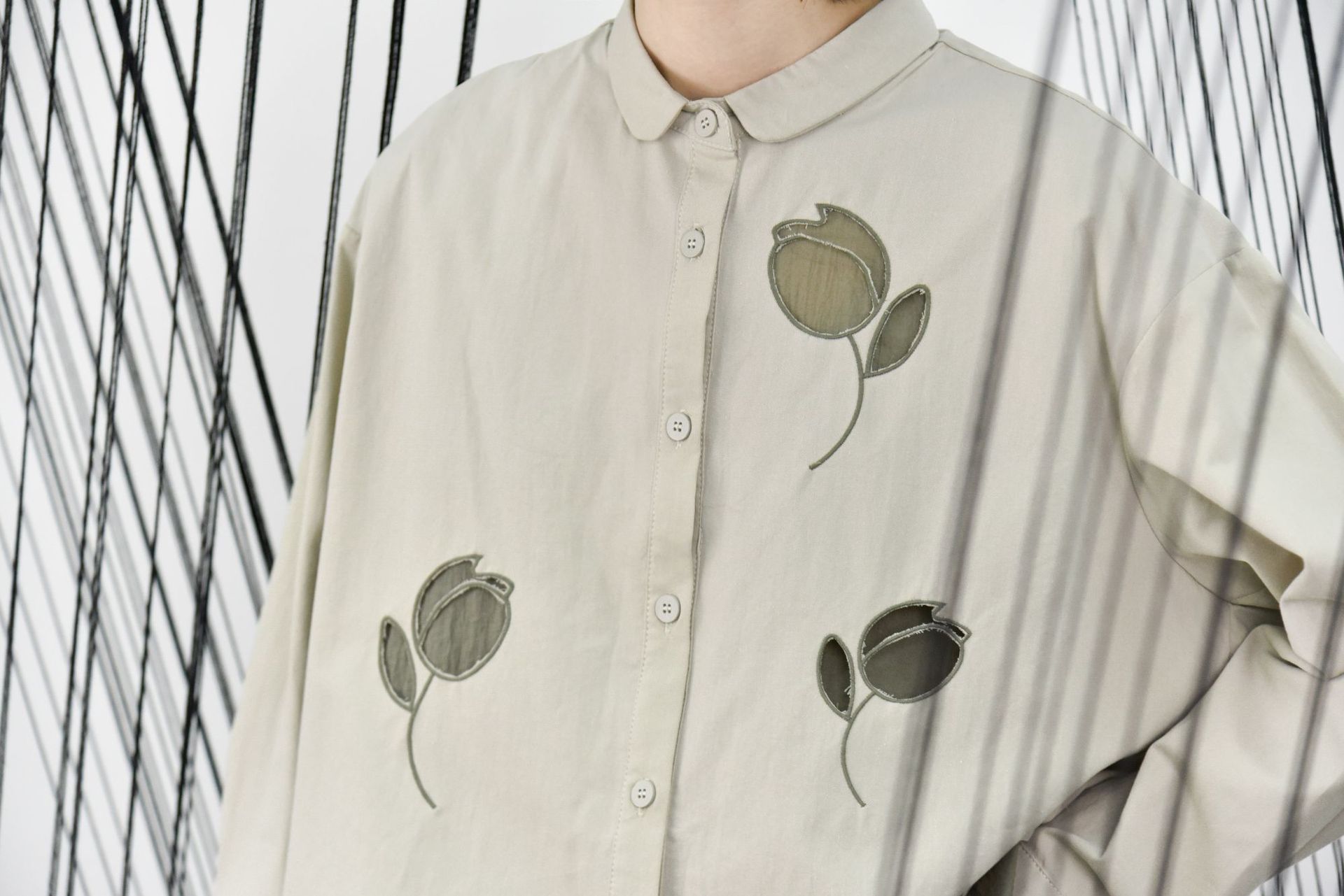 3 과 2 아웃 // 이른 가을 복고풍 더블 중공 튤립 디자인 가을 새로운 옷깃 긴 소매 셔츠