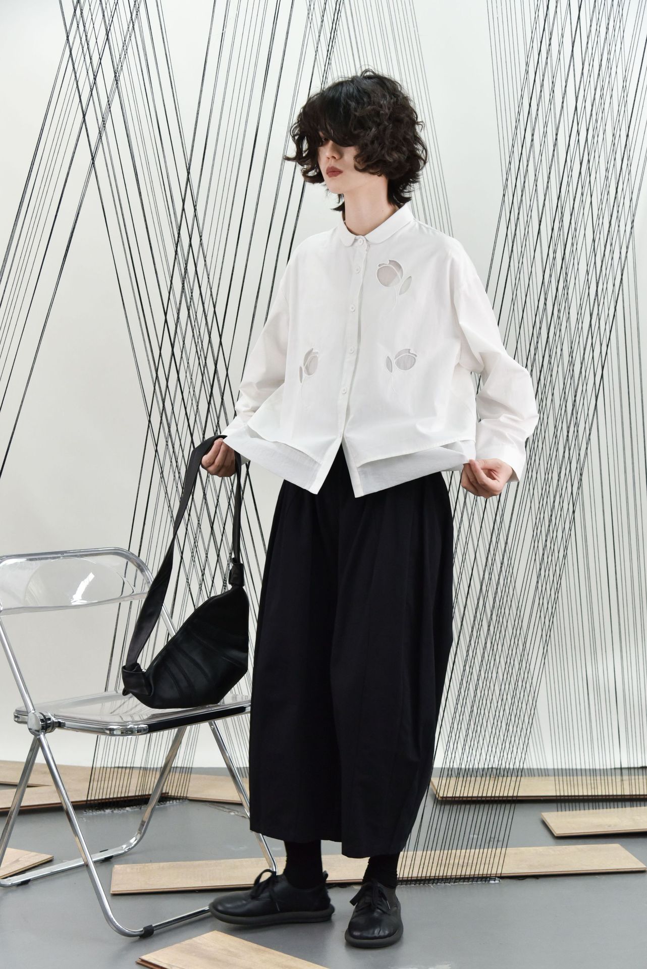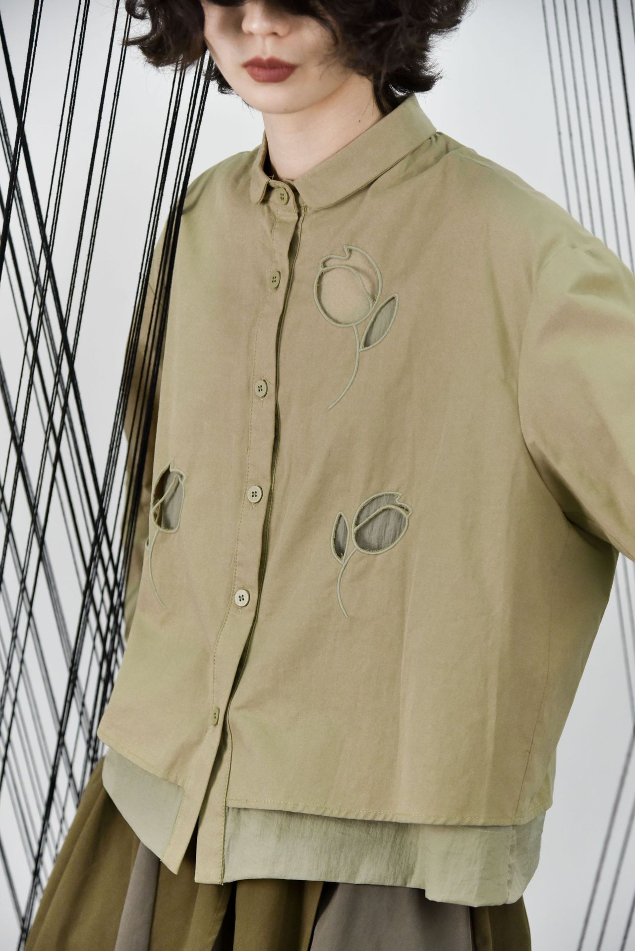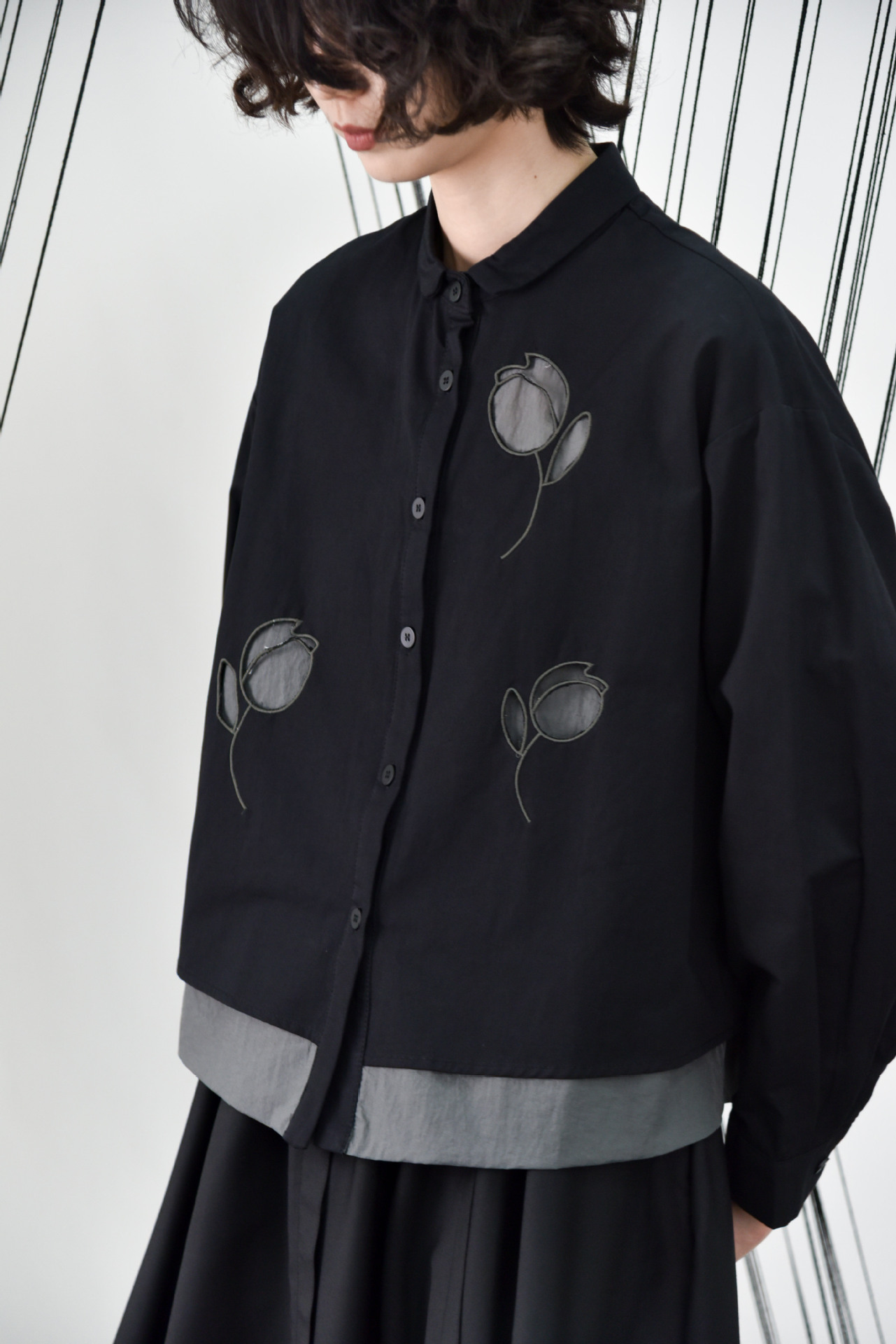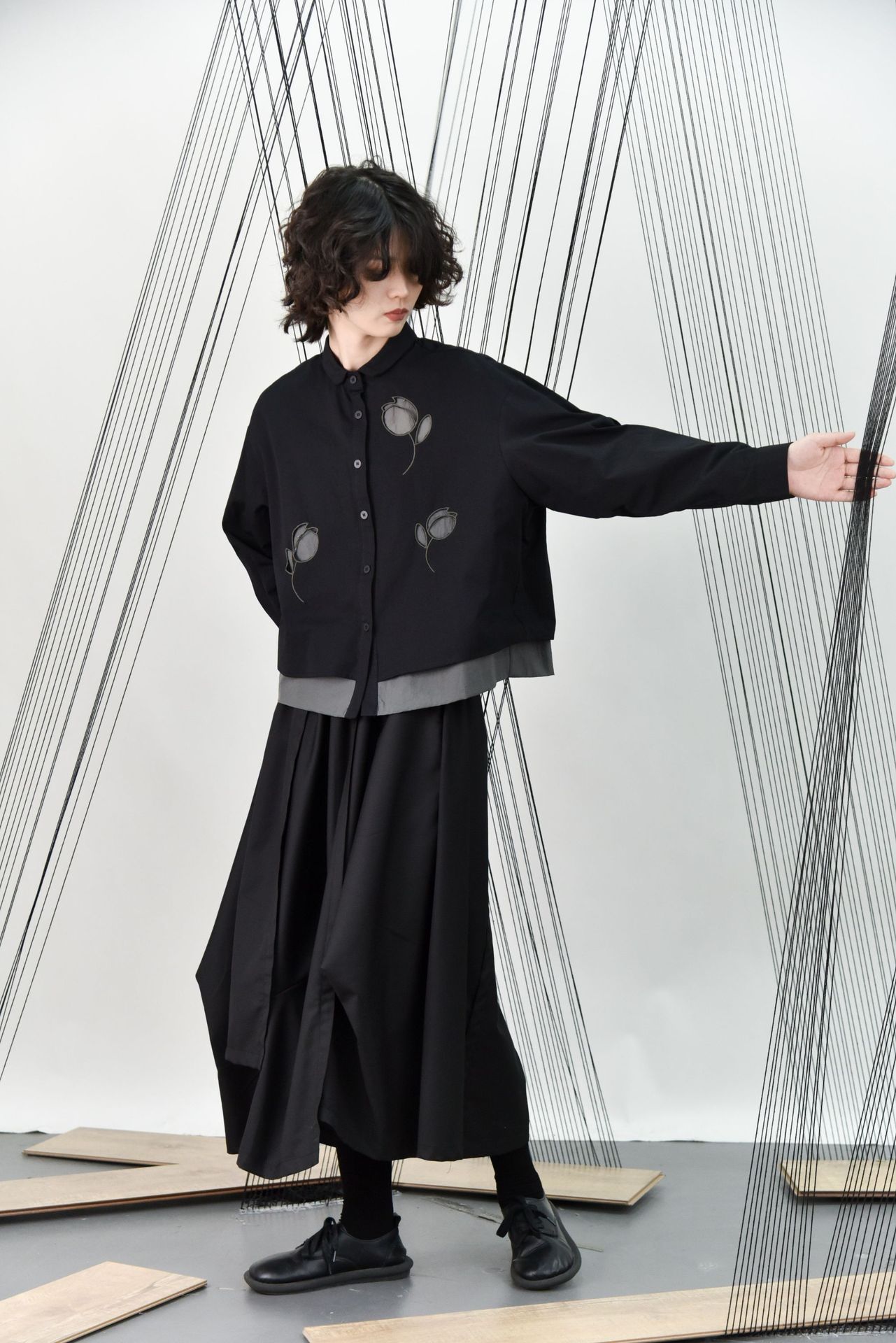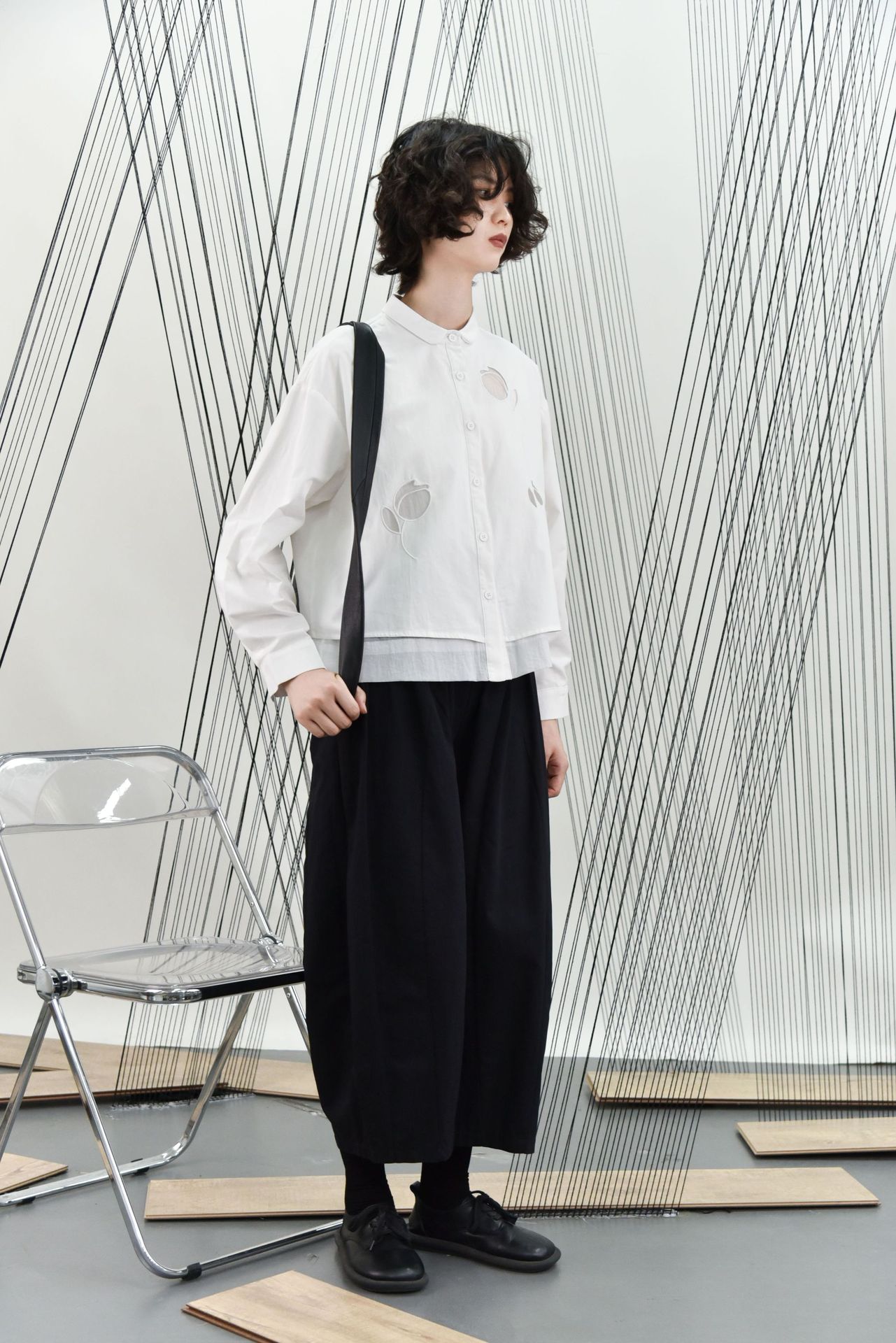 3 과 2 아웃 // 이른 가을 복고풍 더블 중공 튤립 디자인 가을 새로운 옷깃 긴 소매 셔츠