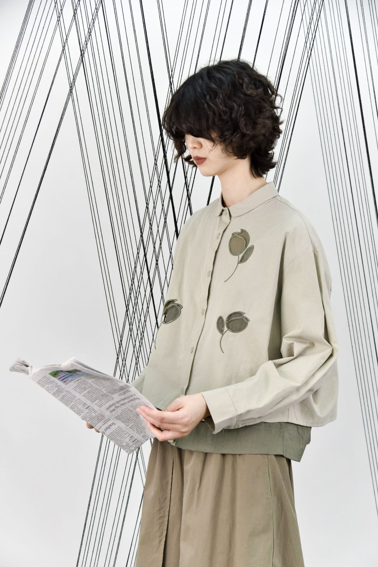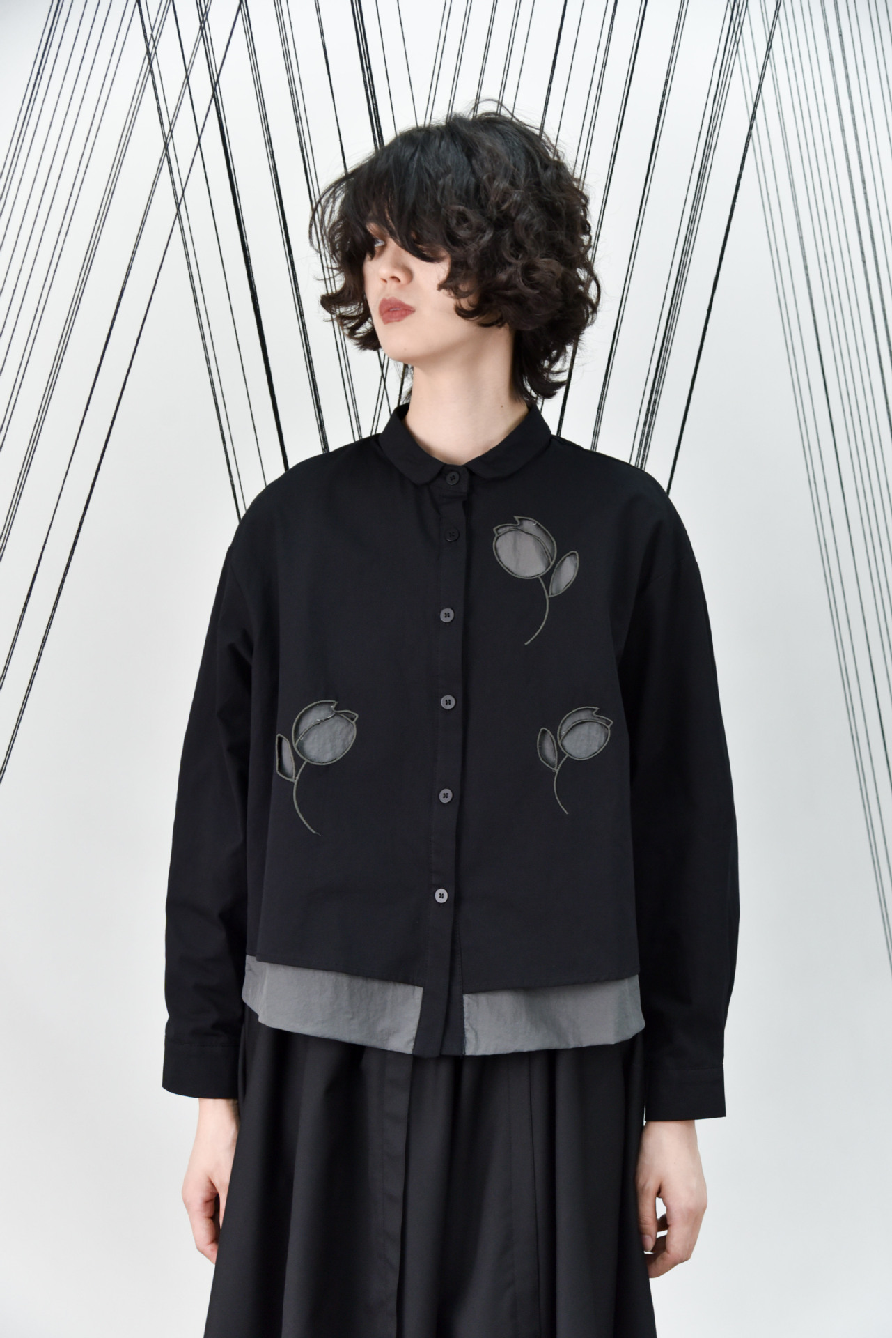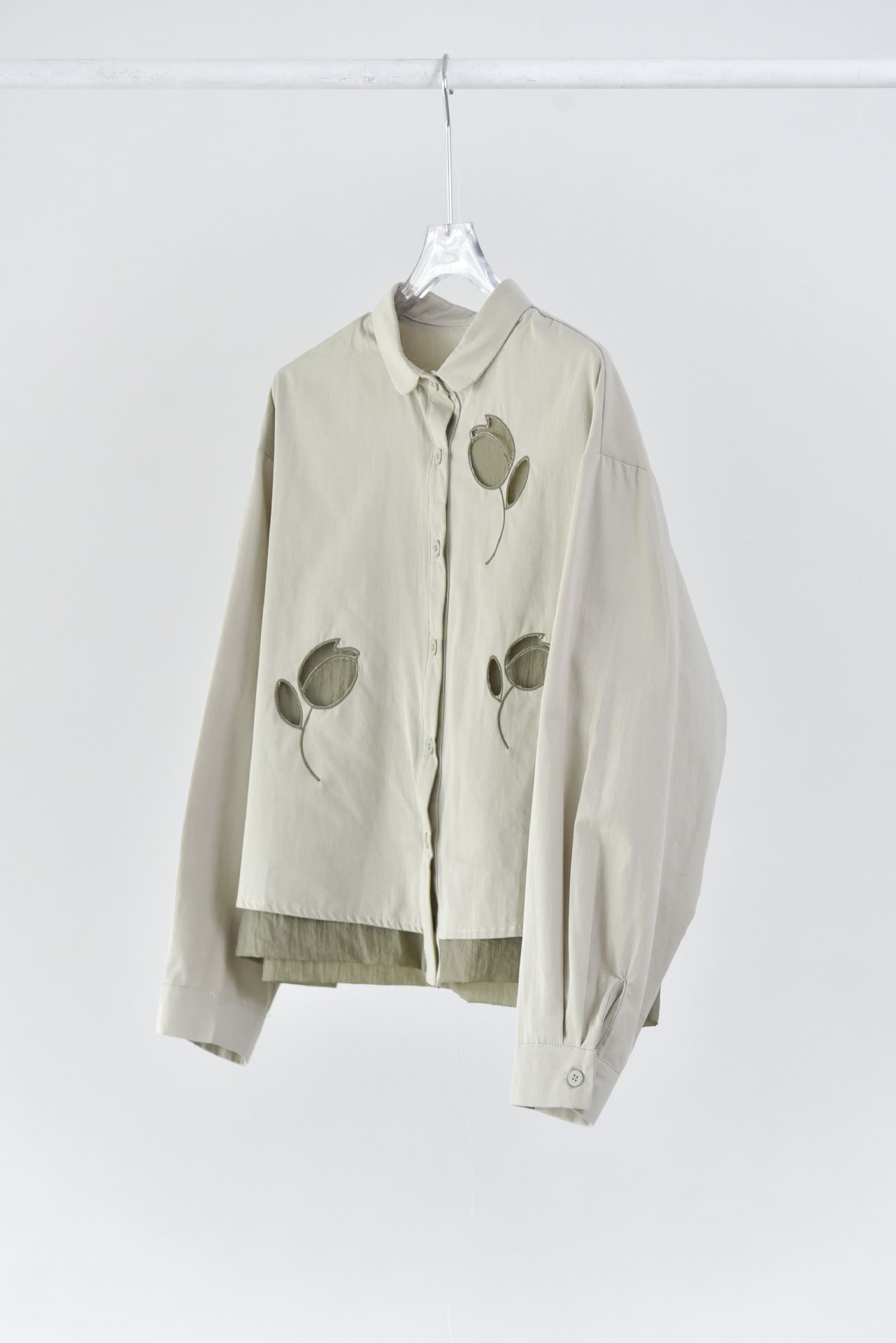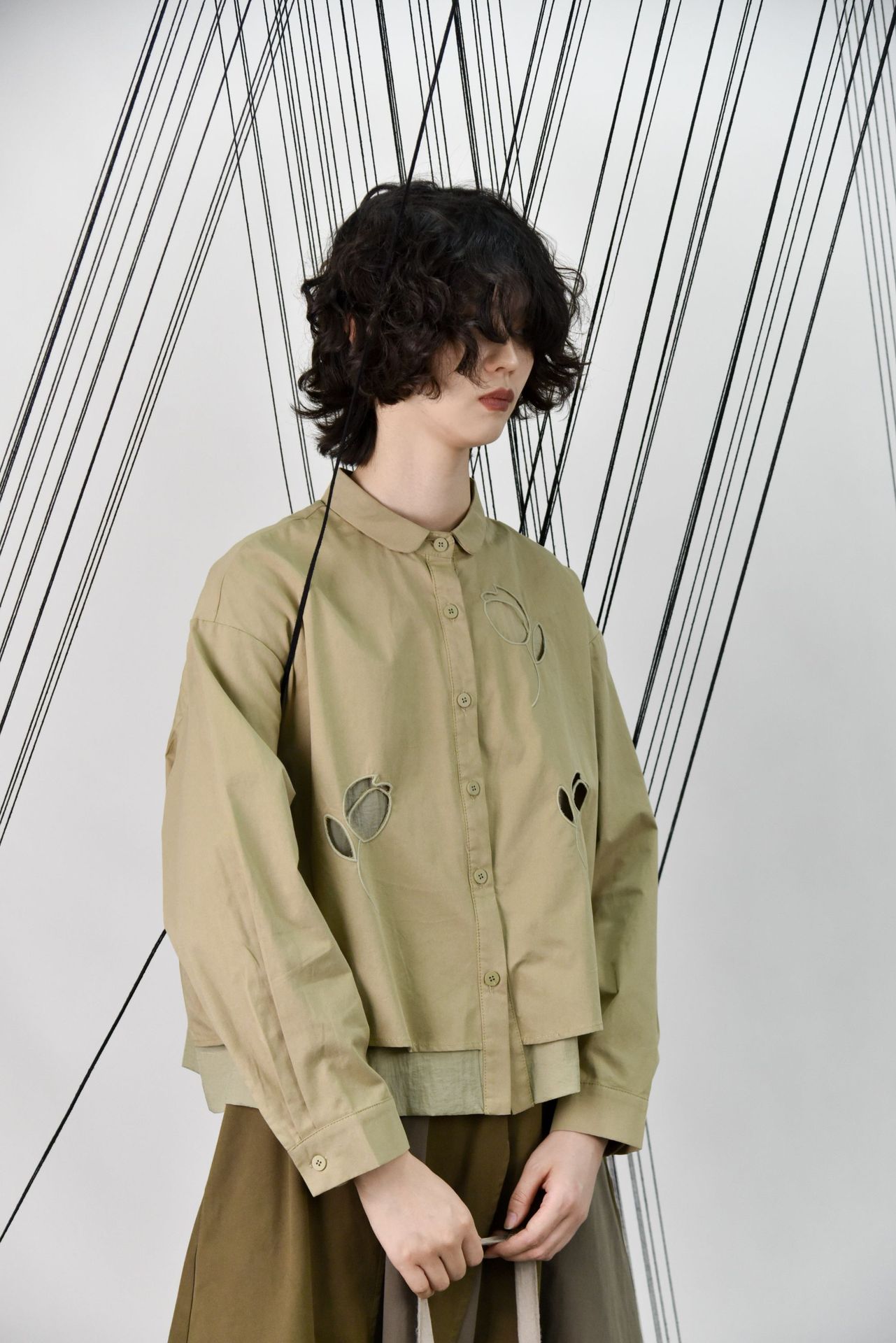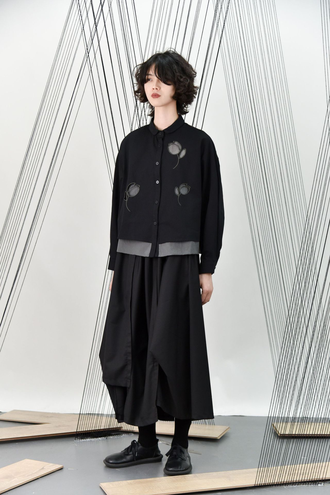 3 과 2 아웃 // 이른 가을 복고풍 더블 중공 튤립 디자인 가을 새로운 옷깃 긴 소매 셔츠