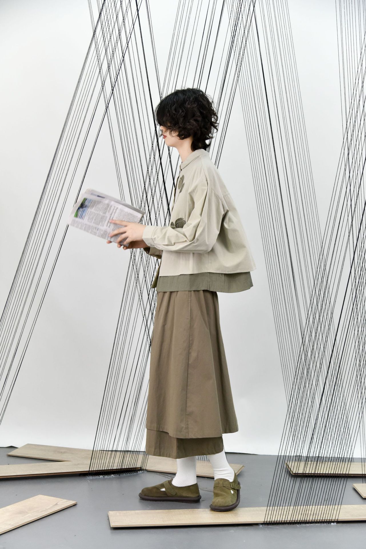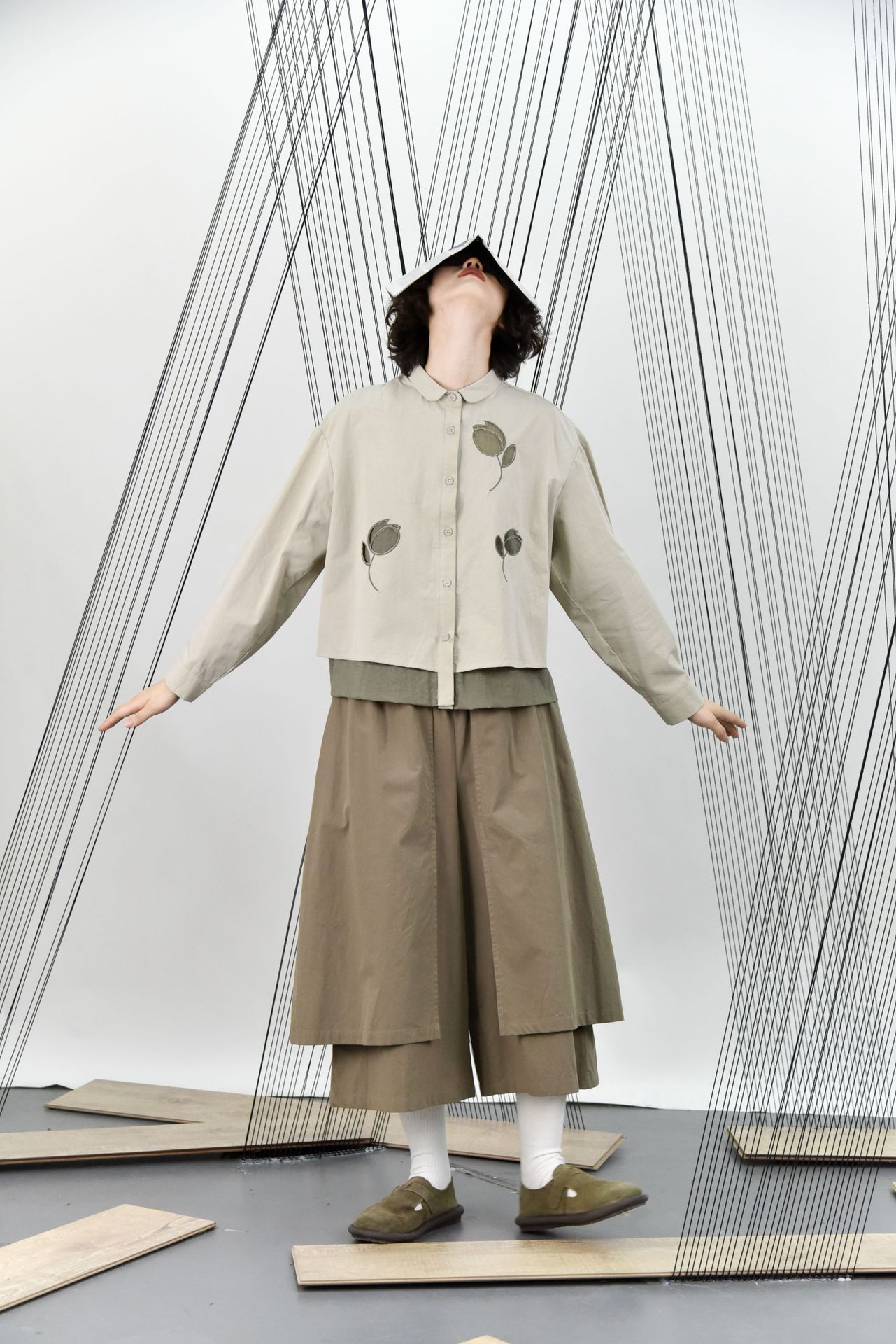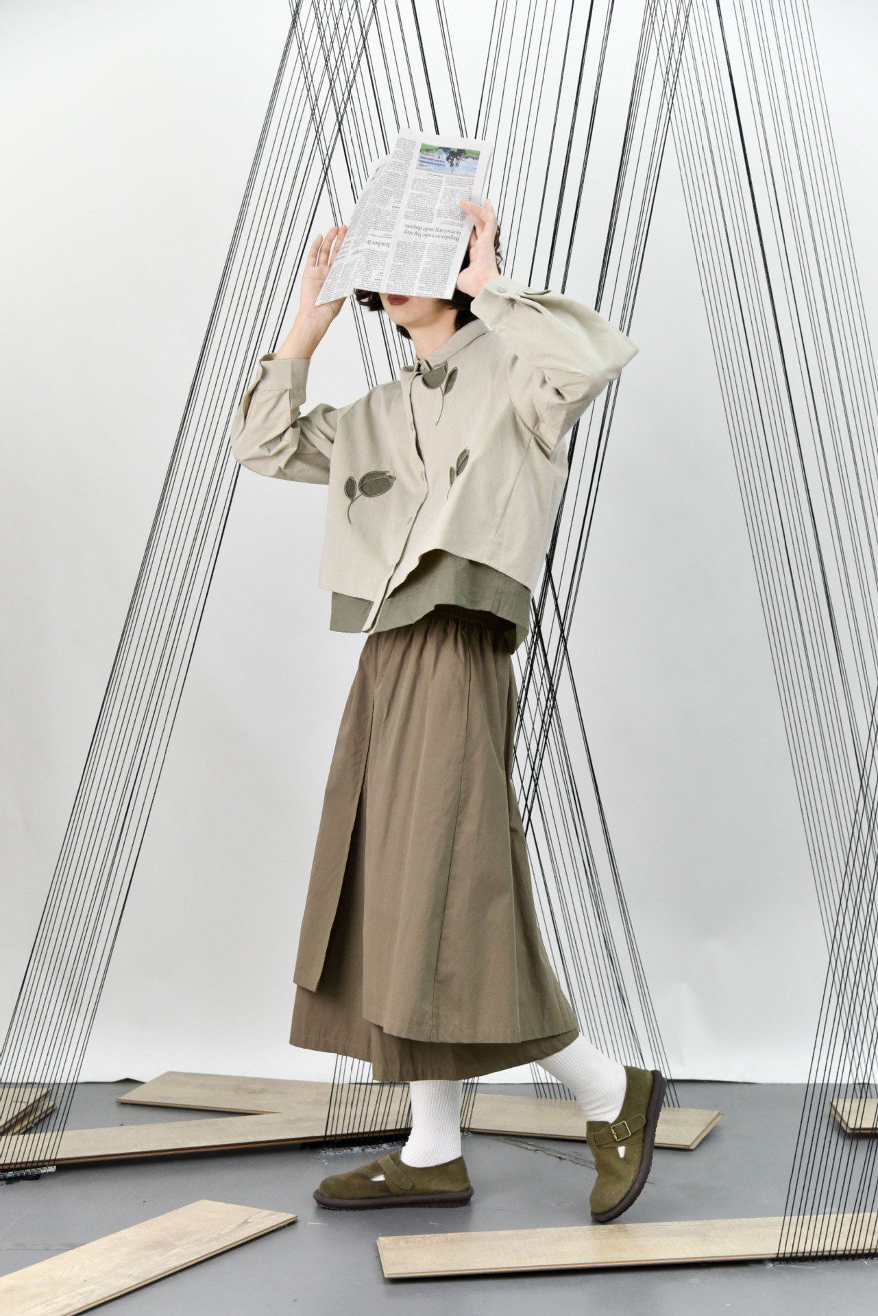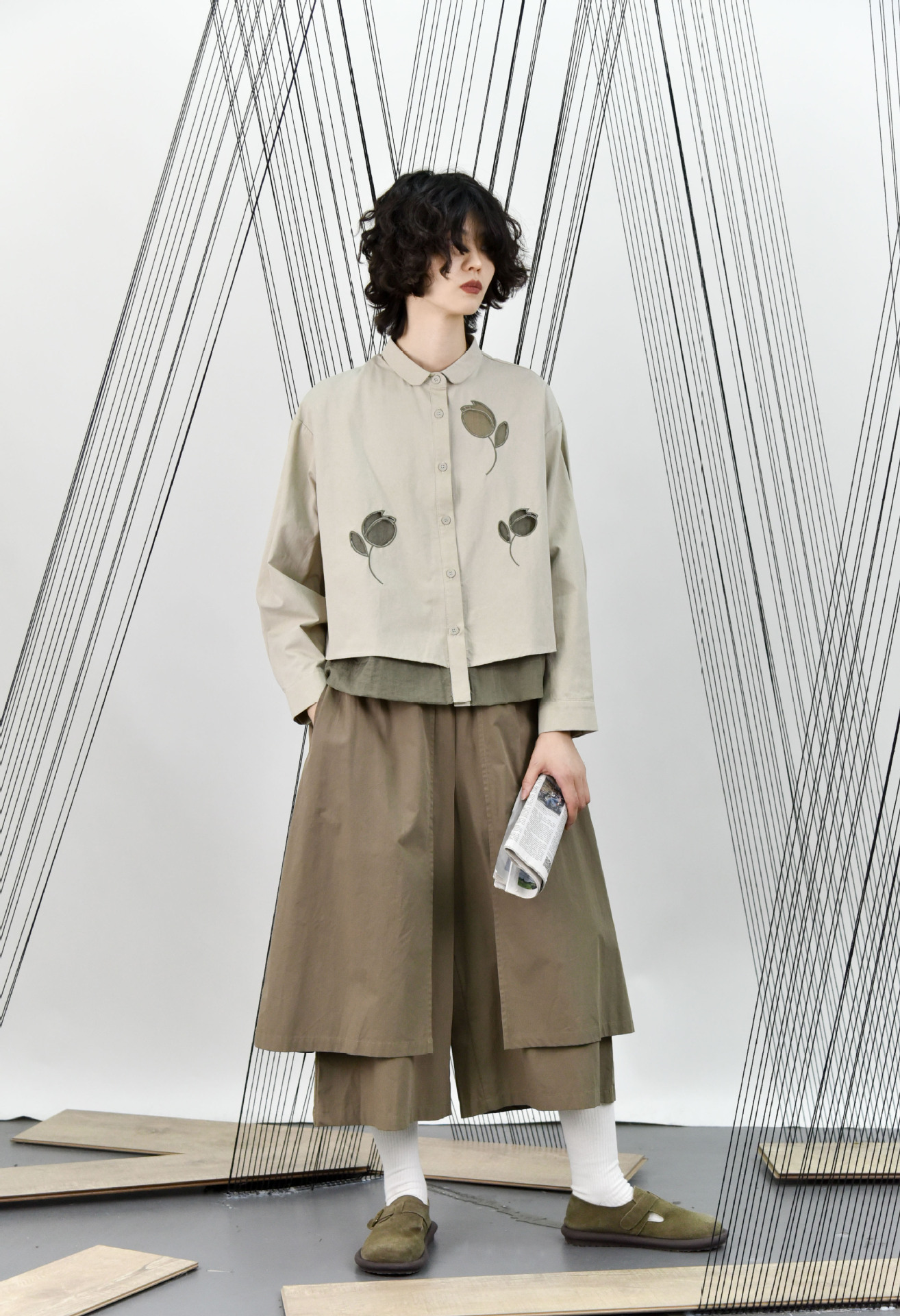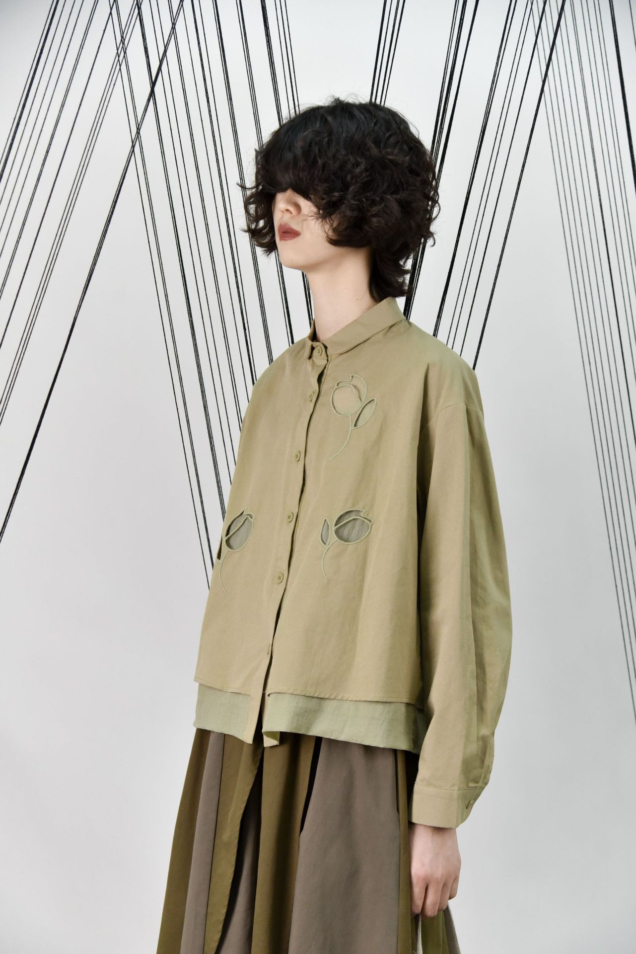 3 과 2 아웃 // 이른 가을 복고풍 더블 중공 튤립 디자인 가을 새로운 옷깃 긴 소매 셔츠