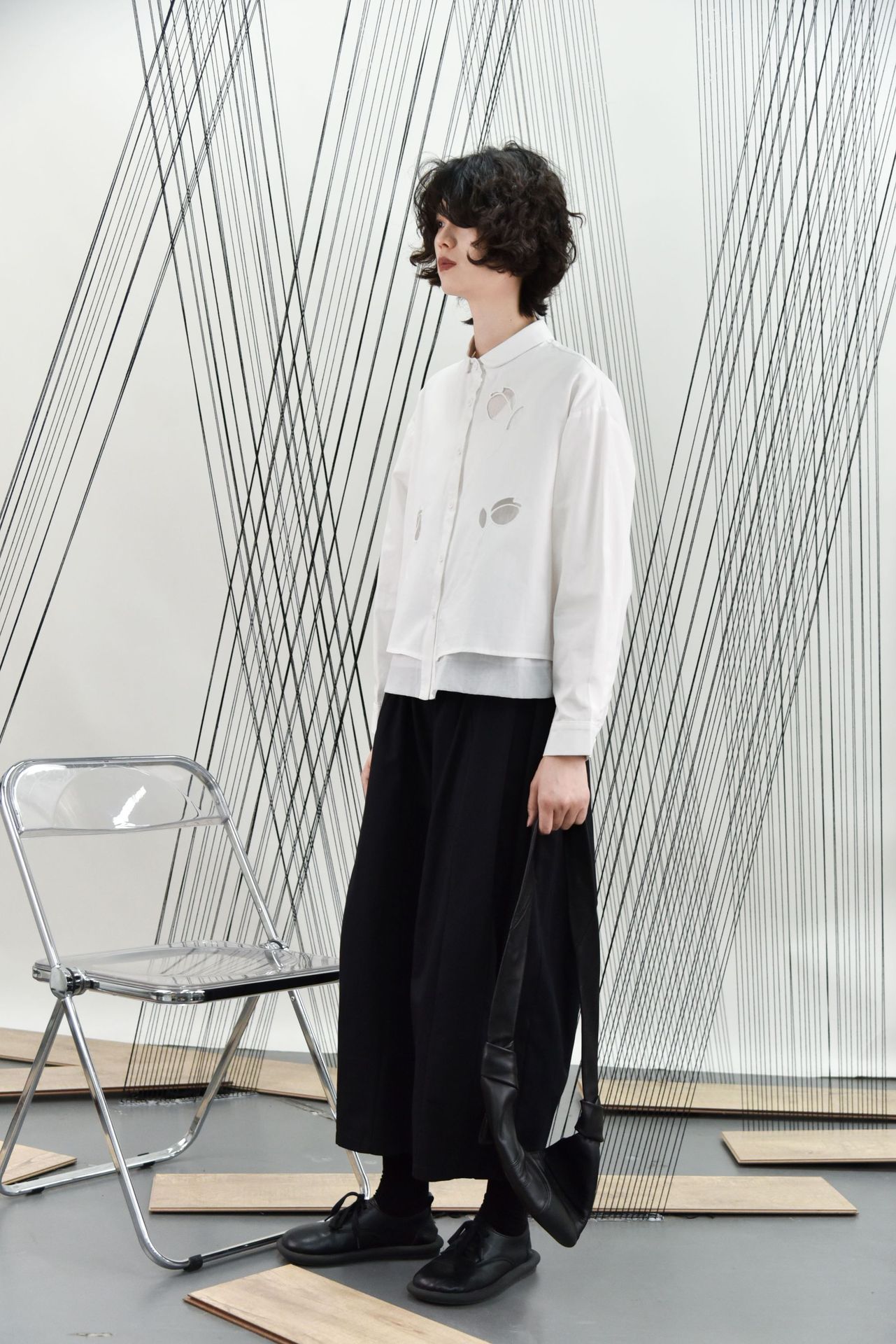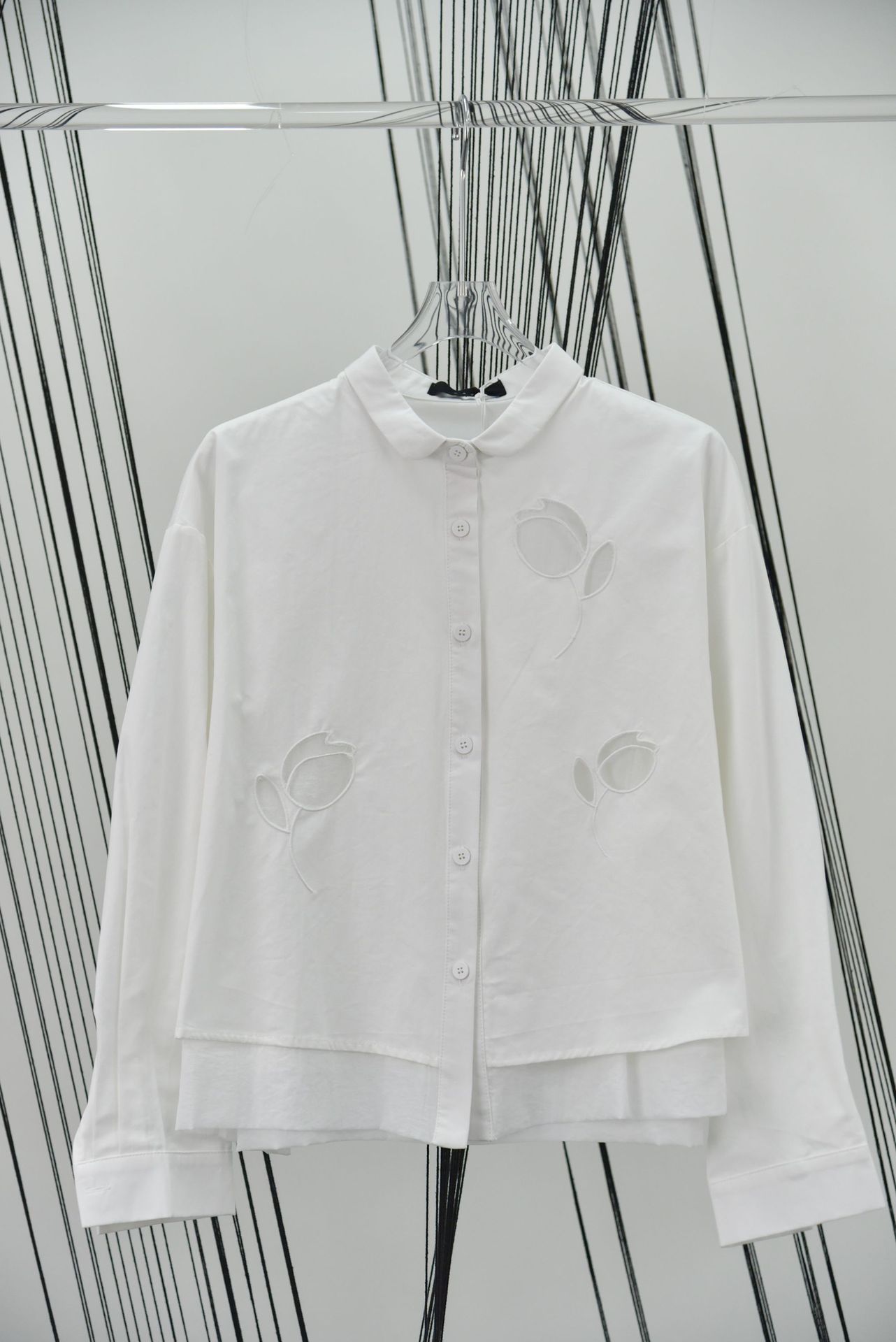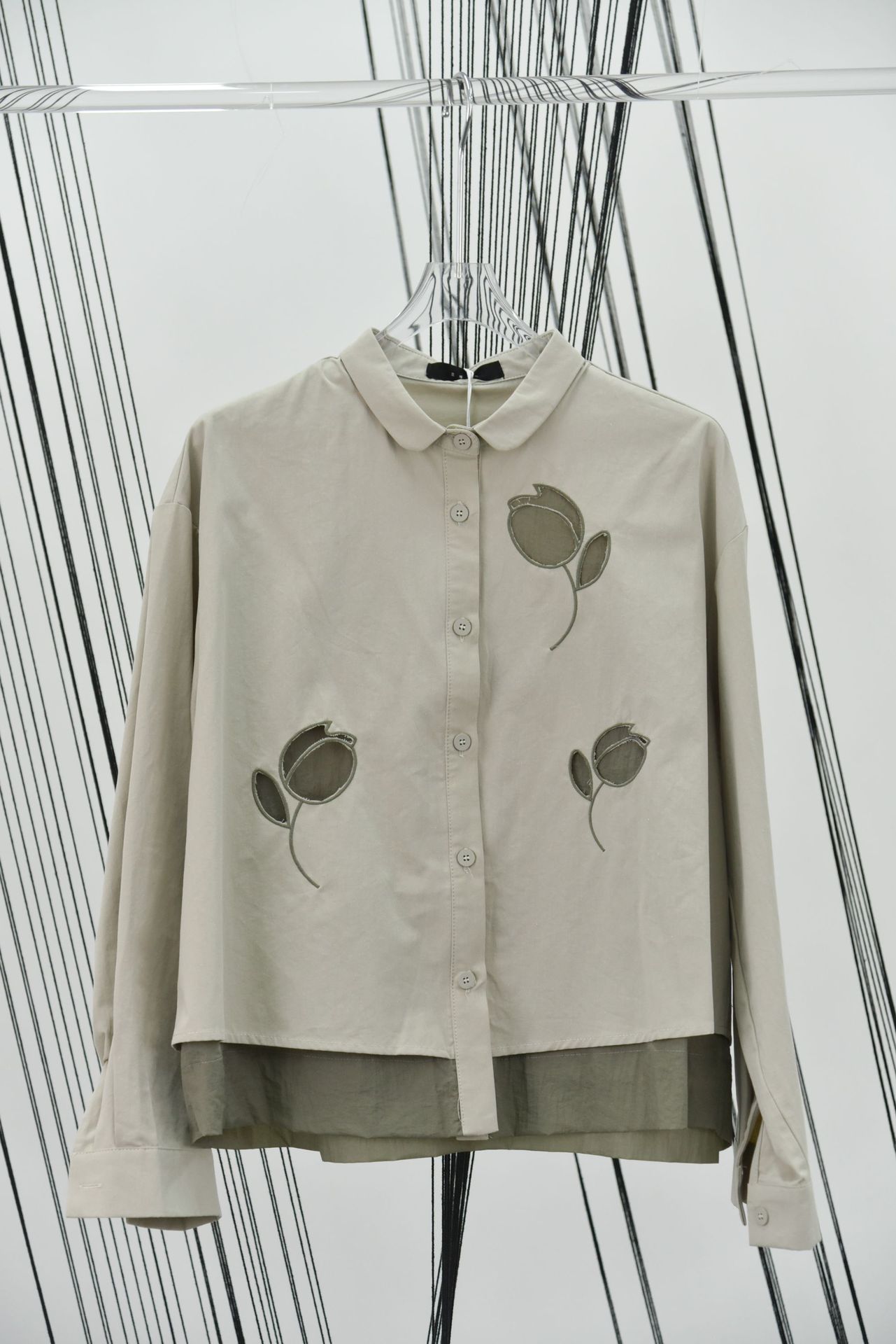 3 과 2 아웃 // 이른 가을 복고풍 더블 중공 튤립 디자인 가을 새로운 옷깃 긴 소매 셔츠스토어 가기