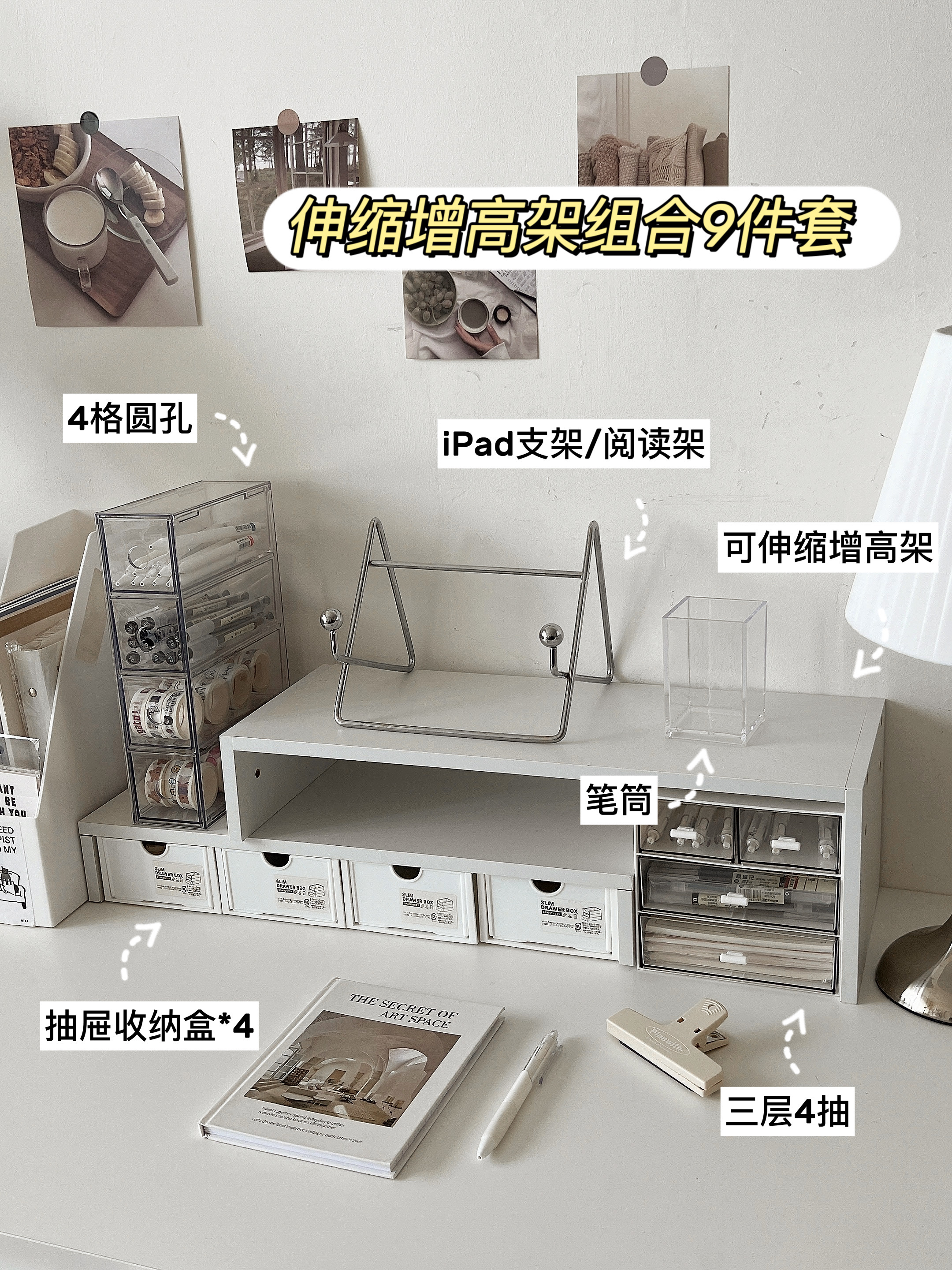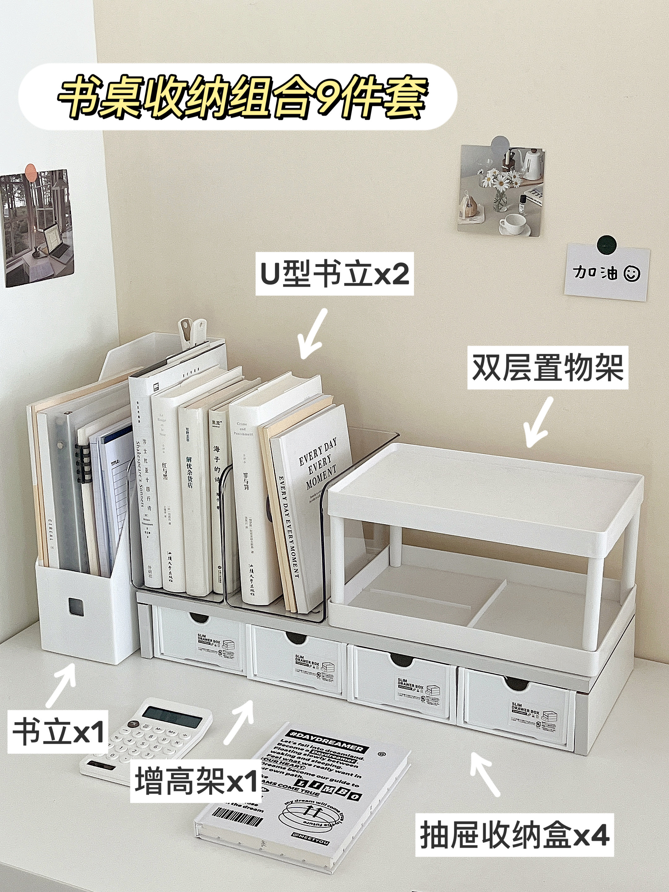 • 단층 상승 랙 * 1 + 서랍 보관함 * 4
