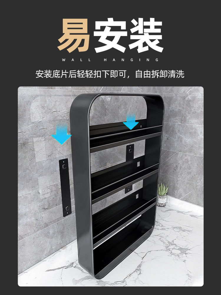 주방 조미료 및 욕실용품 수납 선반, 벽걸이형, 무타공, 벽걸이 다층형 가정용 조미료 보관 걸이 선반