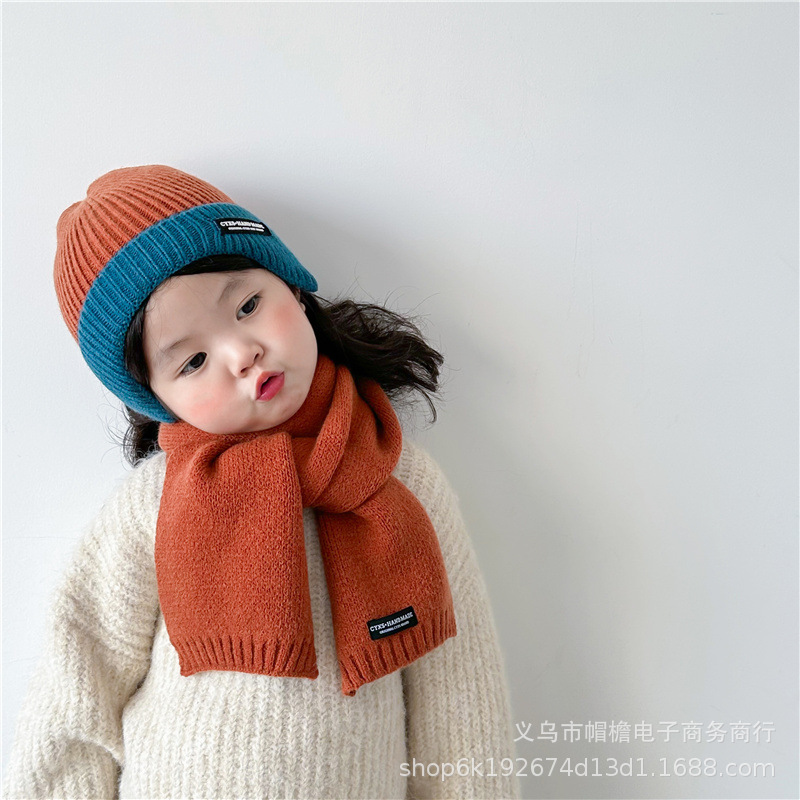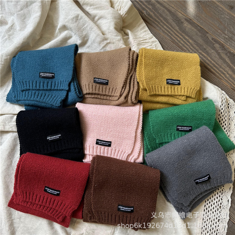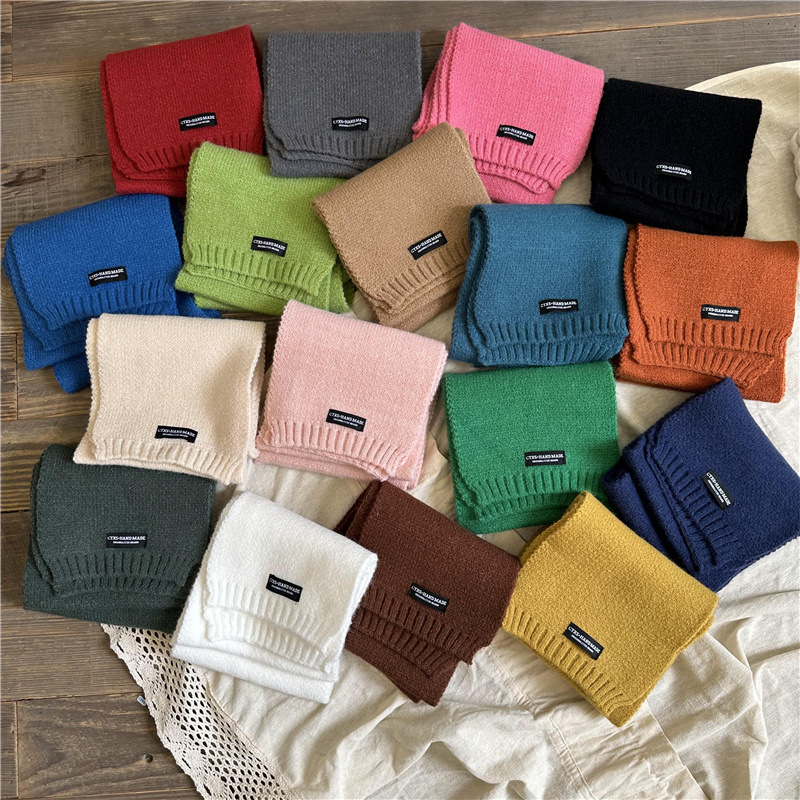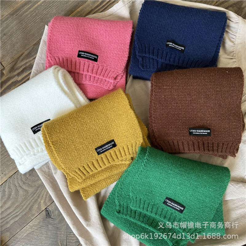 유행 모든 일치 어린이 따뜻한 니트 스카프 작은 블랙 라벨 소년과 소녀를위한 간단한 서양 스타일 컬러 울 스카프스토어 가기