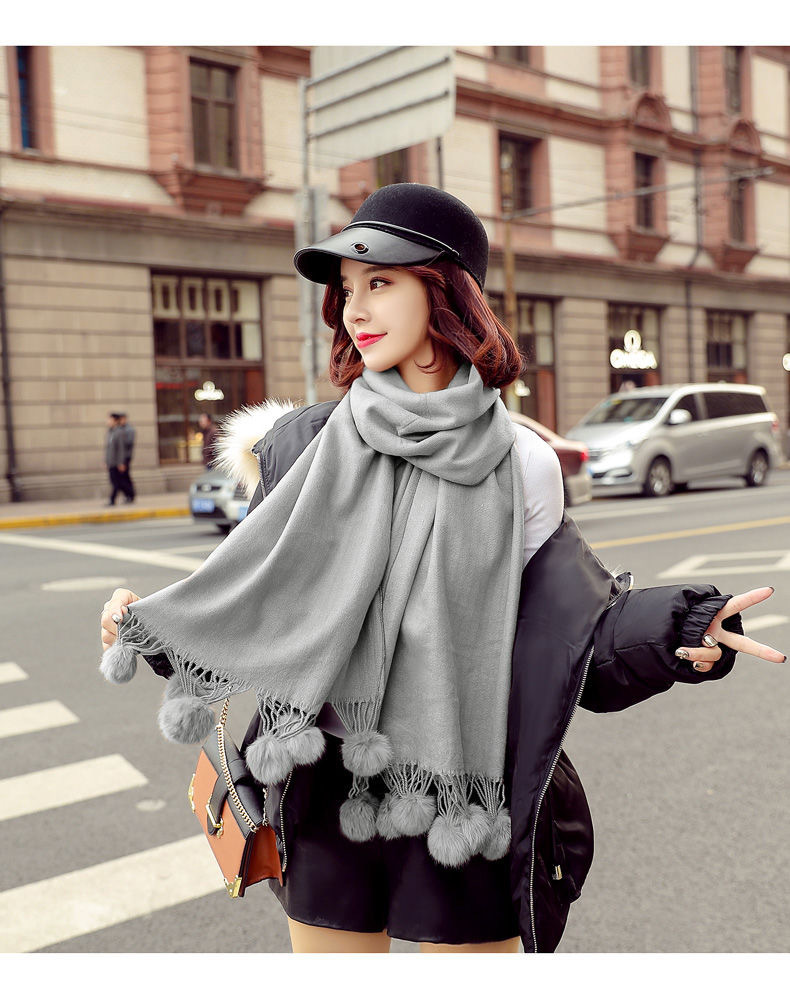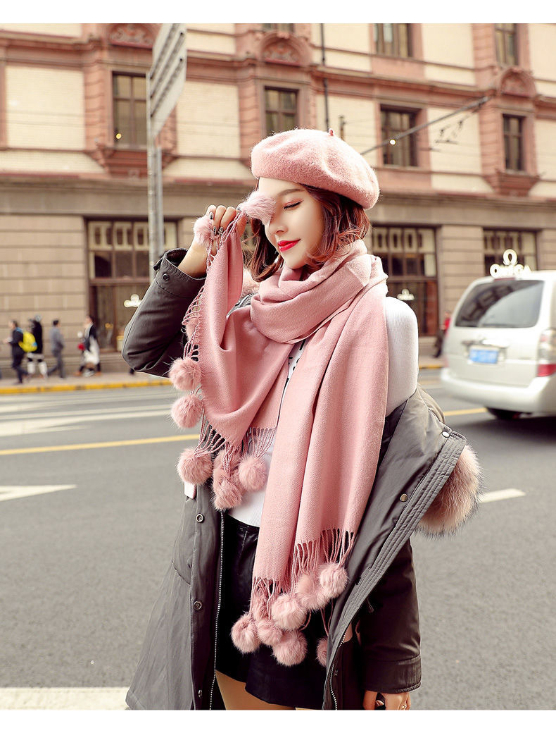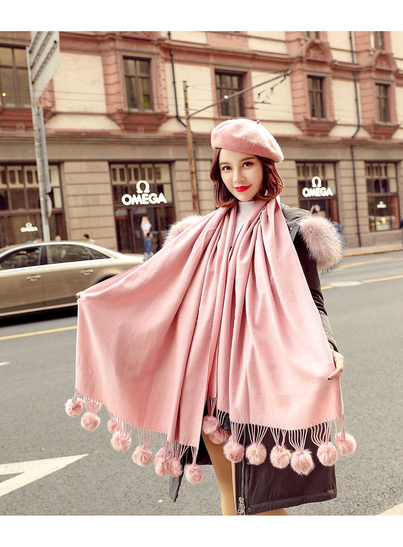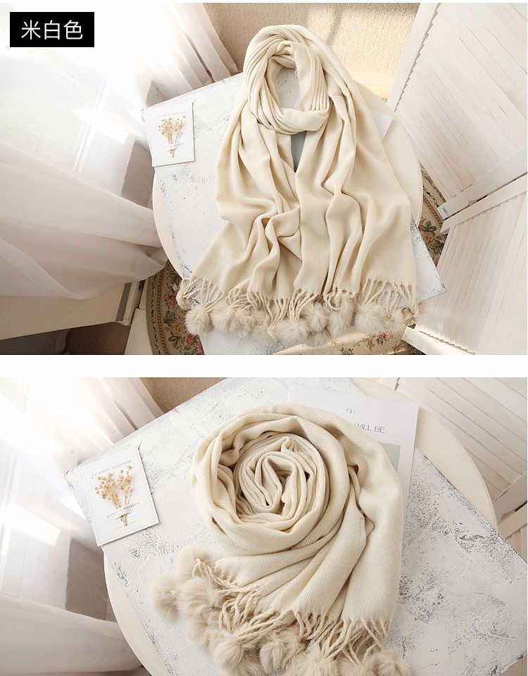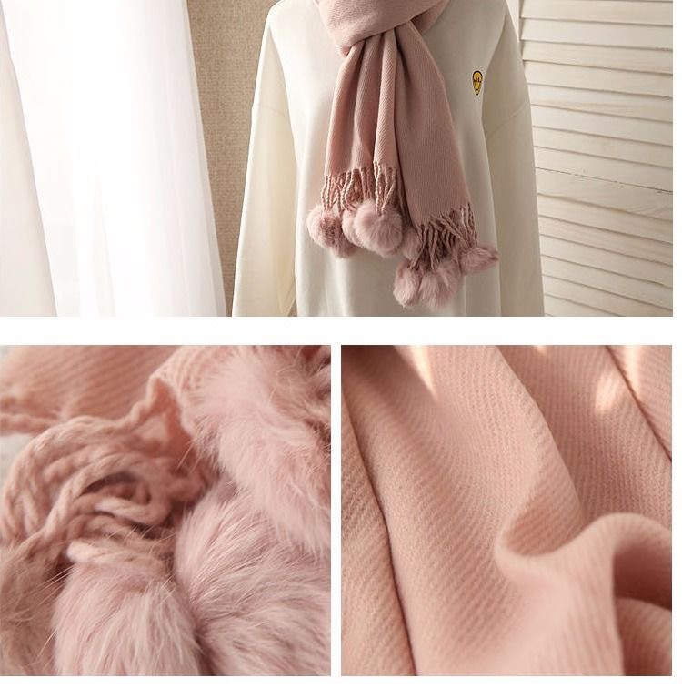 스카프 여성용 겨울 한국 스타일 모든 경기 학생의 새로운 단색 이중 사용 두꺼운 토끼 헤어 볼 따뜻한 목 긴 숄