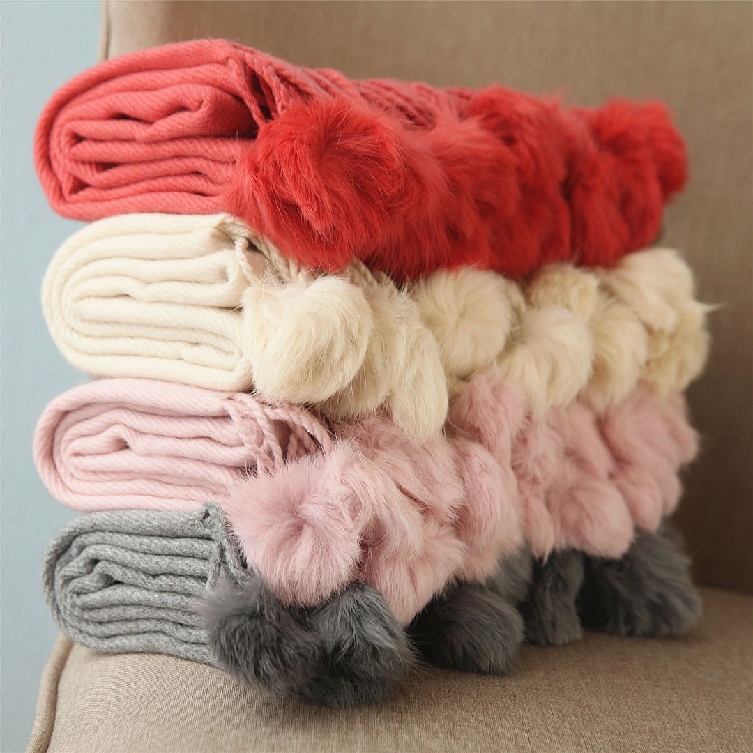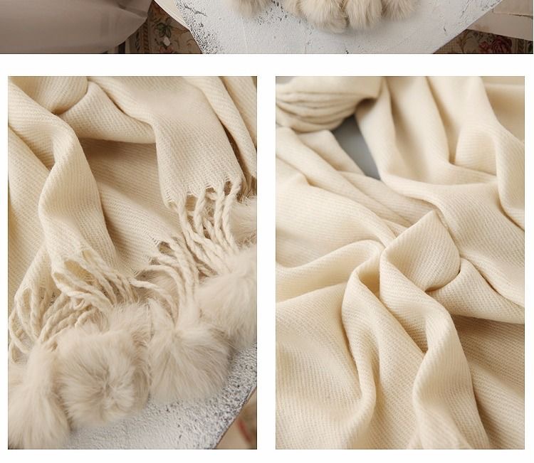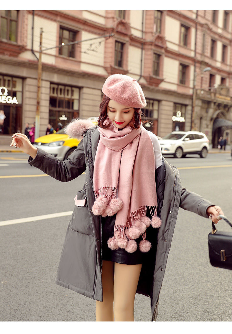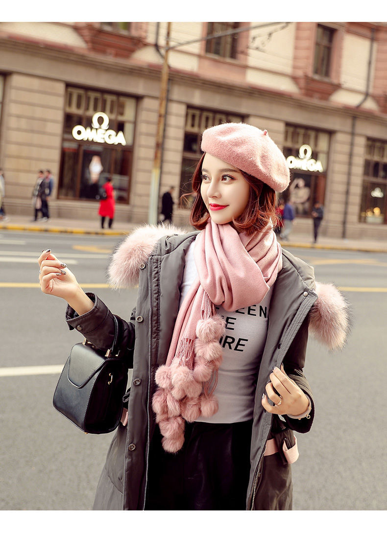 스카프 여성용 겨울 한국 스타일 모든 경기 학생의 새로운 단색 이중 사용 두꺼운 토끼 헤어 볼 따뜻한 목 긴 숄