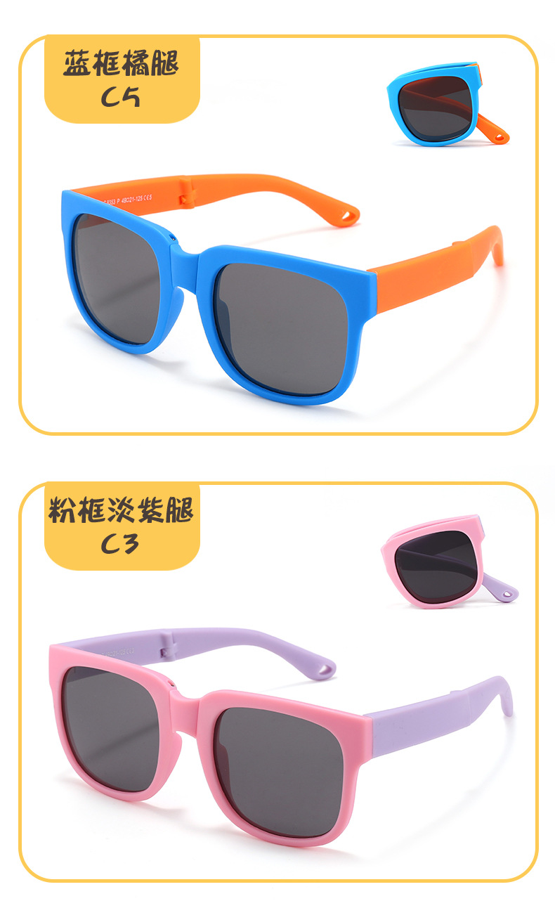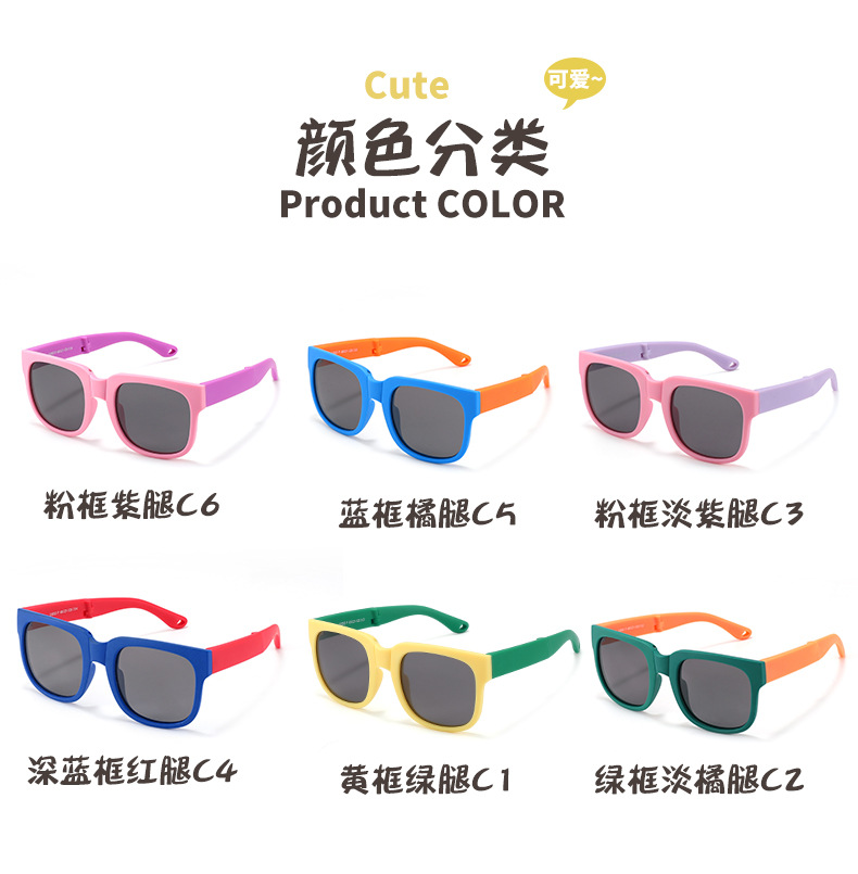 새로운 어린이 접이식 선글라스 소년과 소녀를위한 개인화 된 야외 실리콘 자외선 차단 선글라스 편광 선글라스 8353