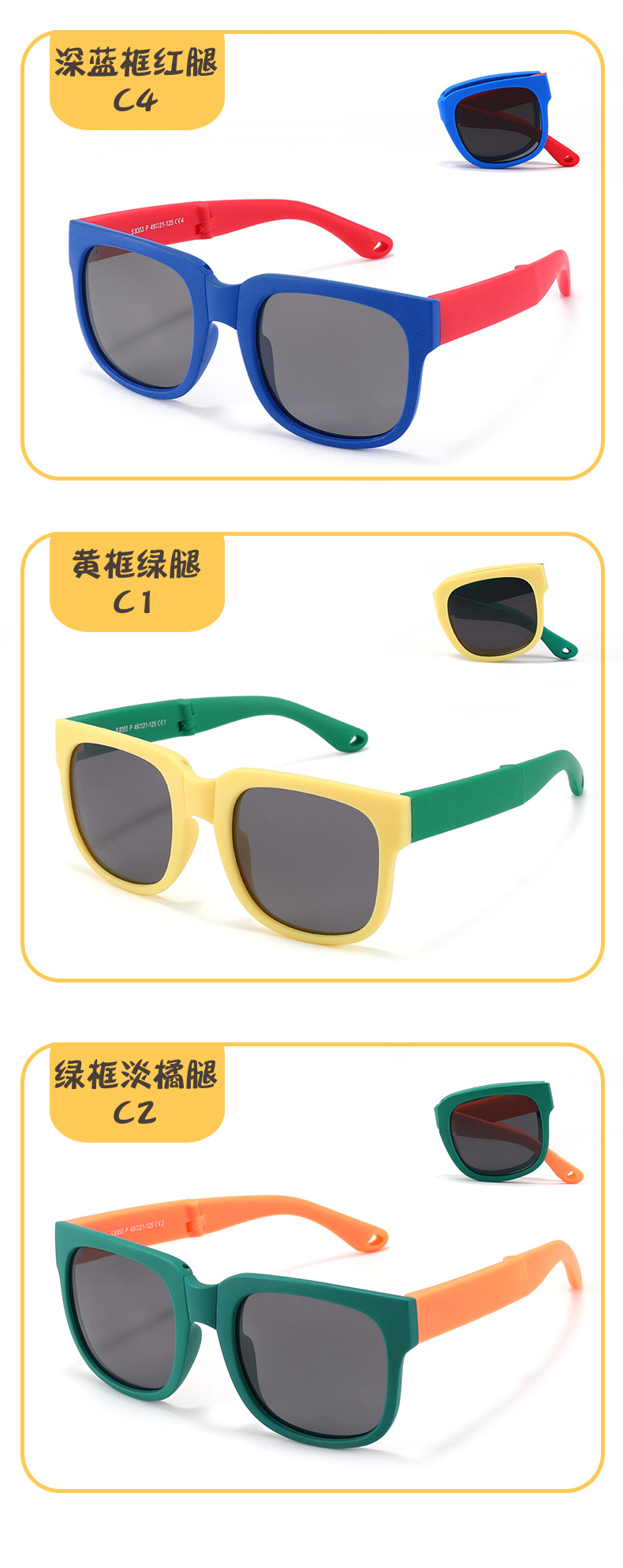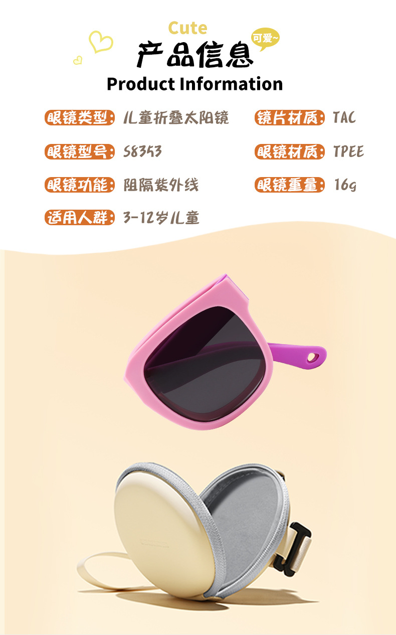 새로운 어린이 접이식 선글라스 소년과 소녀를위한 개인화 된 야외 실리콘 자외선 차단 선글라스 편광 선글라스 8353스토어 가기