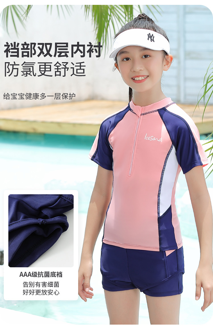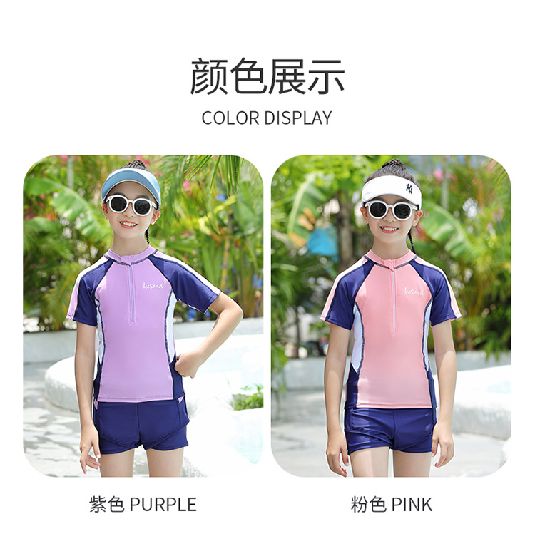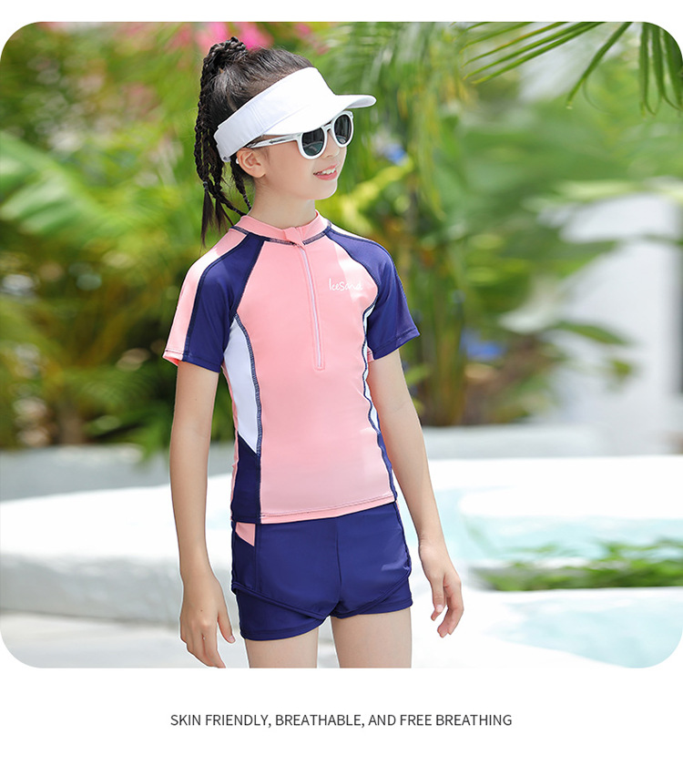 아동용 수영복, 여아용 자외선 차단 수영복, 중대형 아동용 스플릿 복서 브리프, 보수적인 학생 여아 수영복스토어 가기