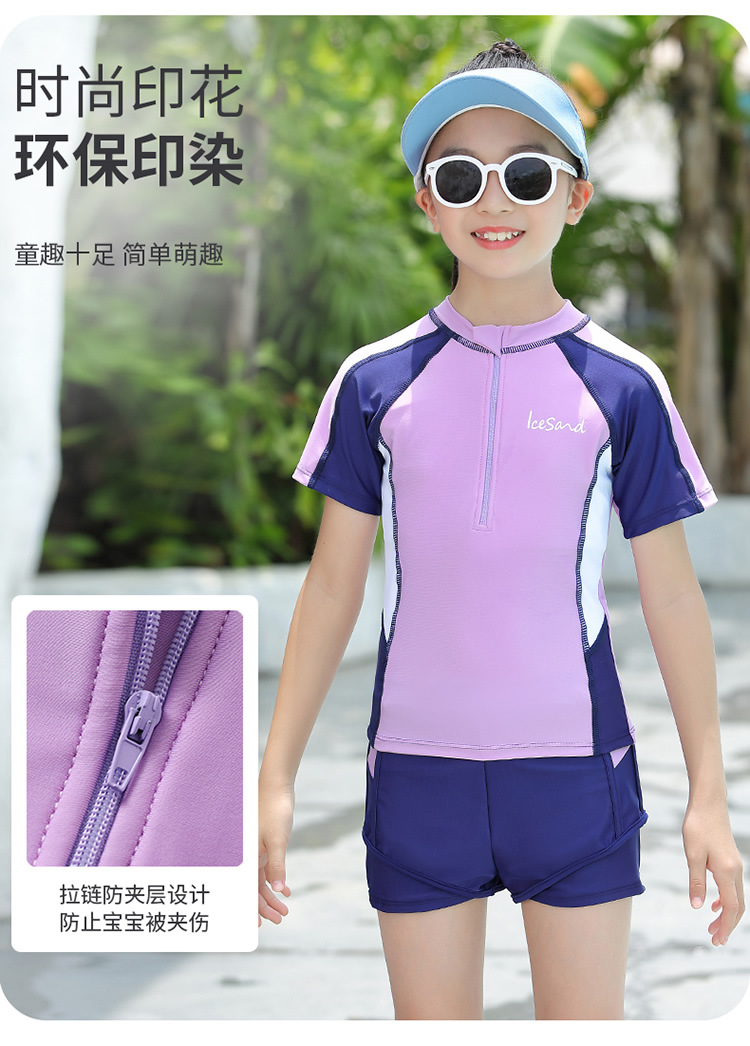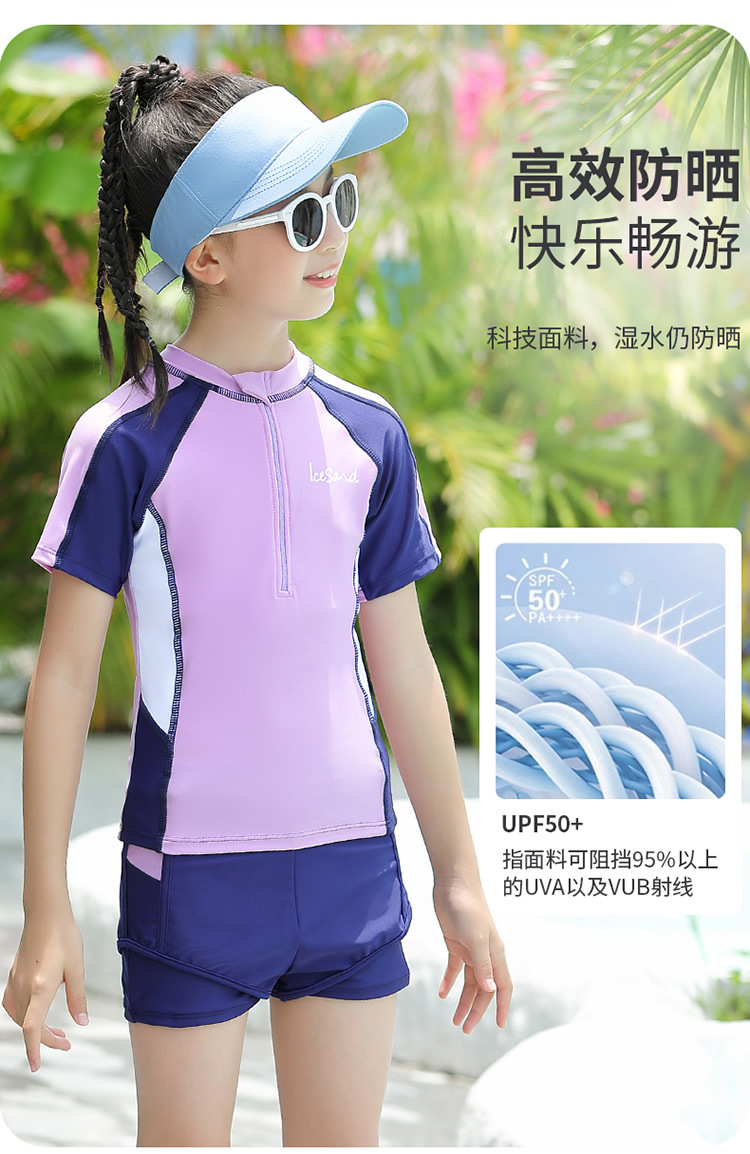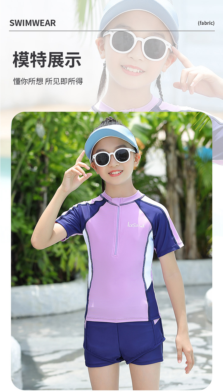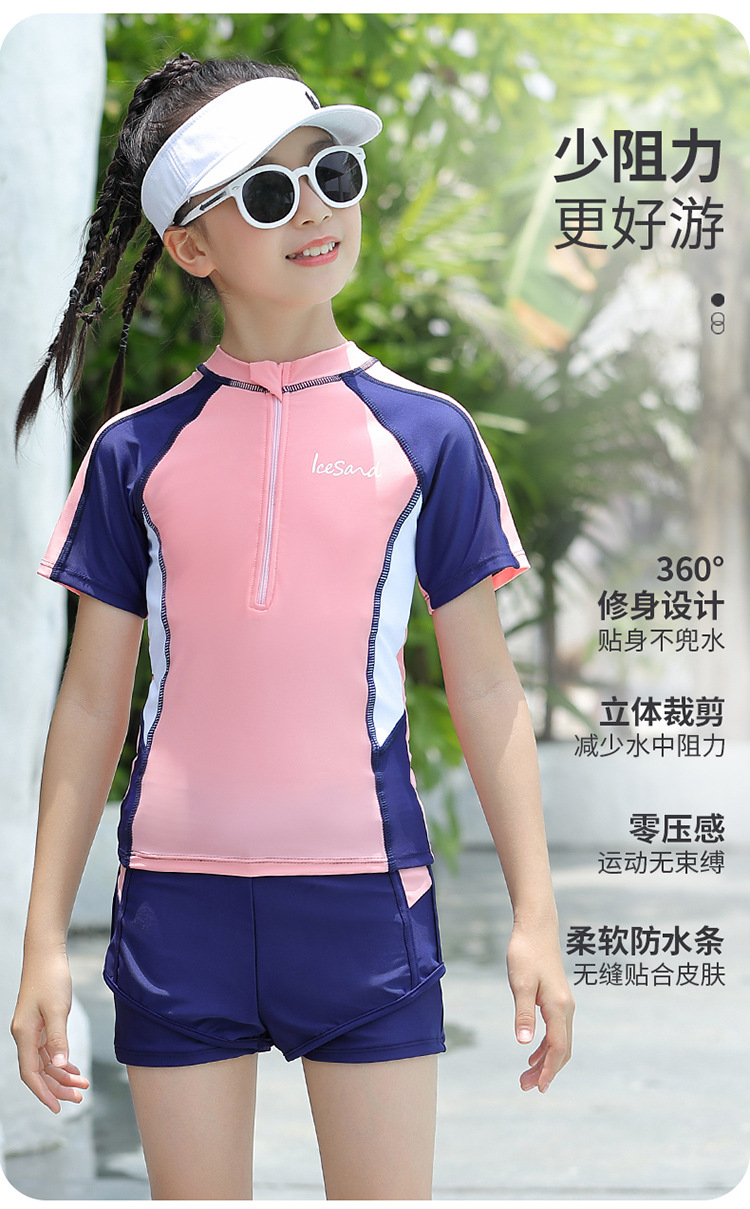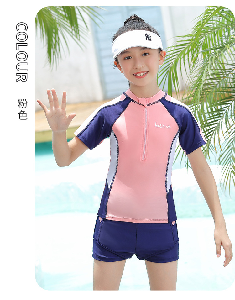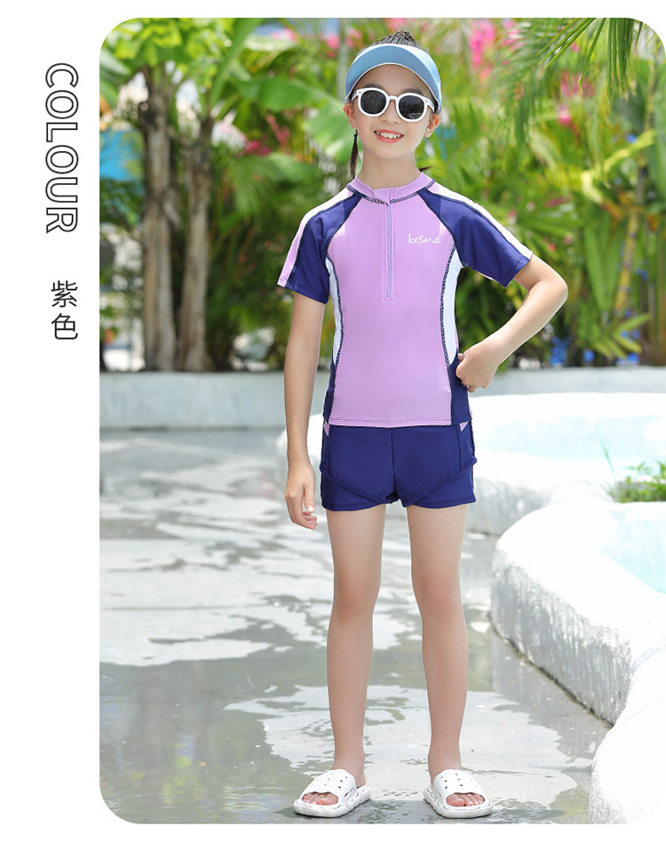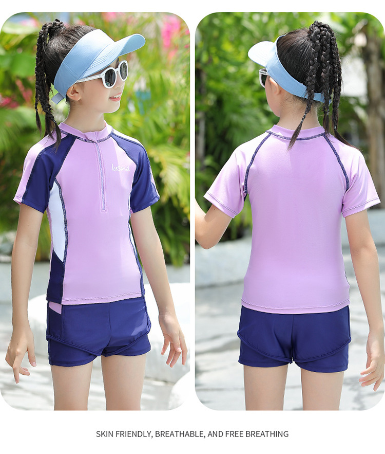 아동용 수영복, 여아용 자외선 차단 수영복, 중대형 아동용 스플릿 복서 브리프, 보수적인 학생 여아 수영복