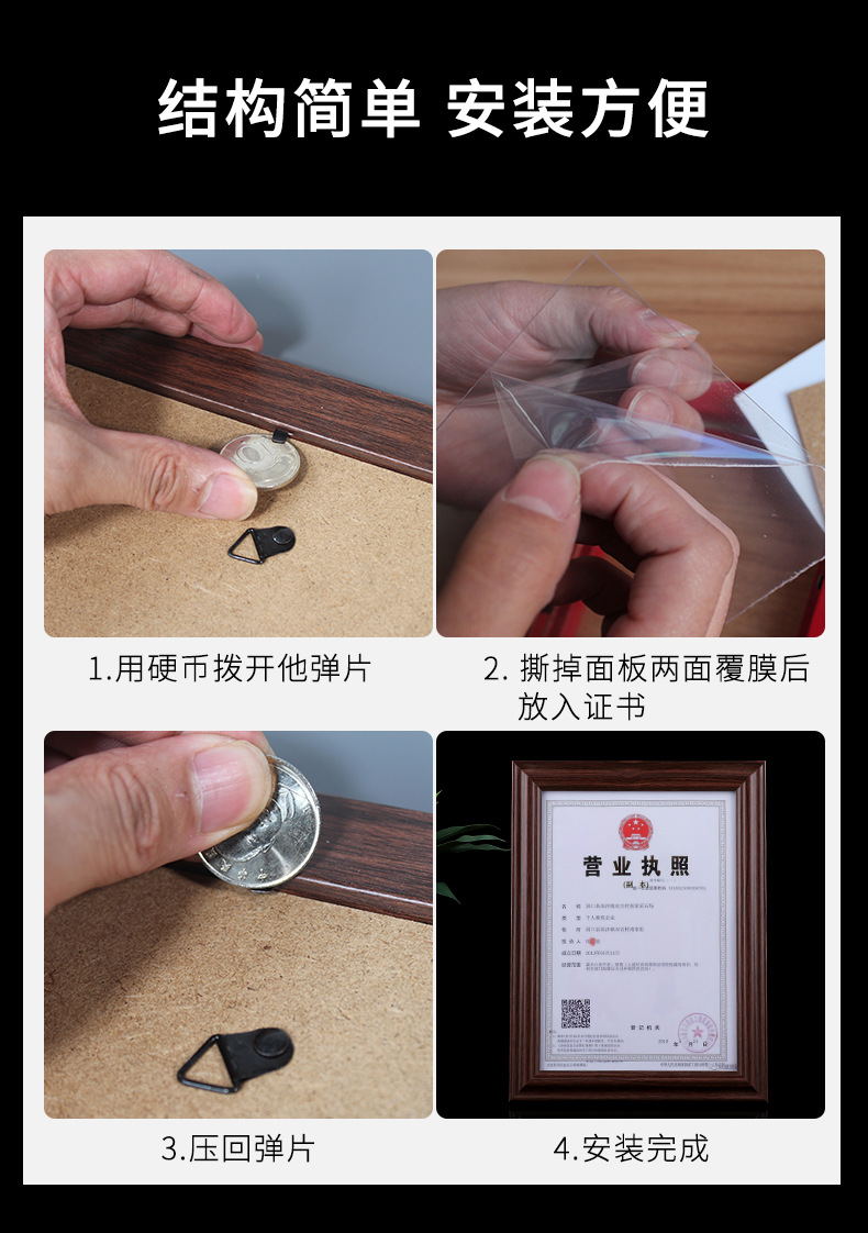 A4 목조 인증서 프레임 간단한 a3 비즈니스 라이센스 프레임 서예 및 그림 서예 8K 프레임 a5 인증서 사진 프레임 도매스토어 가기