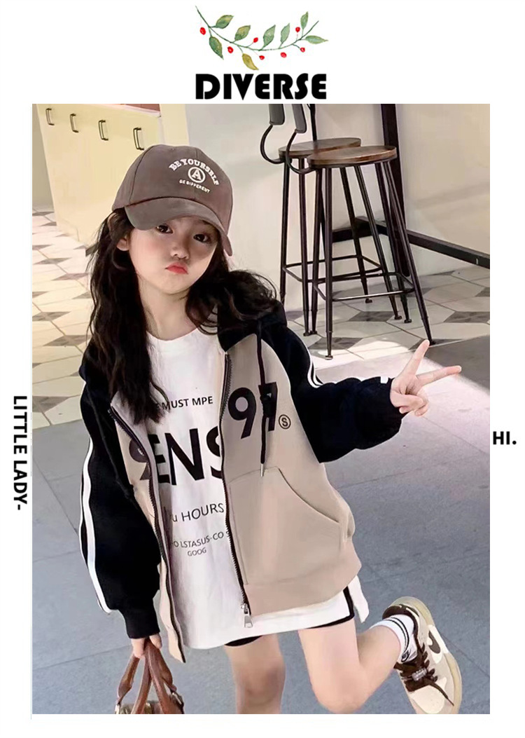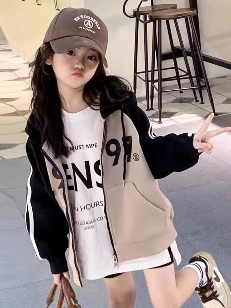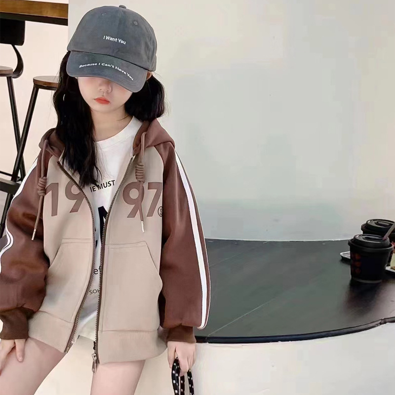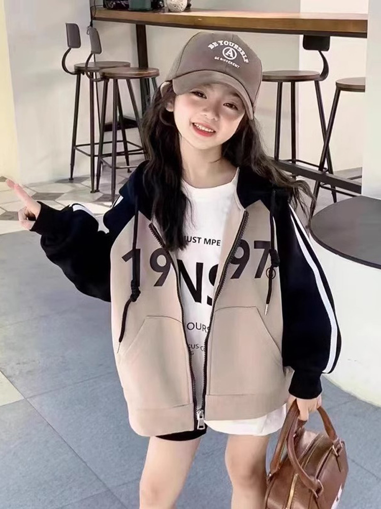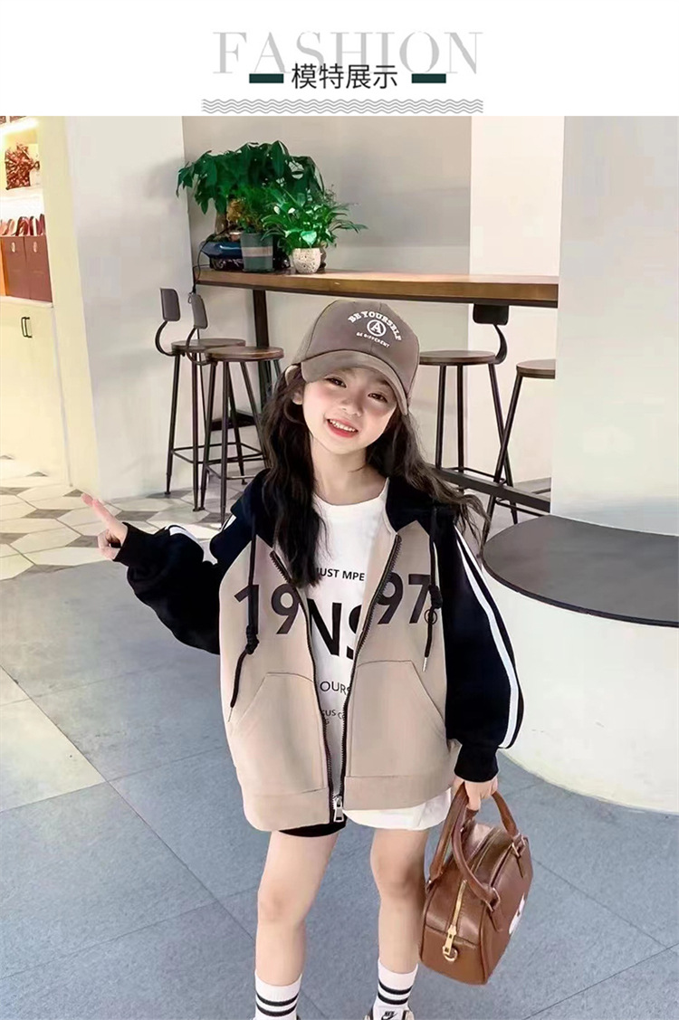 여아 코트 2023 새로운 가을 옷 서양 스타일 어린이 유행 스포츠 봄과 가을 스웨터 튀김 거리 인터넷 연예인 중학교 어린이스토어 가기