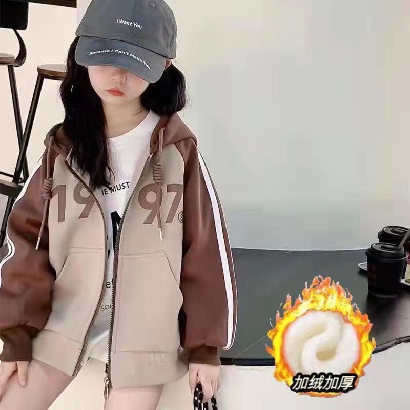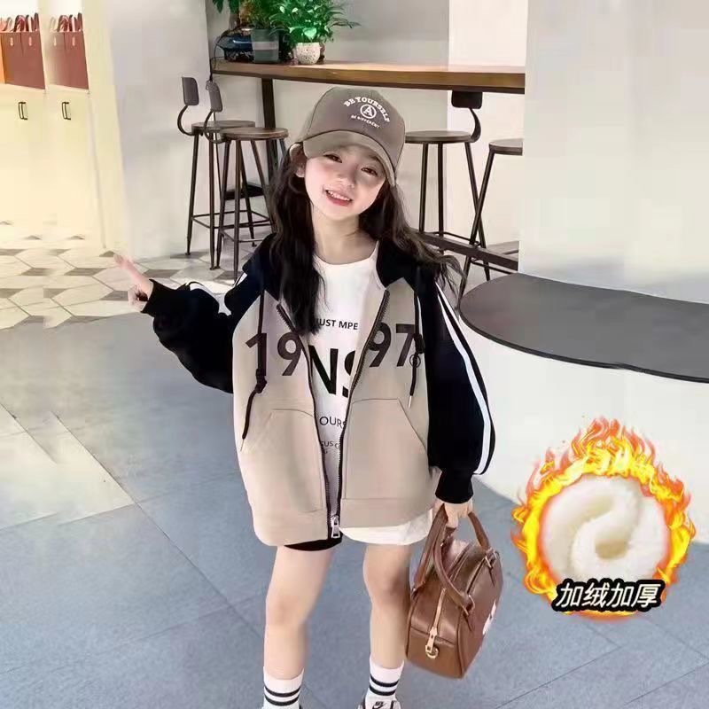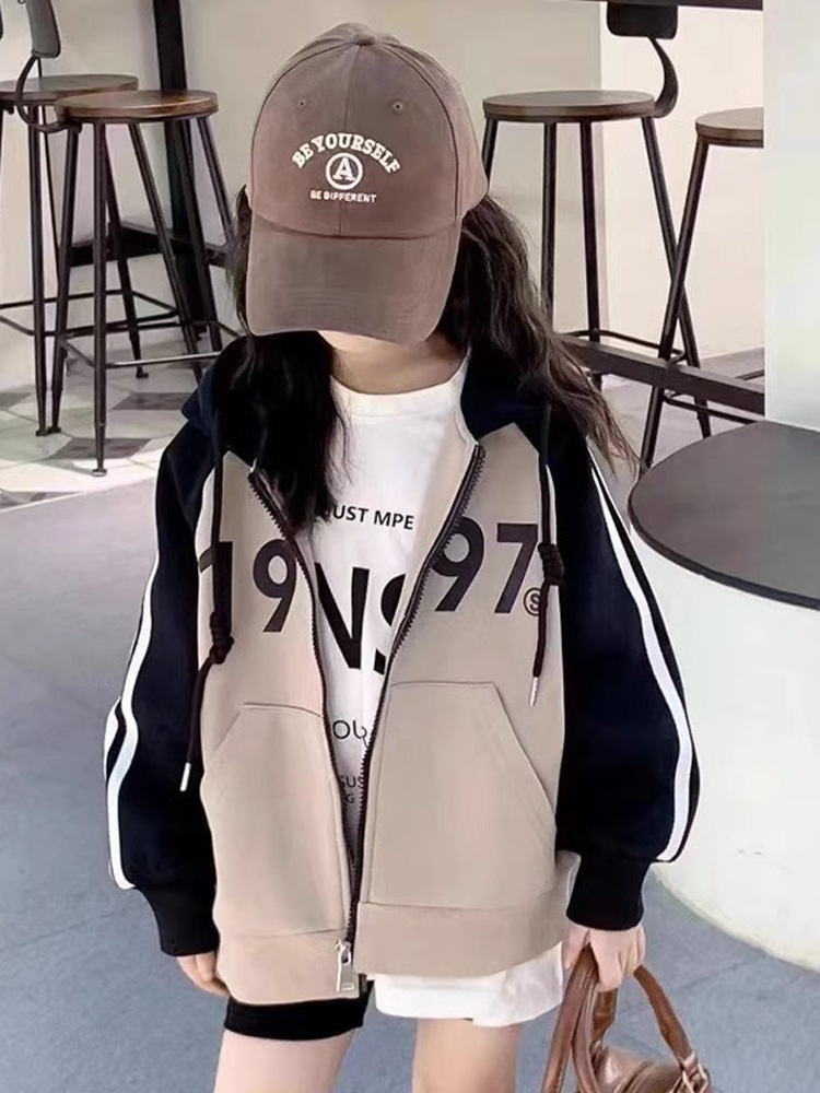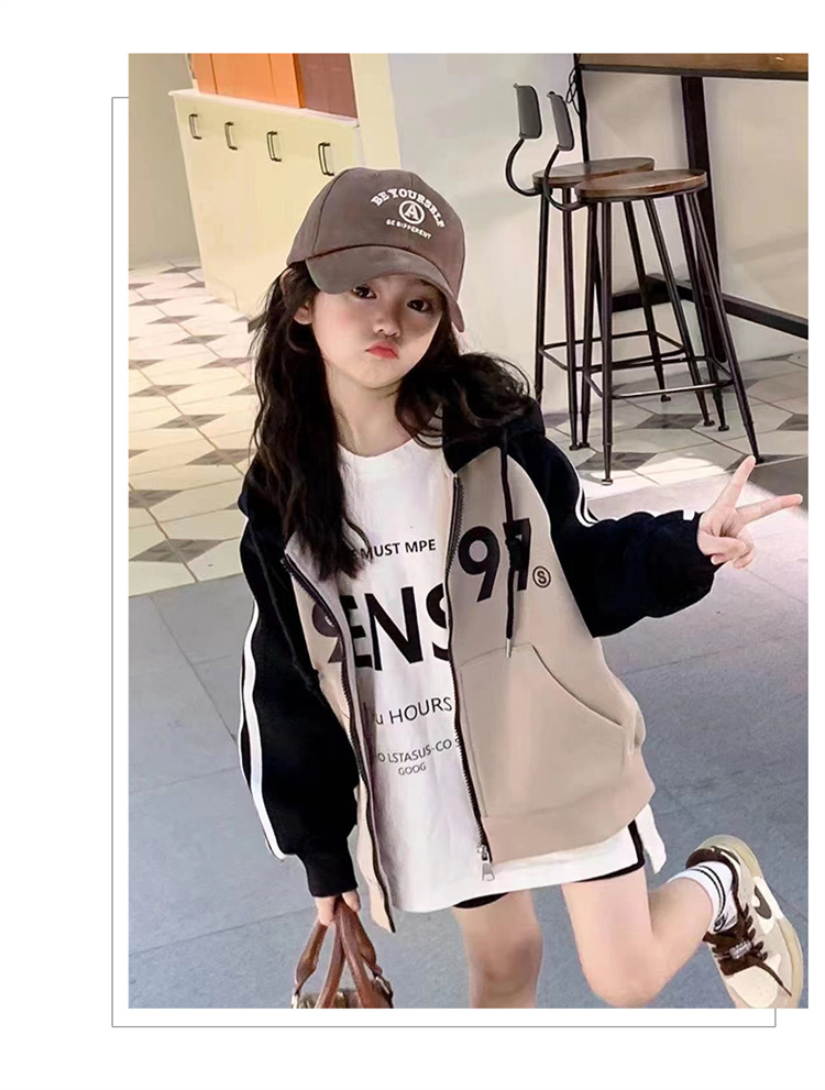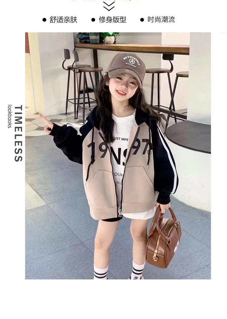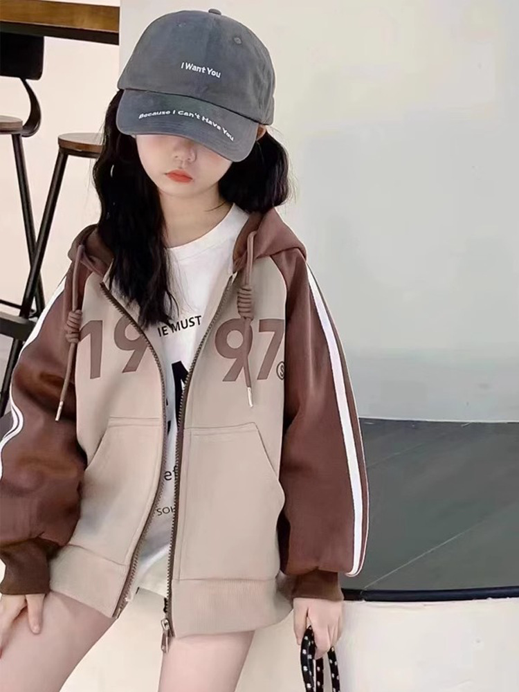 여아 코트 2023 새로운 가을 옷 서양 스타일 어린이 유행 스포츠 봄과 가을 스웨터 튀김 거리 인터넷 연예인 중학교 어린이스토어 가기