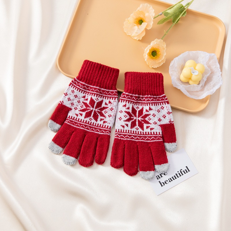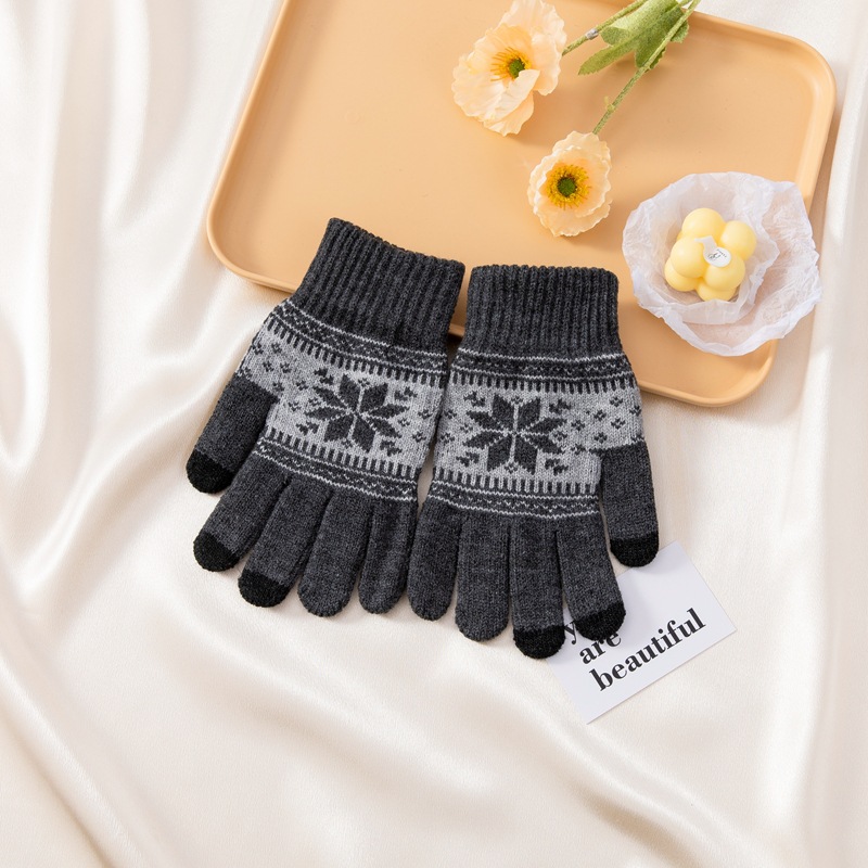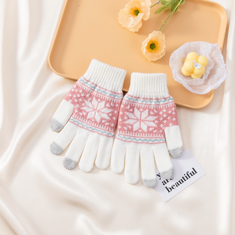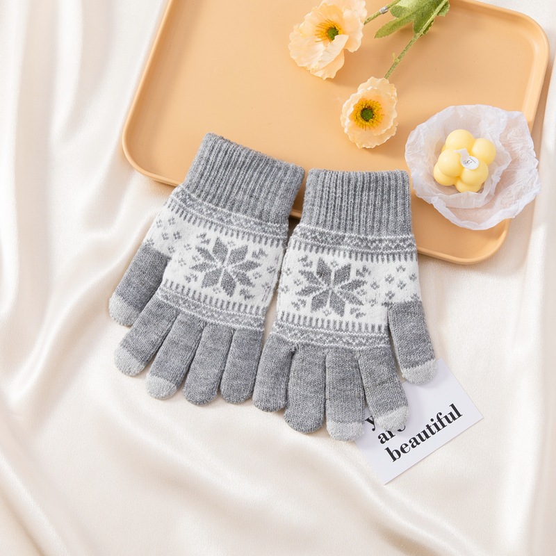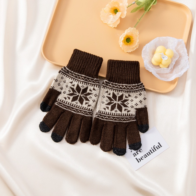 눈송이 장갑 터치 스크린 플레이 휴대 전화 플러스 보풀 라인 장갑 제조 업체 모든 종류의 니트 자카드 장갑 도매 직조스토어 가기