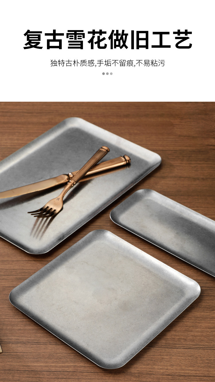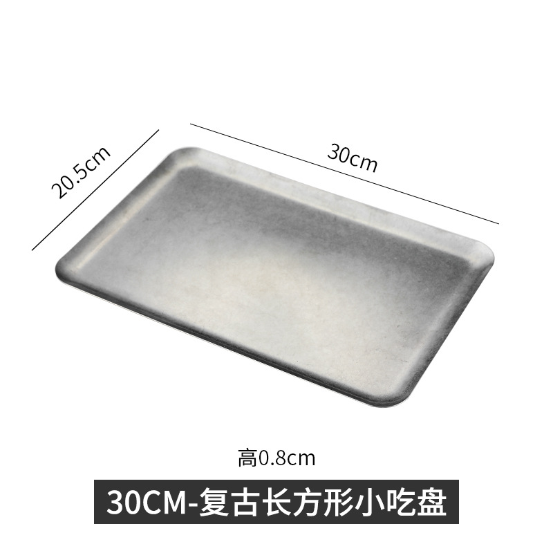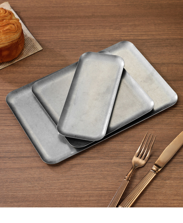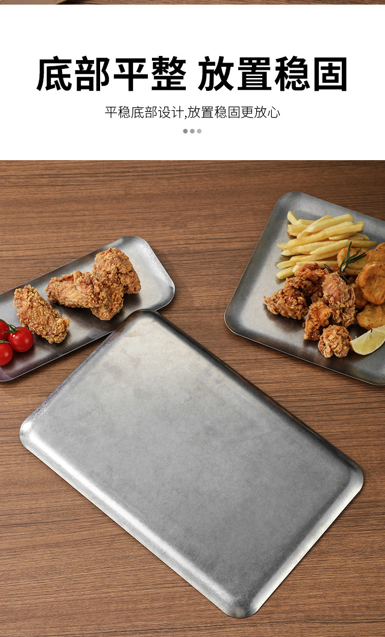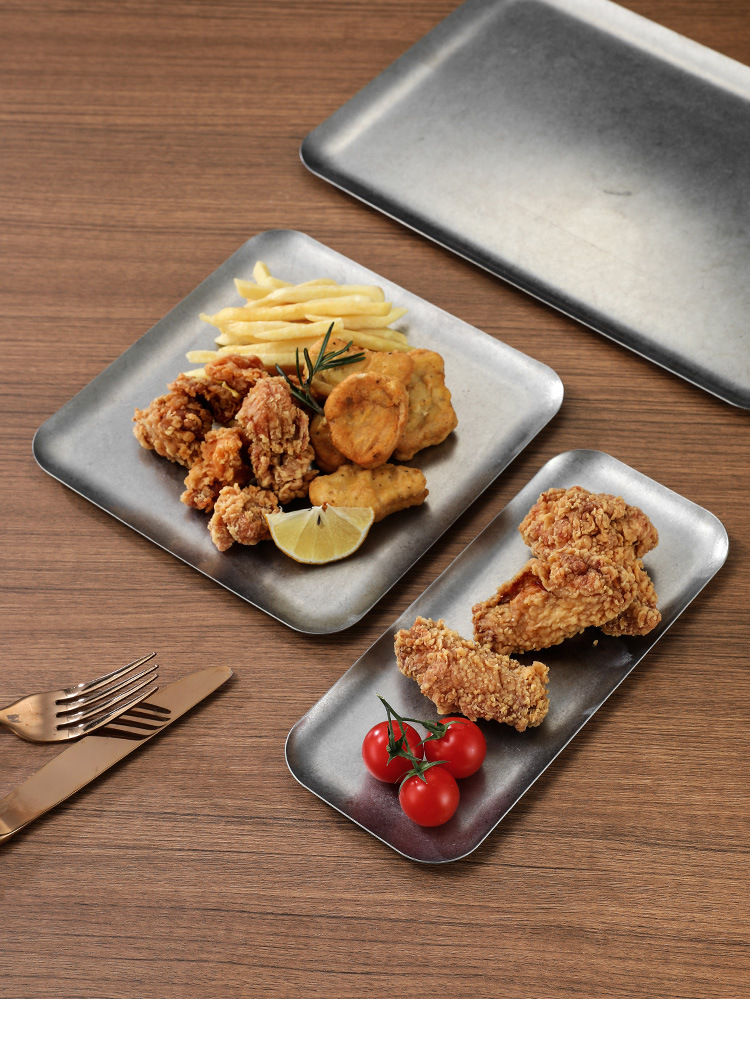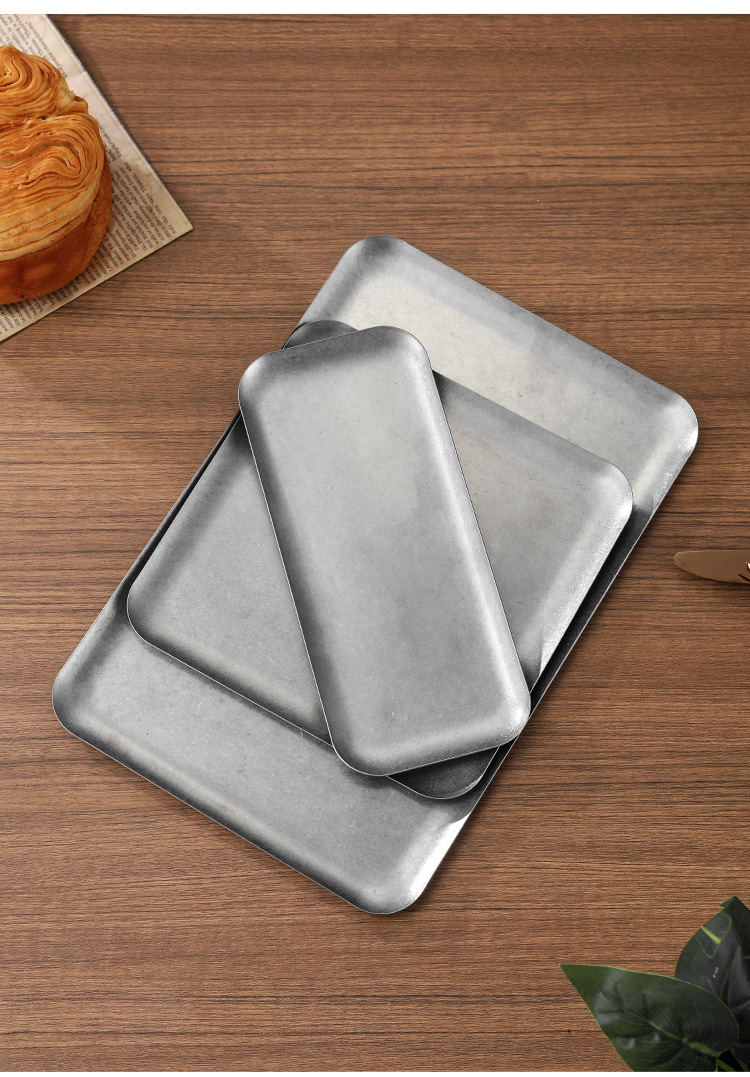 304 스테인레스 스틸 빈티지 골동품 눈송이 회색 산업 스타일 야외 캠핑 트레이 직선 가장자리 트레이 얕은 접시 바베큐 팬스토어 가기