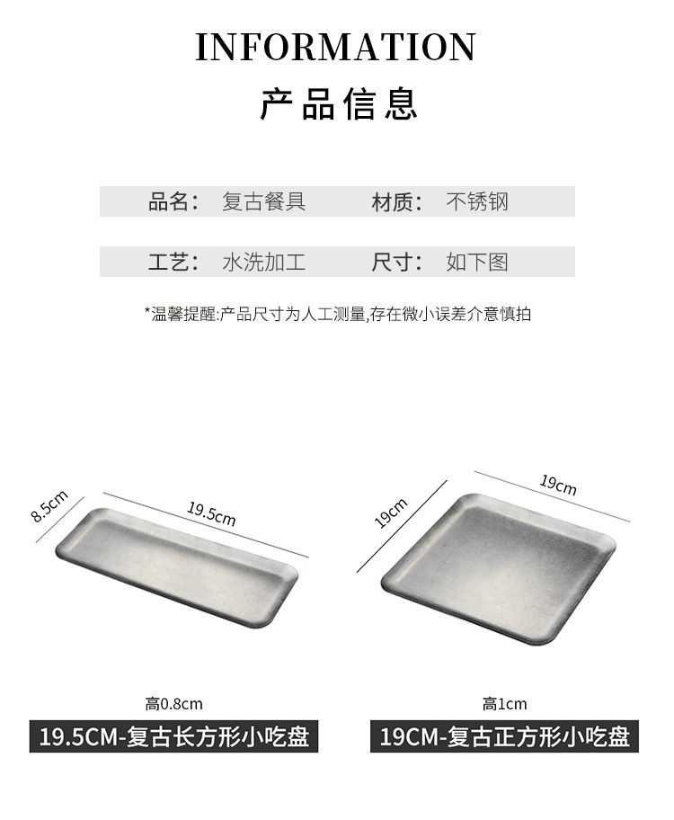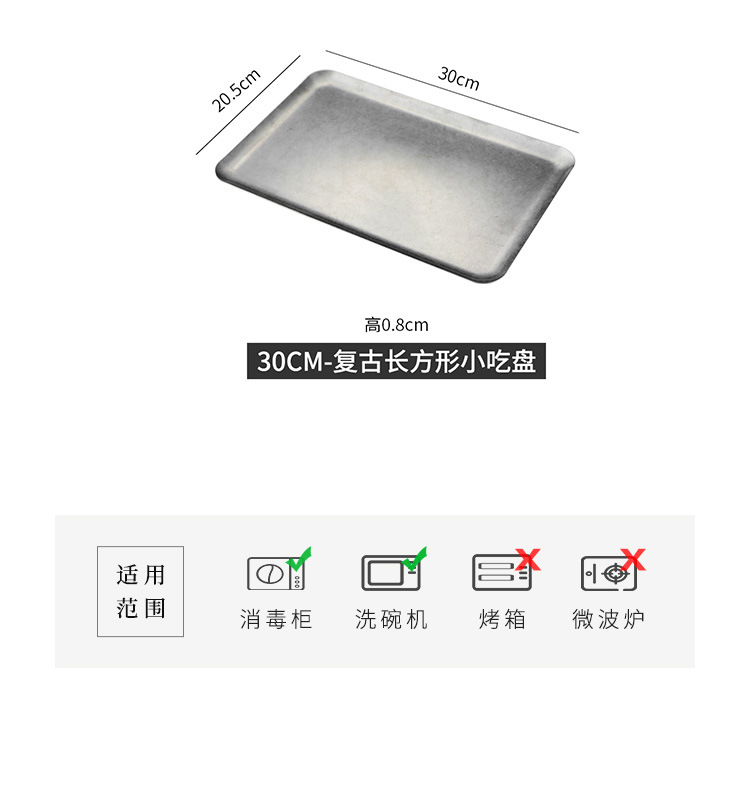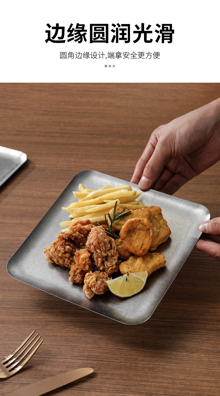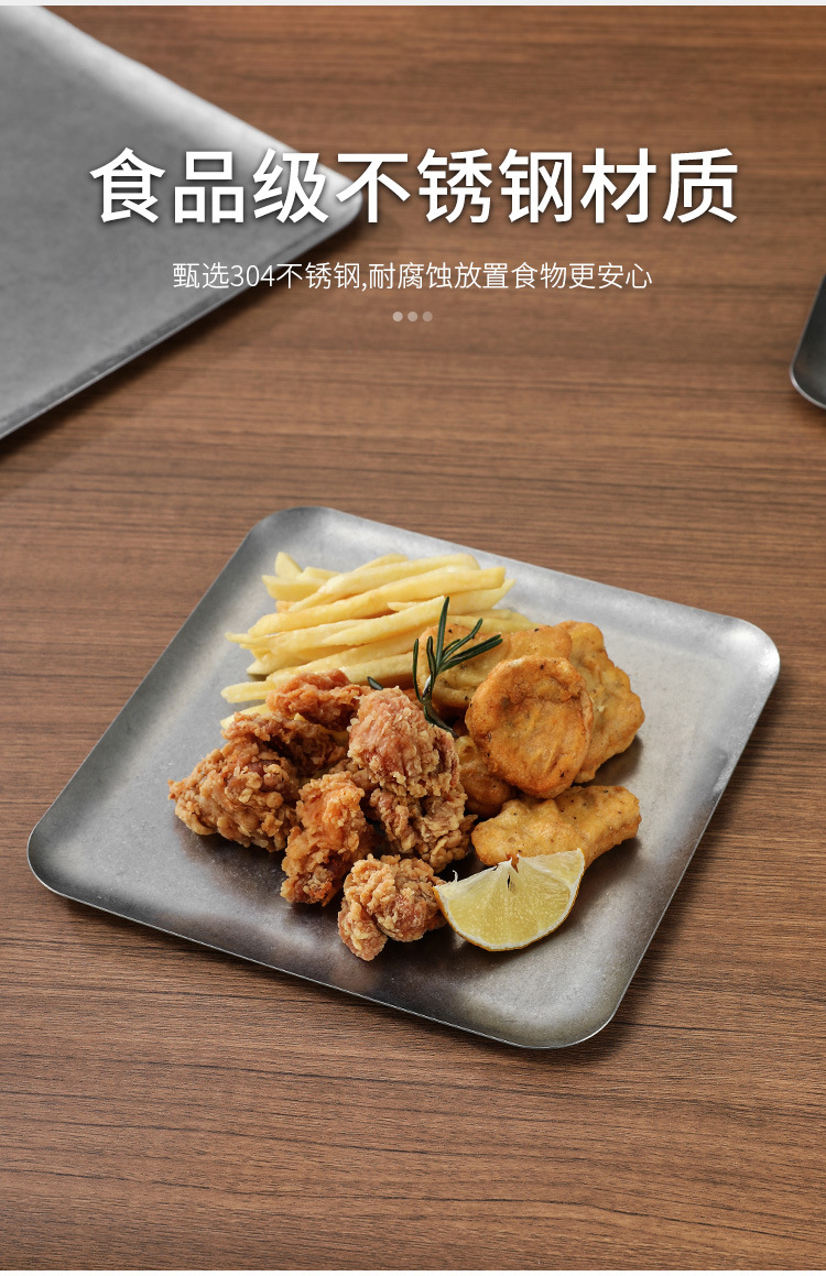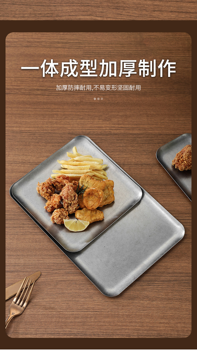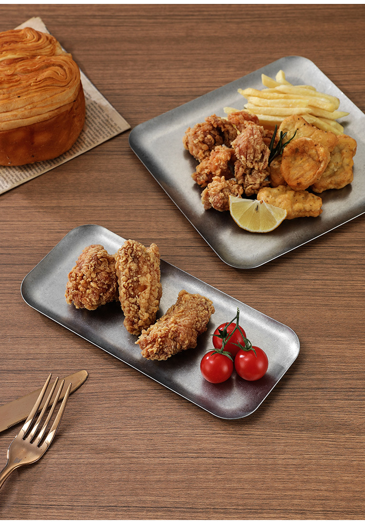 304 스테인레스 스틸 빈티지 골동품 눈송이 회색 산업 스타일 야외 캠핑 트레이 직선 가장자리 트레이 얕은 접시 바베큐 팬스토어 가기