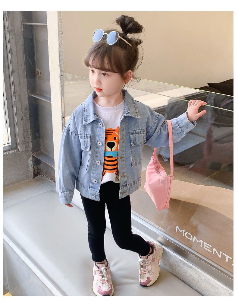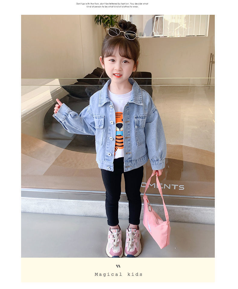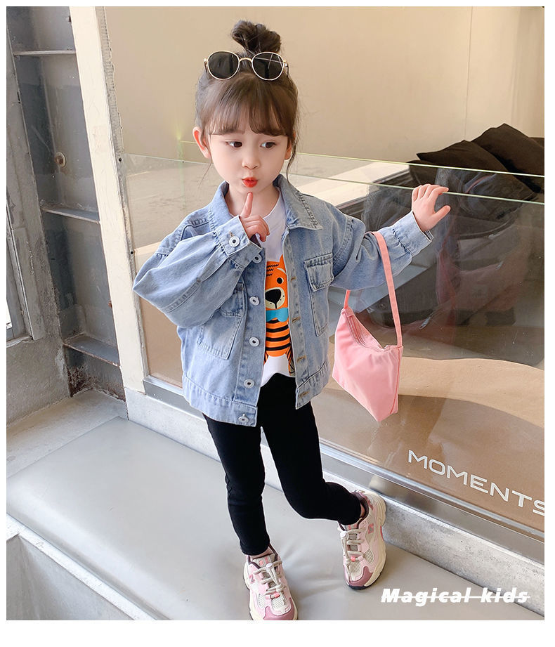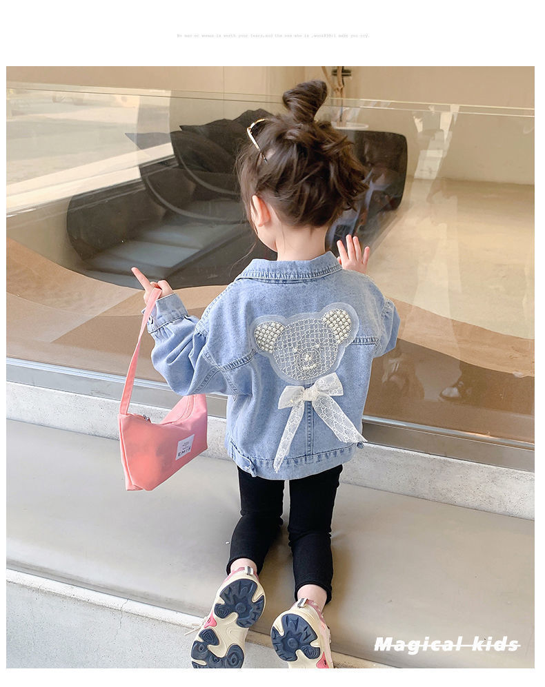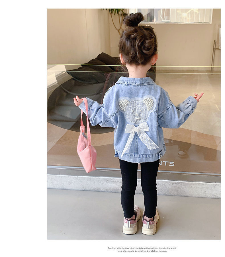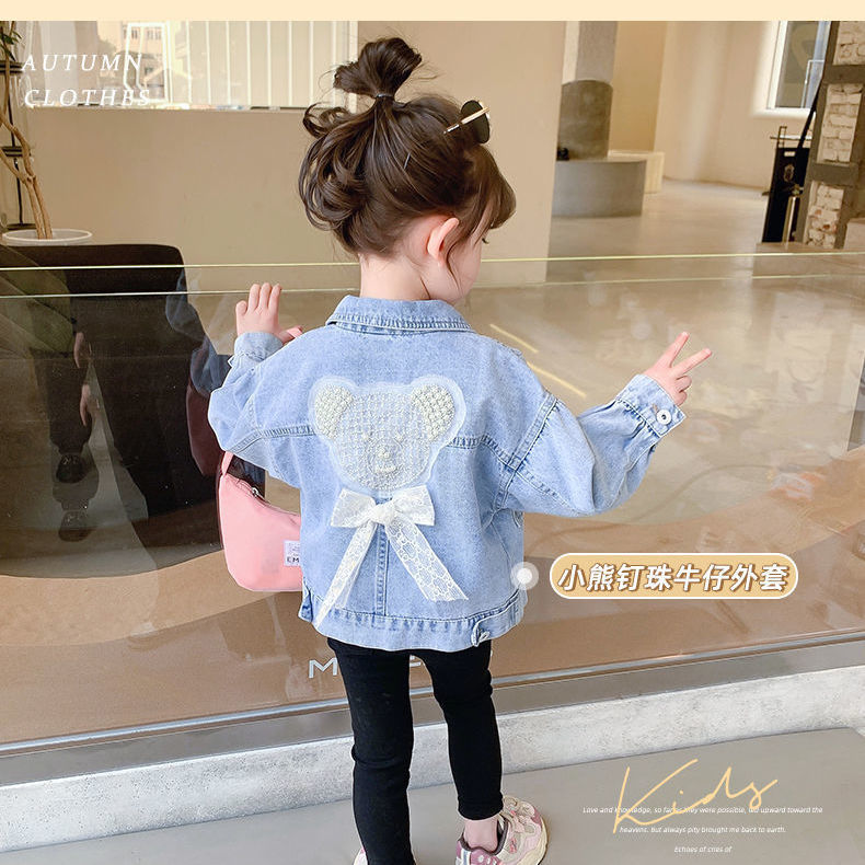 봄과 가을 여아 재킷 코트 아기 세련된 어린이 개인 유행 브랜드 한국 만화 진주 레이스 청바지스토어 가기