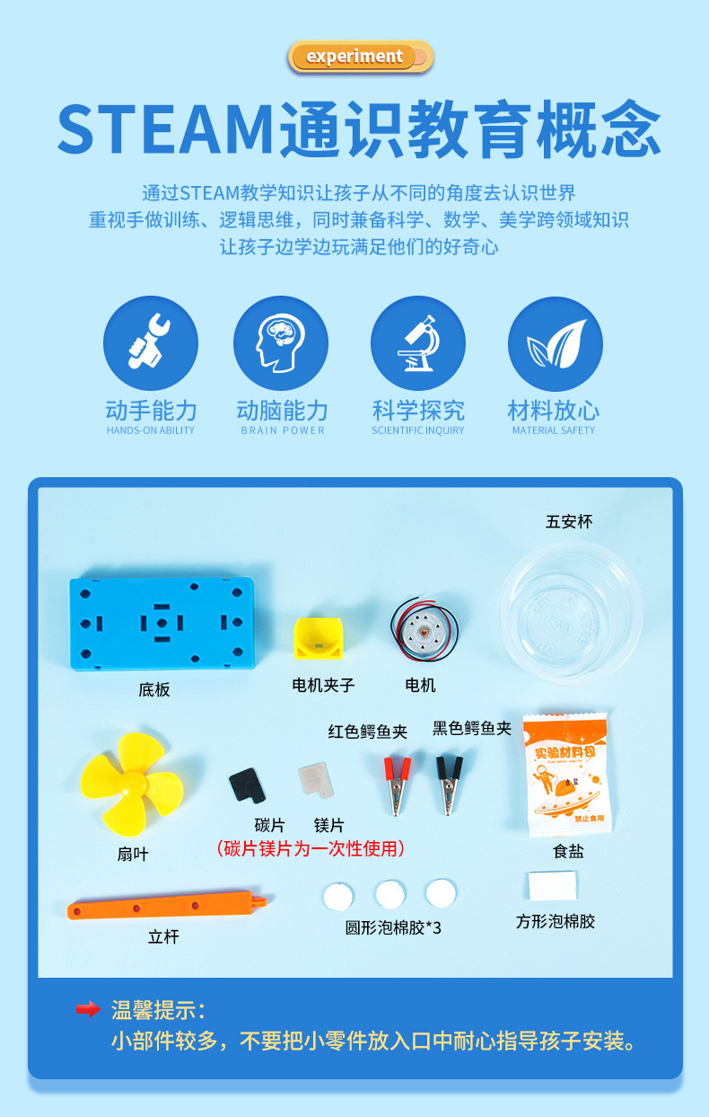 과학 실험 DIY 소금물 전력 발전 팬 과학 기술 소량 생산 화학 어린이 수제 학생 재료 패키지 세트스토어 가기