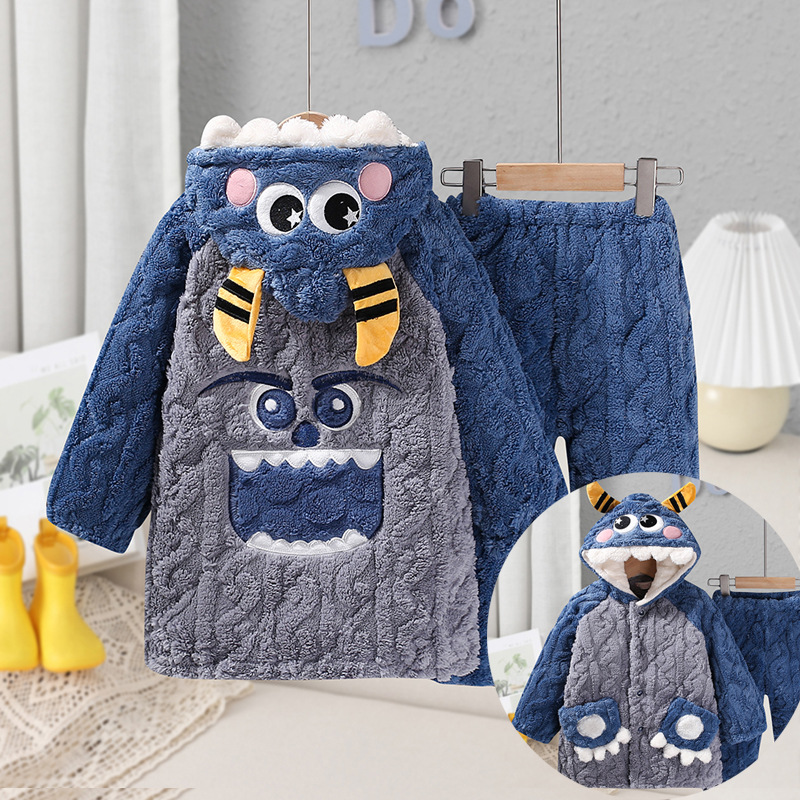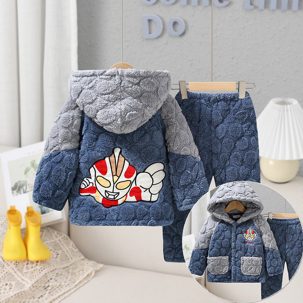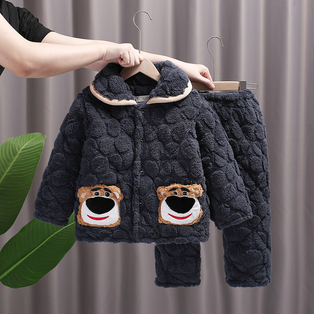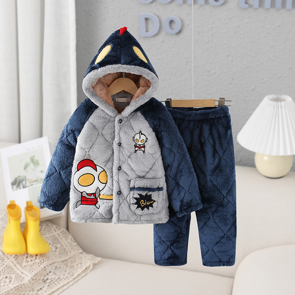 겨울 어린이 퀼트 플란넬 따뜻한 잠옷 세트 가정 옷 여아 기모 두꺼운 코튼 코트 코트 아기스토어 가기