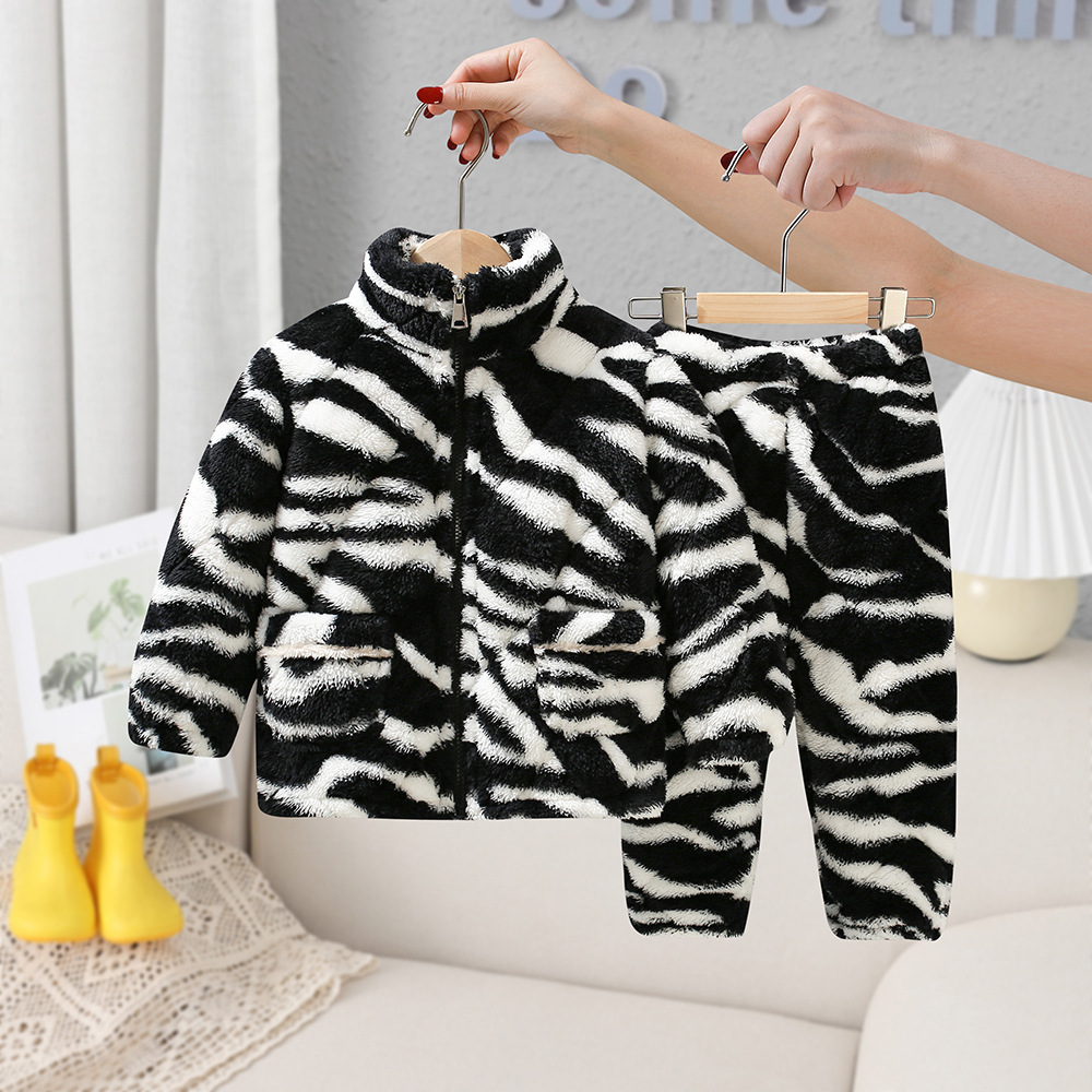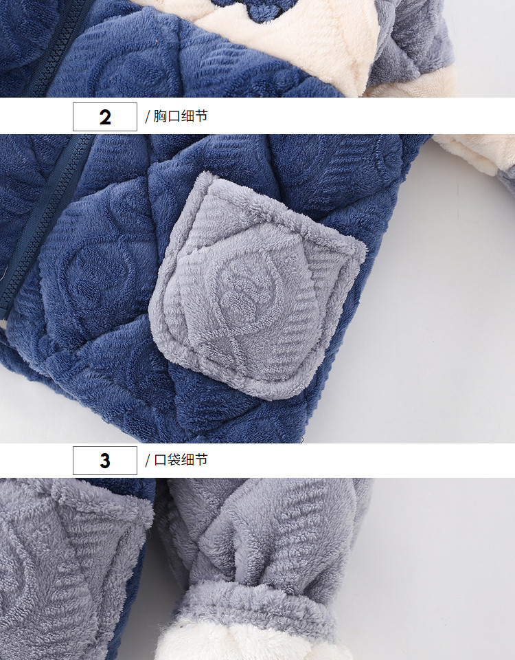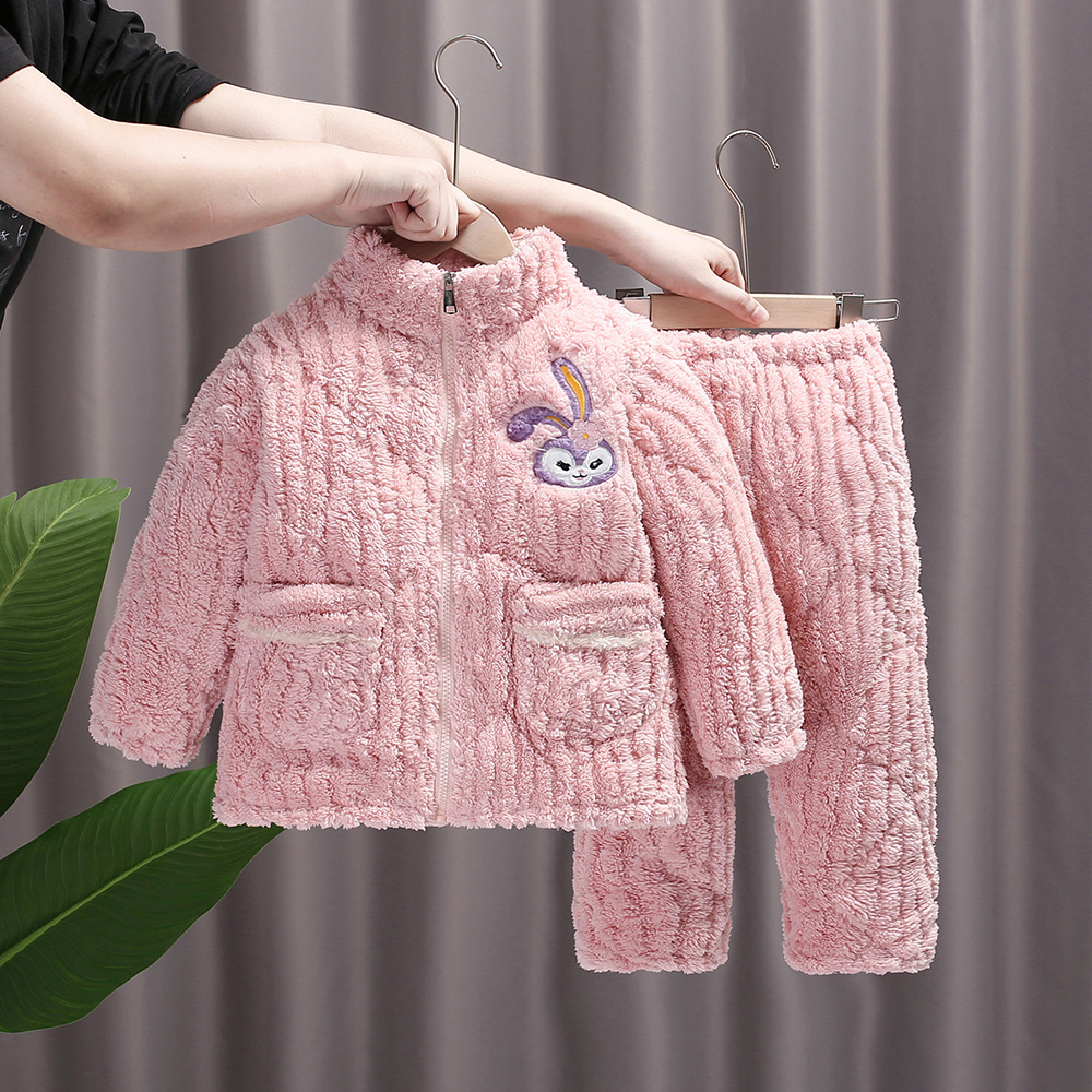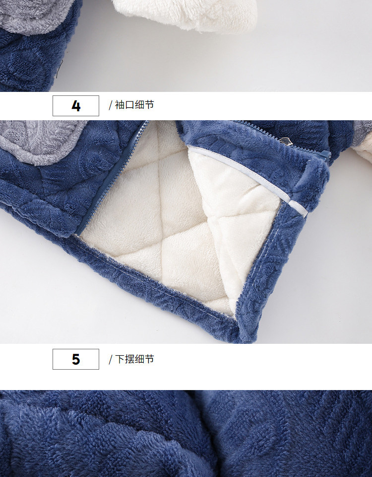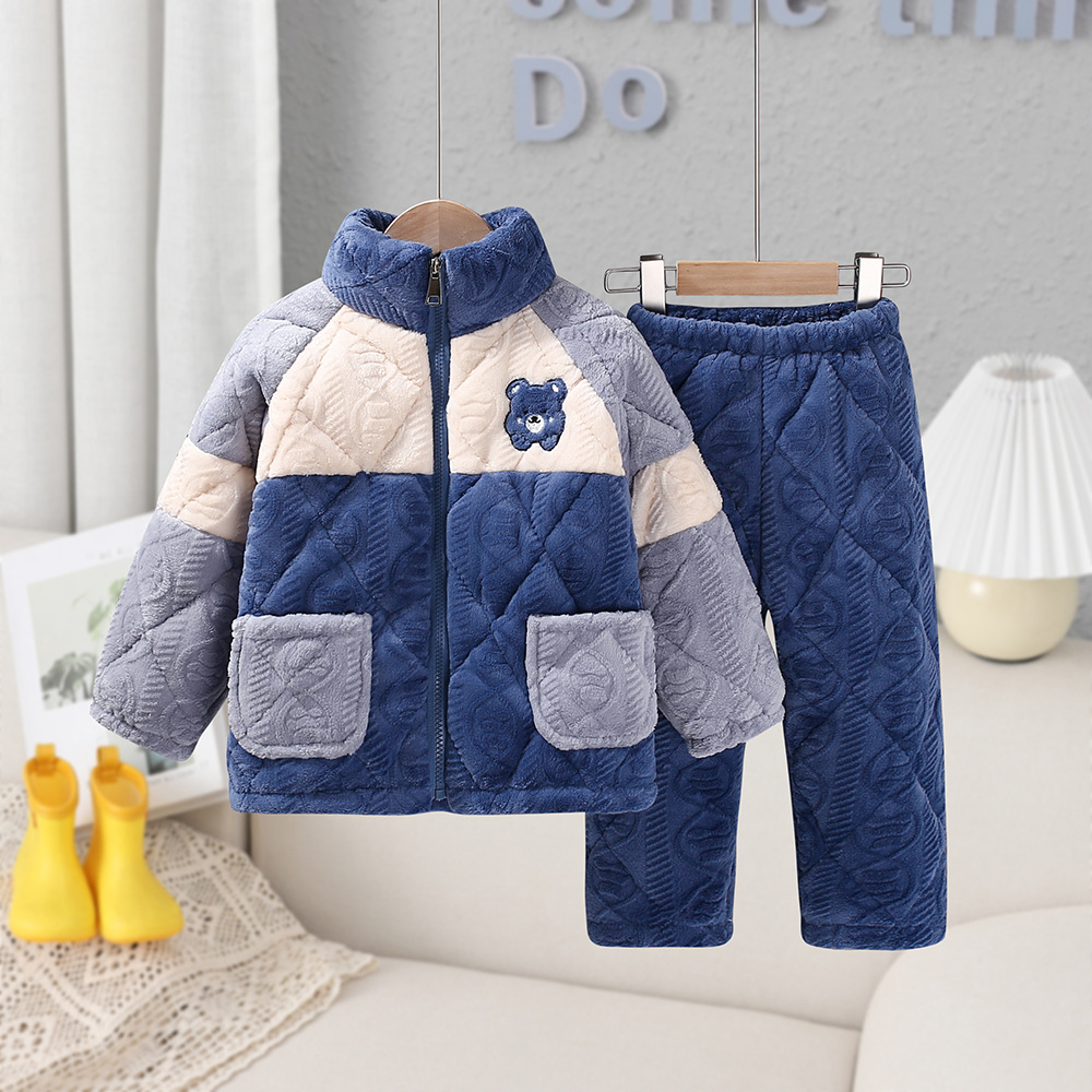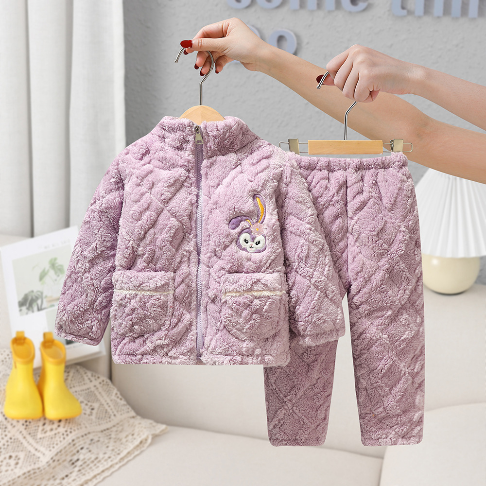 겨울 어린이 퀼트 플란넬 따뜻한 잠옷 세트 가정 옷 여아 기모 두꺼운 코튼 코트 코트 아기