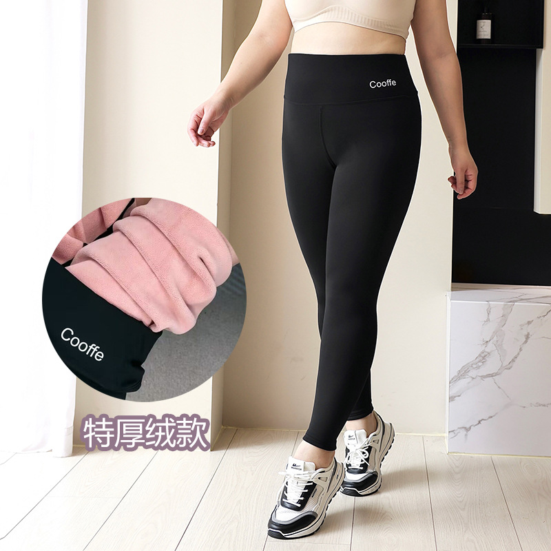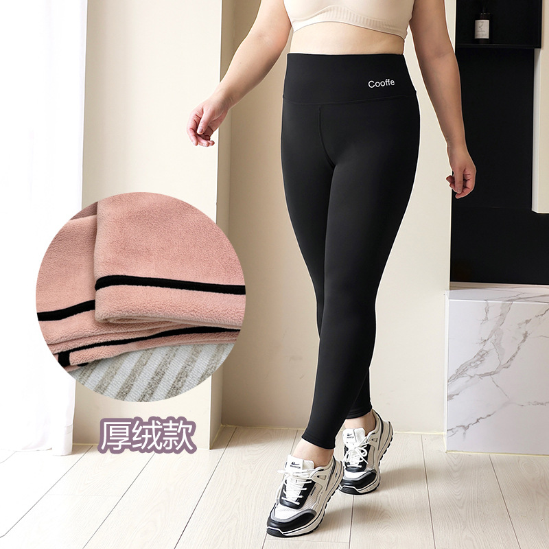 100kg 여성용 플러시 샤크 팬츠, 하이웨이스트 레깅스, 가을 겨울 두꺼운 아우터, 따뜻함 유지 150kg 슬리밍 요가스토어 가기