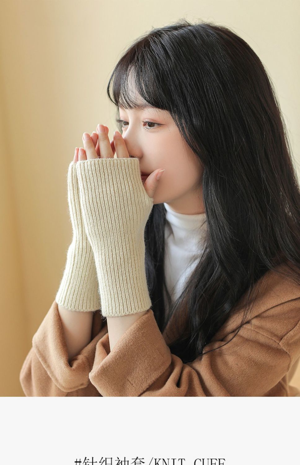 가을과 겨울 반 손가락 장갑 여성용 플러시 올 매치 따뜻한 학생 핑거리스 쓰기 니트 반 손가락 긴 장갑 손목 보호대